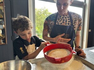 We went to Kaikura for a long weekend for Rachel’s birthday. Stayed at a cool renovated barn outside of town. Oscar got to feed a pig, a baby lamb, a few cows, and a cool turkey. We took a half day cooking course where we made fresh noodles and a meringue dessert. Was very cool.