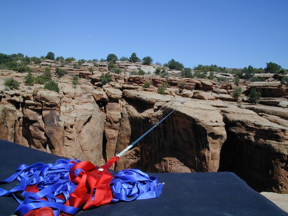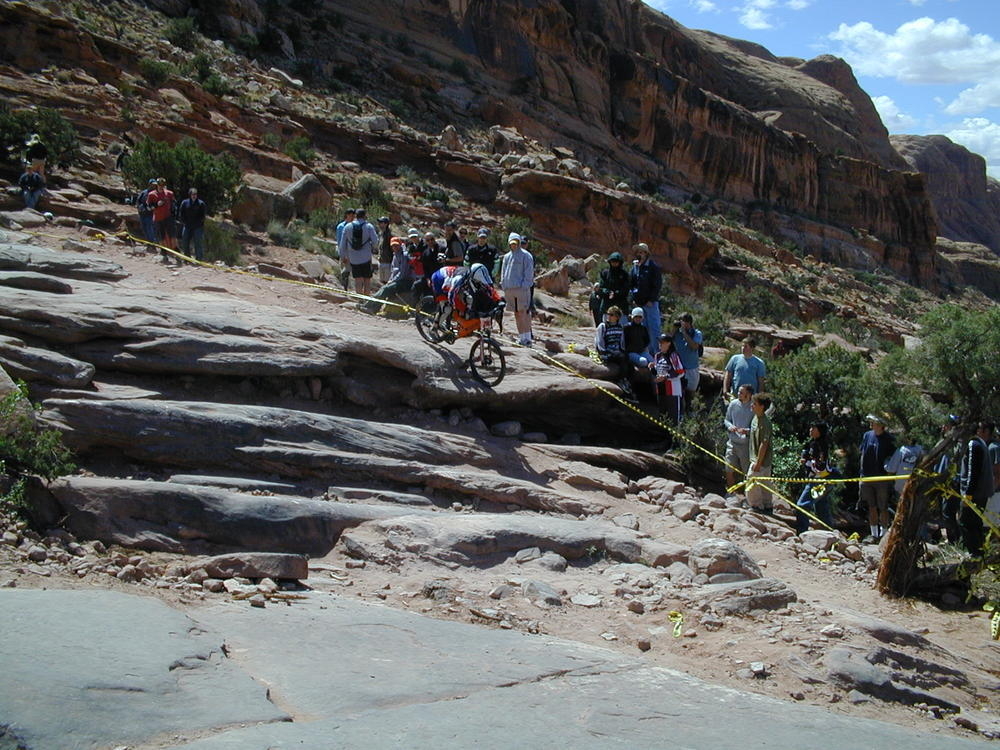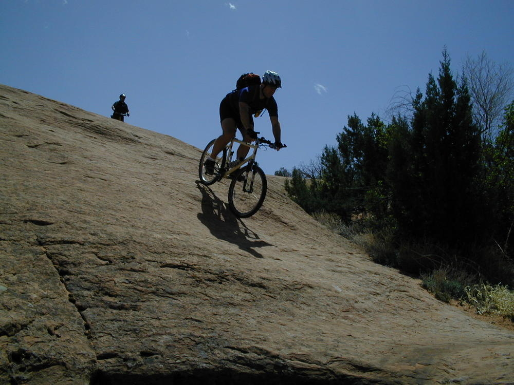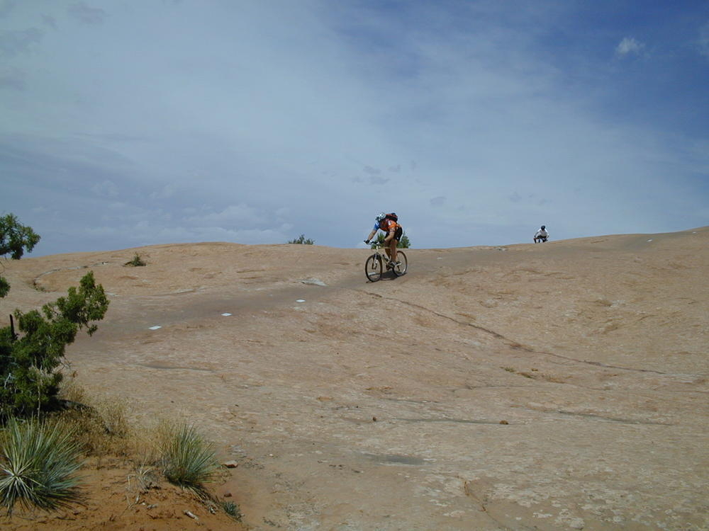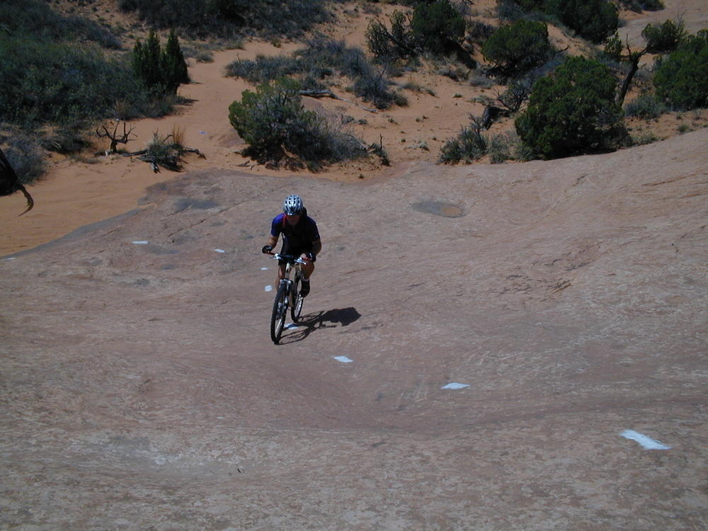 Ron, Trey, Vince, Tom and I rode Amasa Back, Gemini Bridges, Slickrock, Moab Rim and Monitor Merimack. I saw some freeriders the day after everyone left. They made it down Moab Rim in 2 minutes, at an average of 30mph.