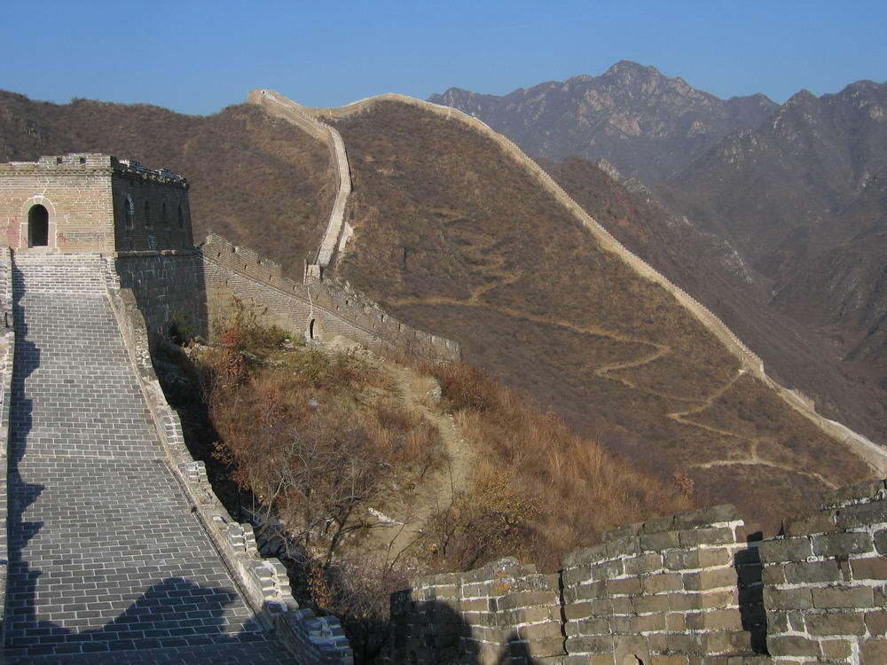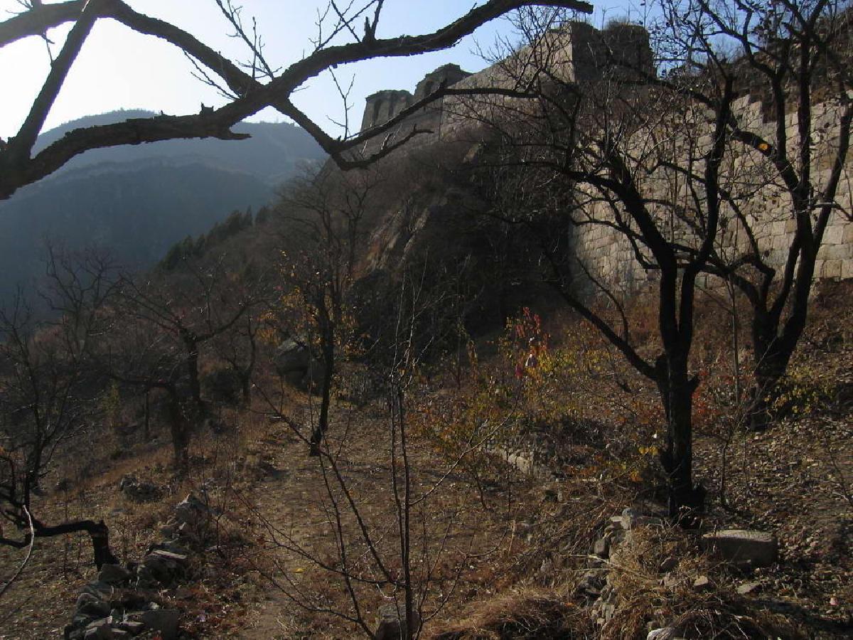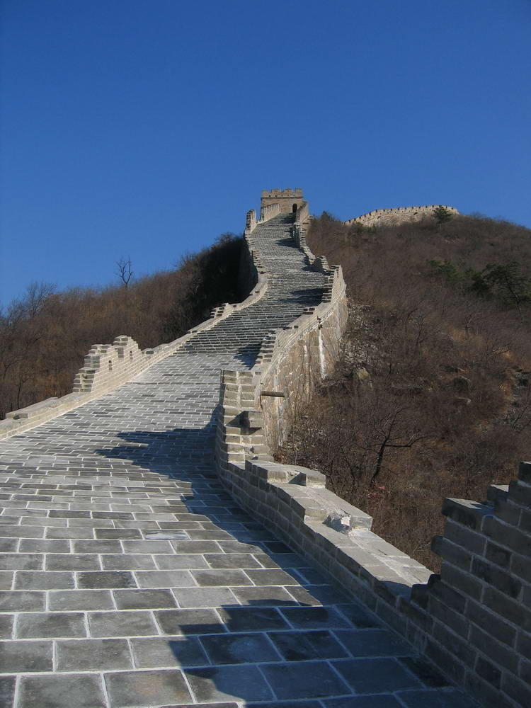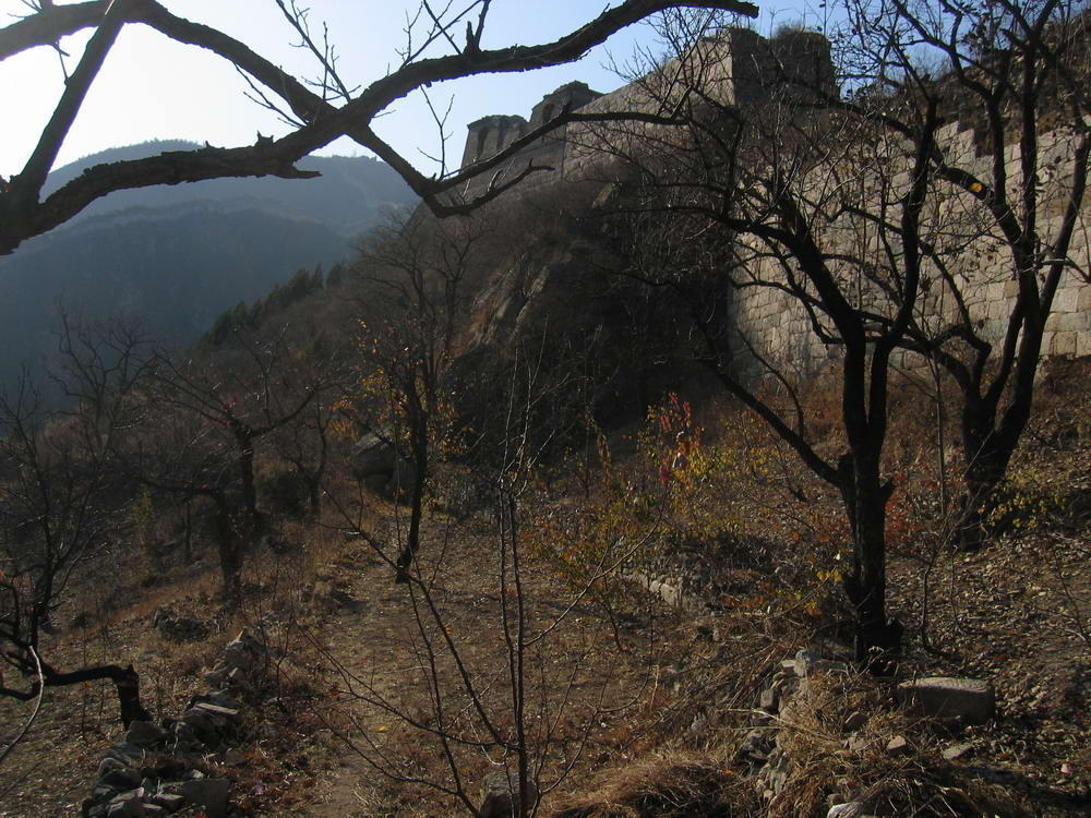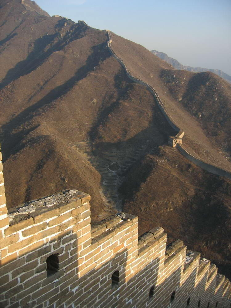 I got up on the wall and saw it went pretty much straight up. After passing two hawkers it seemed like clear sailing. At the first guard tower I heard plastic flapping and thought it’d be another ’toll.’ It was another old lady, sqwaking and holding up her five fingers and a crappy piece of cardboard with writing on it. I paid the money. The two guys I had passed came in and they started arguing with her about paying the toll. They eventually got through without paying anything. Guess it pays to know Chinese.