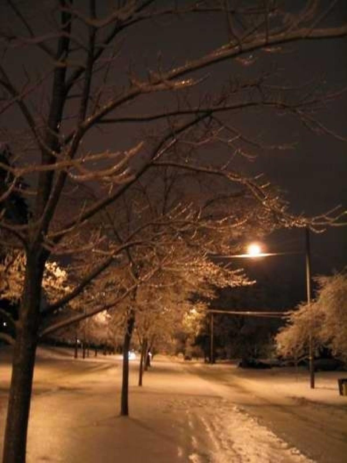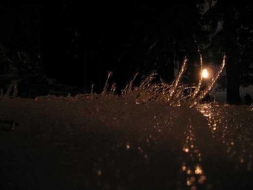 We got some rain last night and it froze all over the place. Tonight on the way home from the bus I picked up the big chunks of ice and tossed them onto the ground to hear the large cracking sounds. I’m sure people in their houses appreciated it. I tried to take some pictures of the snow and stuff, but it’s a little dark and I didn’t remember my tripod, but here goes: