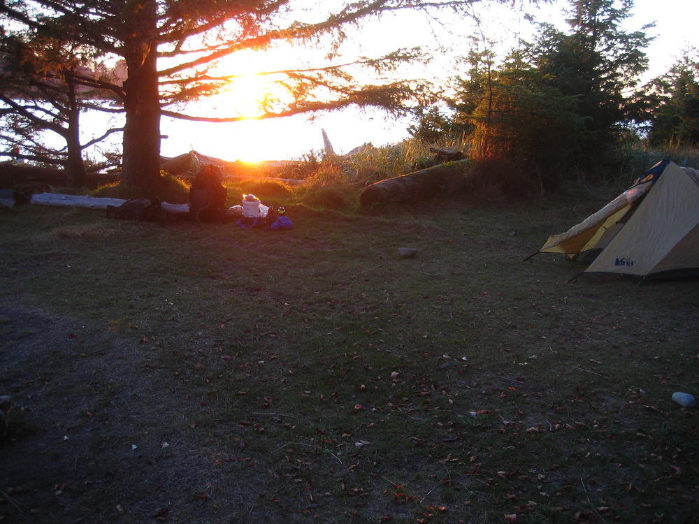 Last weekend Jill and I went up to Cape Alava on the Olympic Penninsula in Washington. It’s a cool hike in to the beach - 3 miles of mostly boardwalk hiking through a rain forest. We got an awesome campsite right next to the beach on soft grass.