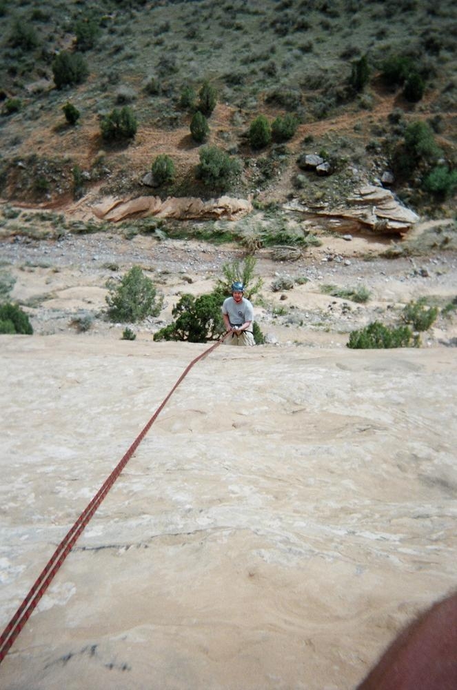 Ron and I climbing near Fruita in Colorado National Monument. I did my first 5.6 trad lead, which scared the shit out of me and maybe even Ron as I freaked out on him as well as myself on the wall.
