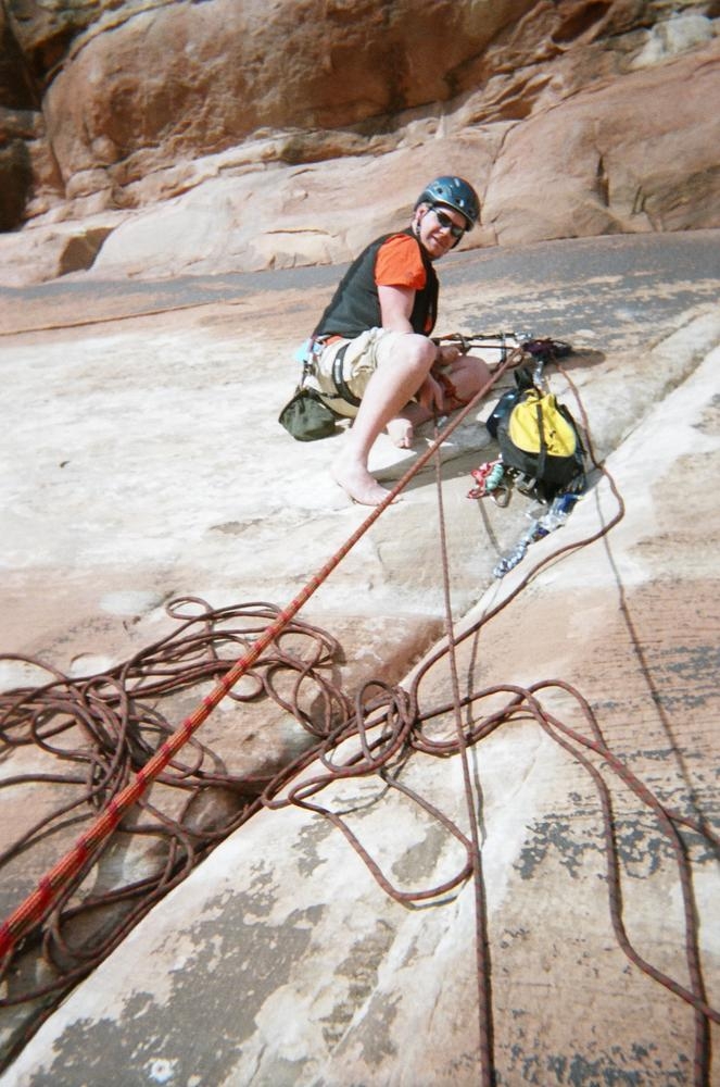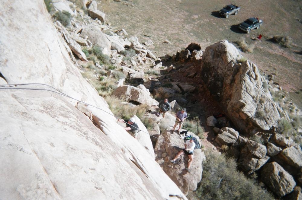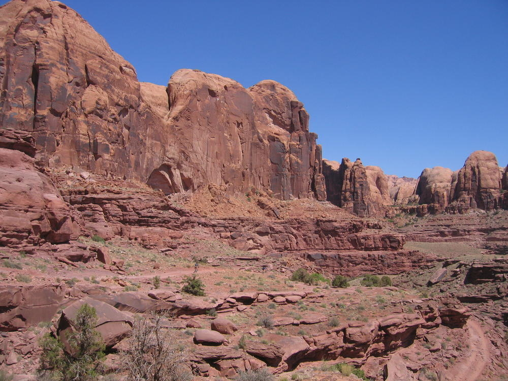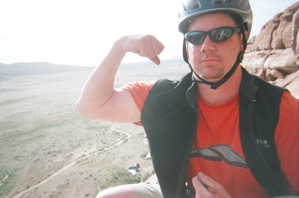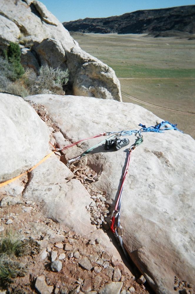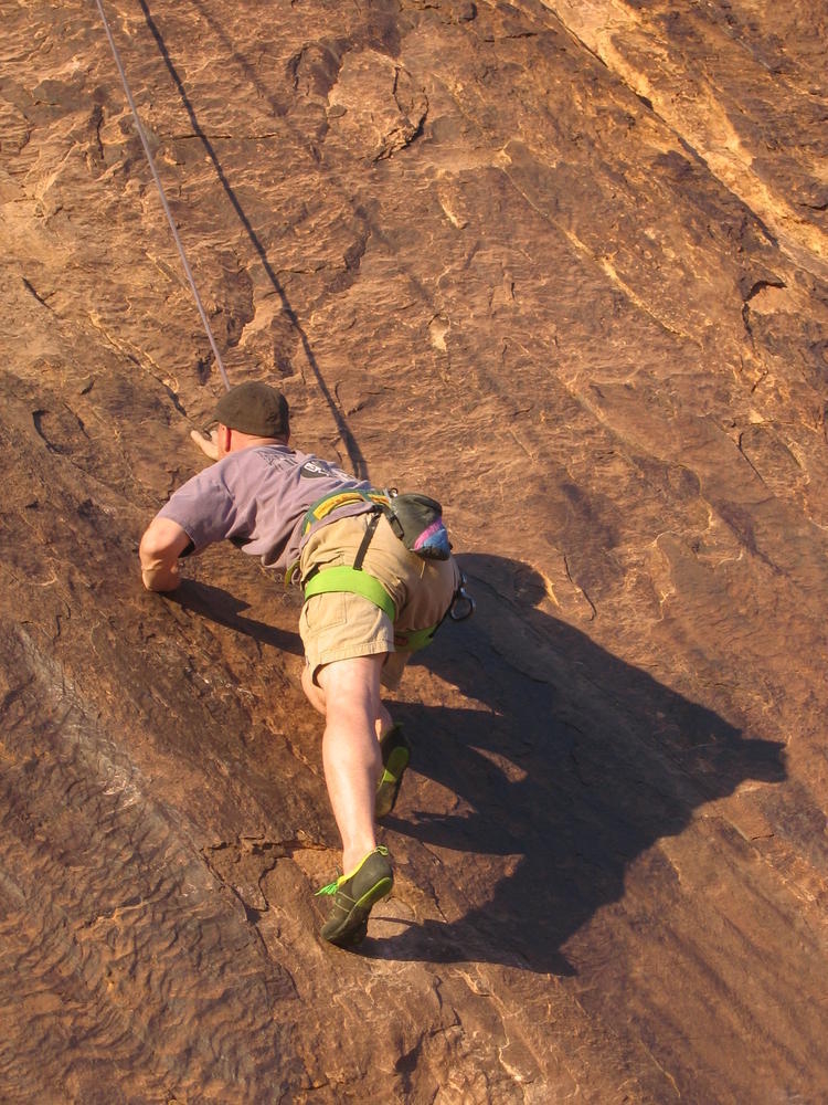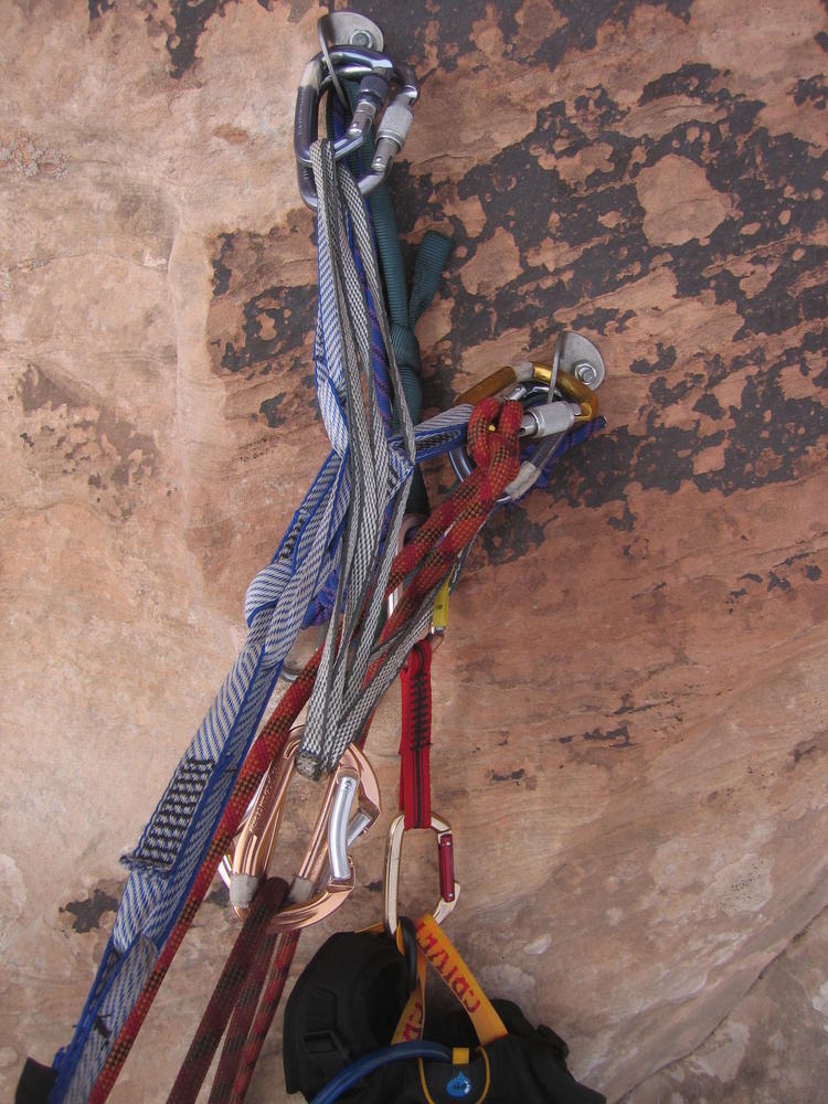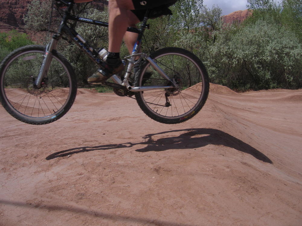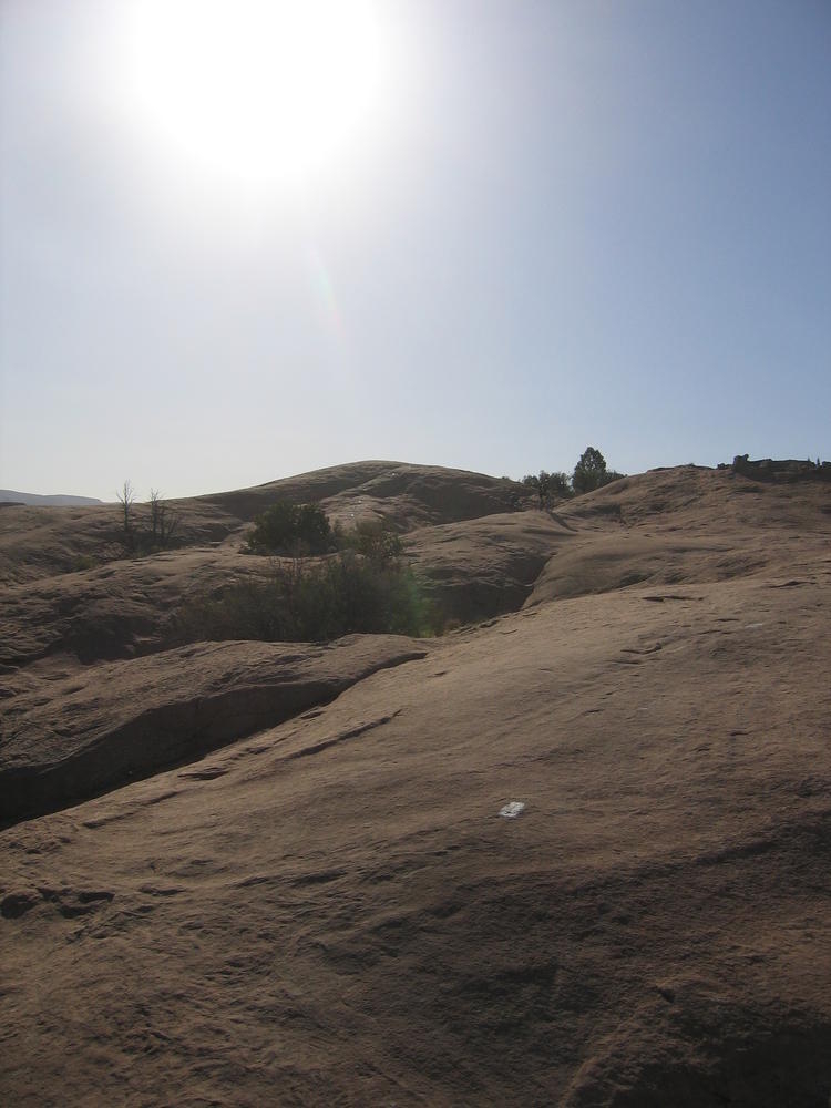 Trey, Henry and Dan came down to Moab this Tuesday and joined up with Ron and I. We started off with Monitor Merimack - as per custom, and then did Bartlet Slickrock and Amasa Back. After riding we’ve gone climbing twice so far. The first was a warm up on Potash Road (Wall Street). Dan and I went up the Fist Full Of Potash (5.10). Yesterday we drove out to Sunshine Wall and put up some top ropes on a nice slab with some 5.9s and 5.10s.