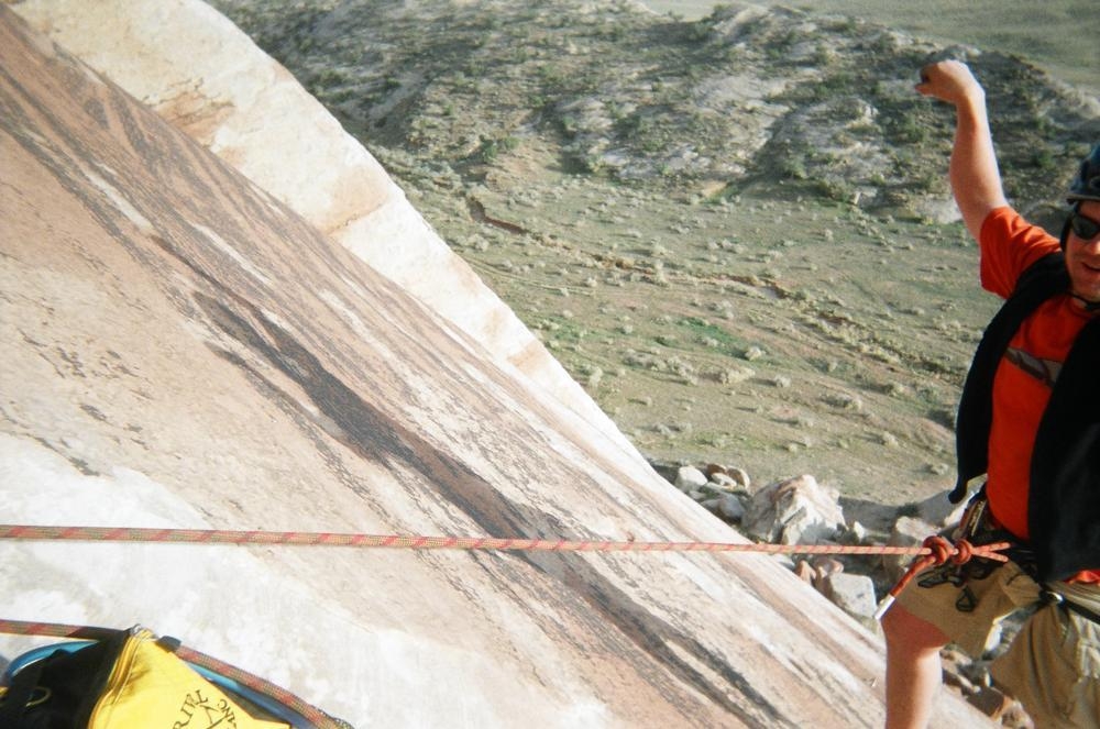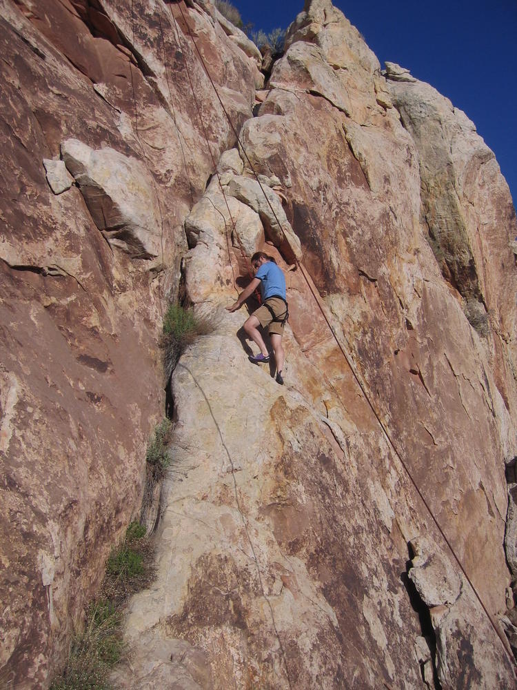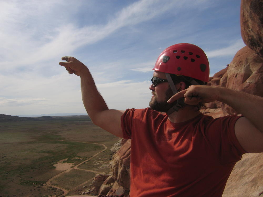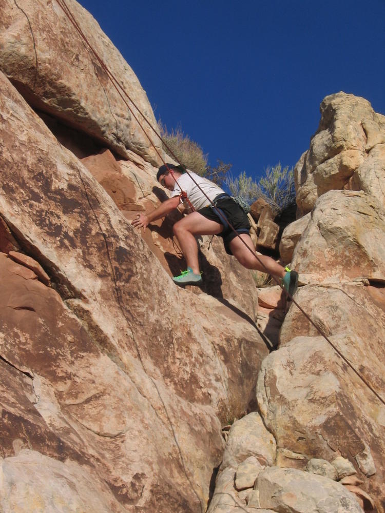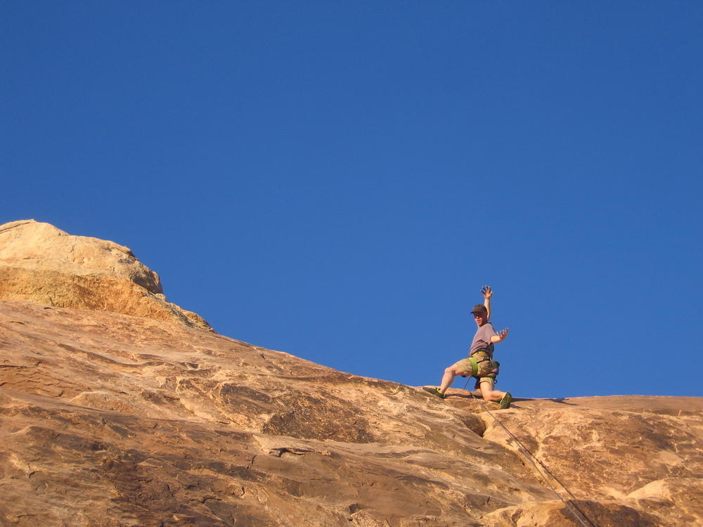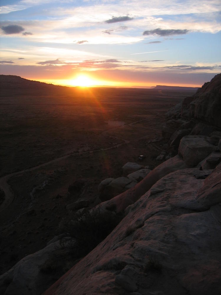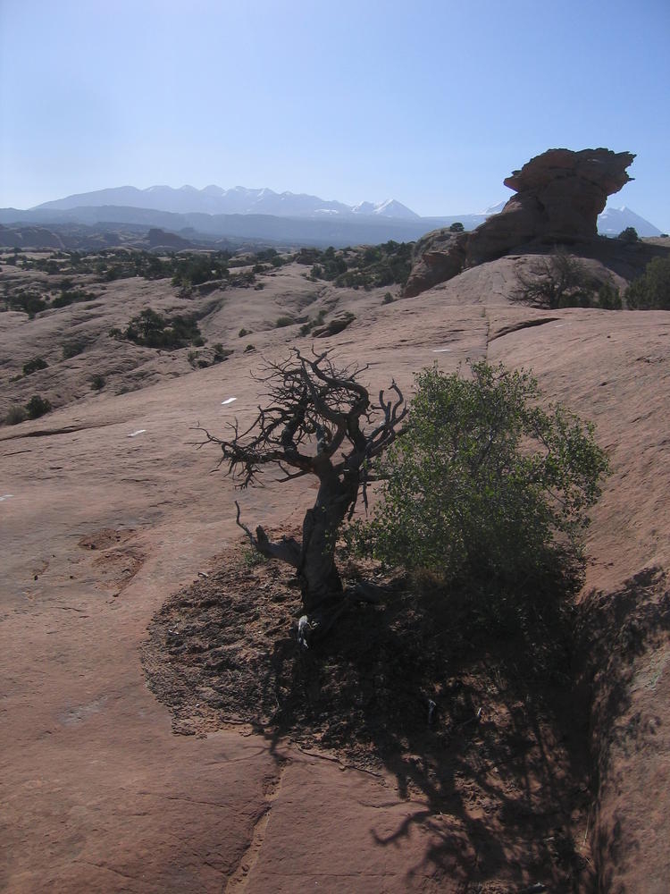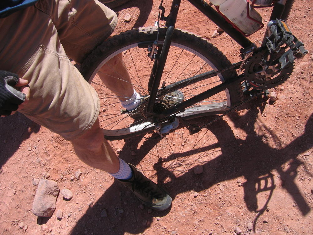 Trey, Henry and Dan came down to Moab this Tuesday and joined up with Ron and I. We started off with Monitor Merimack - as per custom, and then did Bartlet Slickrock and Amasa Back. After riding we’ve gone climbing twice so far. The first was a warm up on Potash Road (Wall Street). Dan and I went up the Fist Full Of Potash (5.10). Yesterday we drove out to Sunshine Wall and put up some top ropes on a nice slab with some 5.9s and 5.10s.