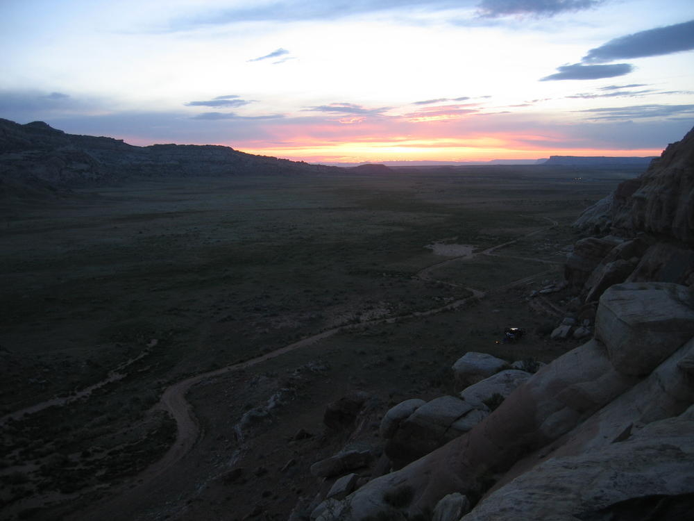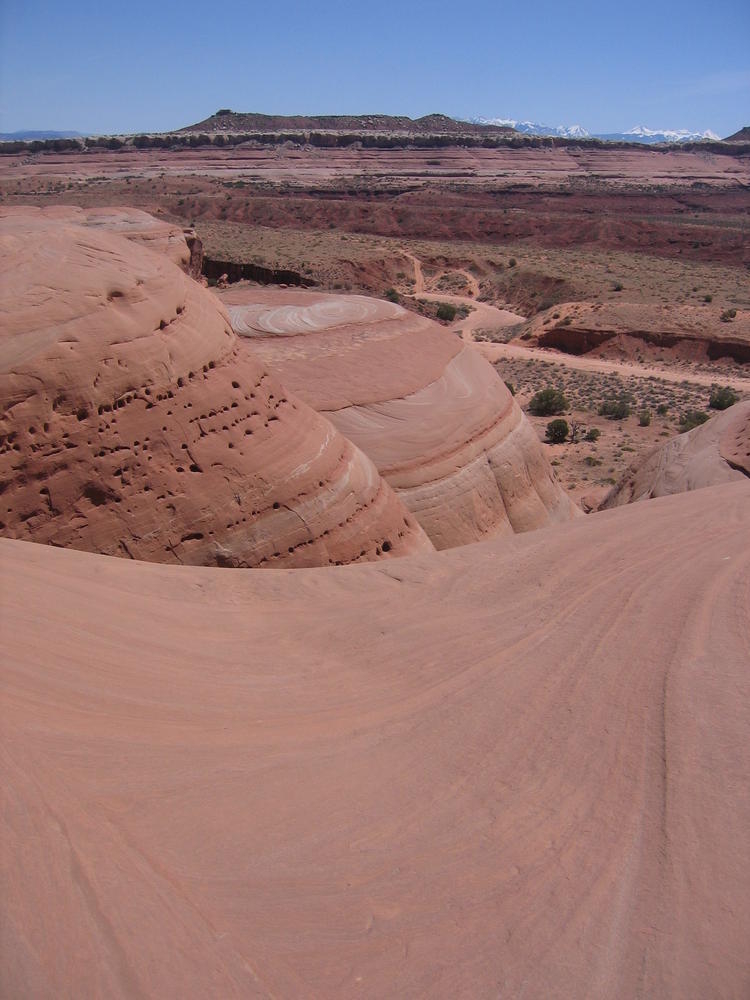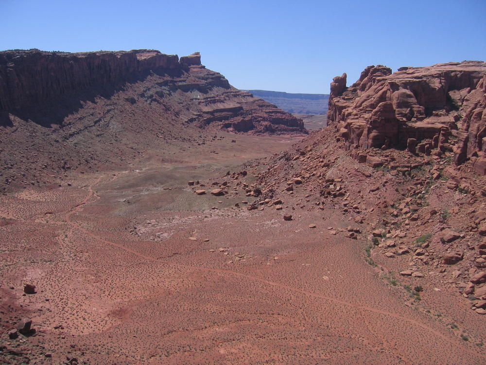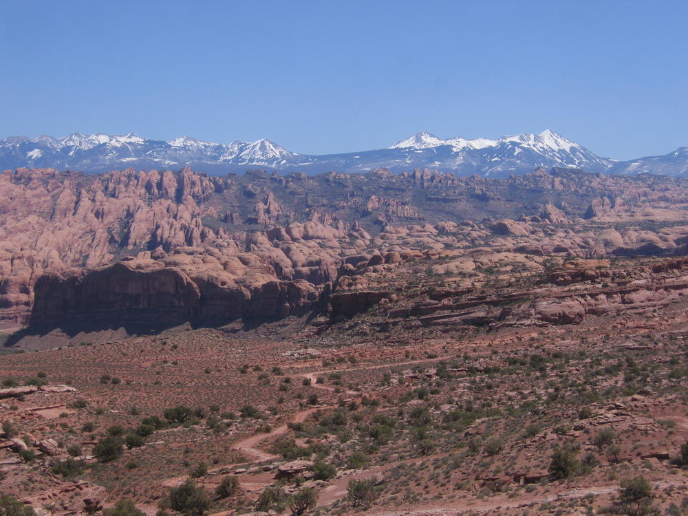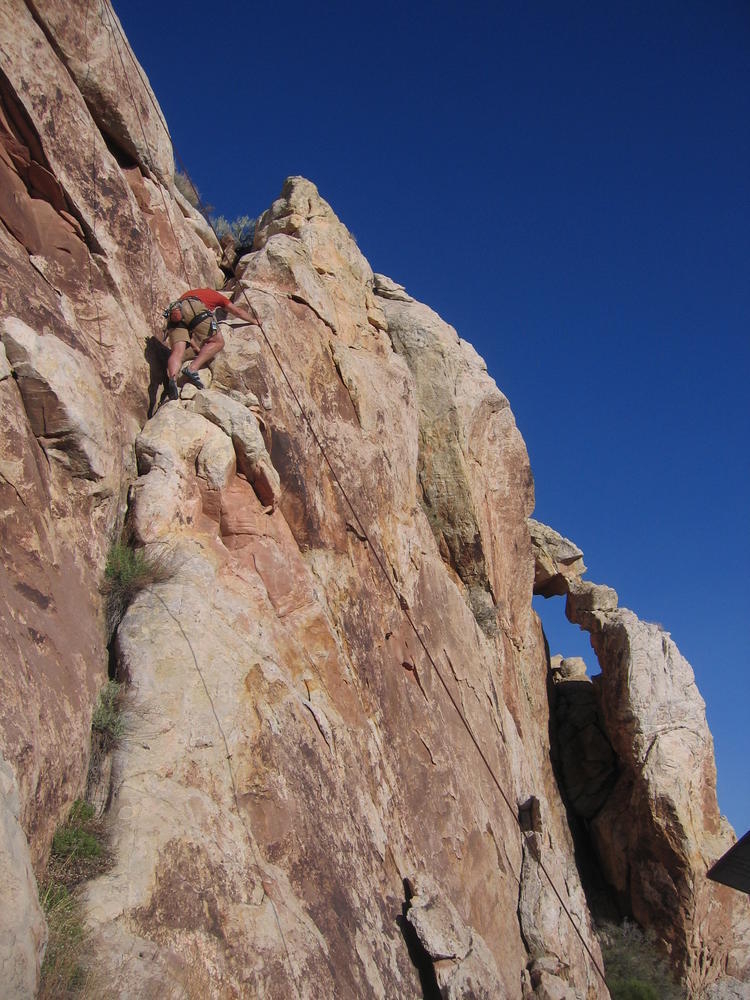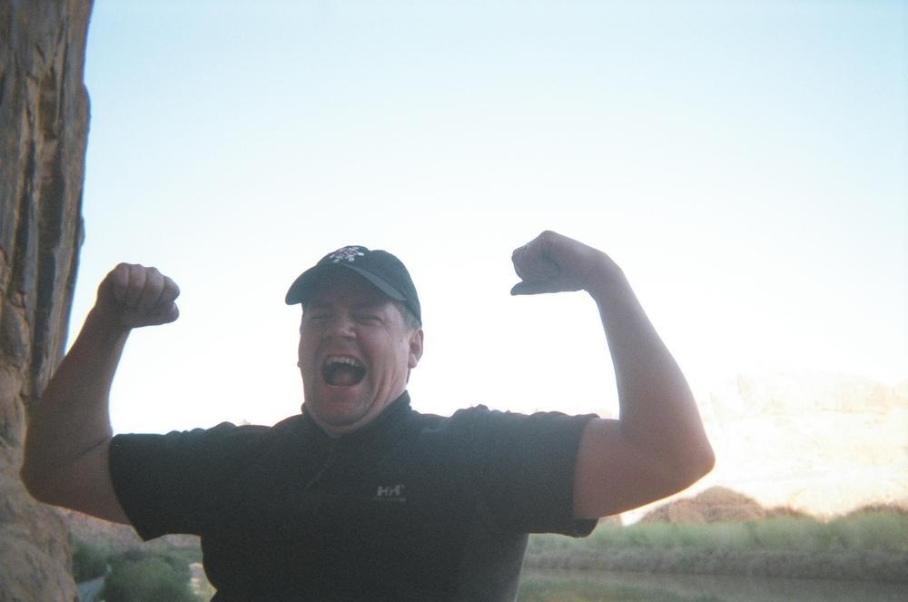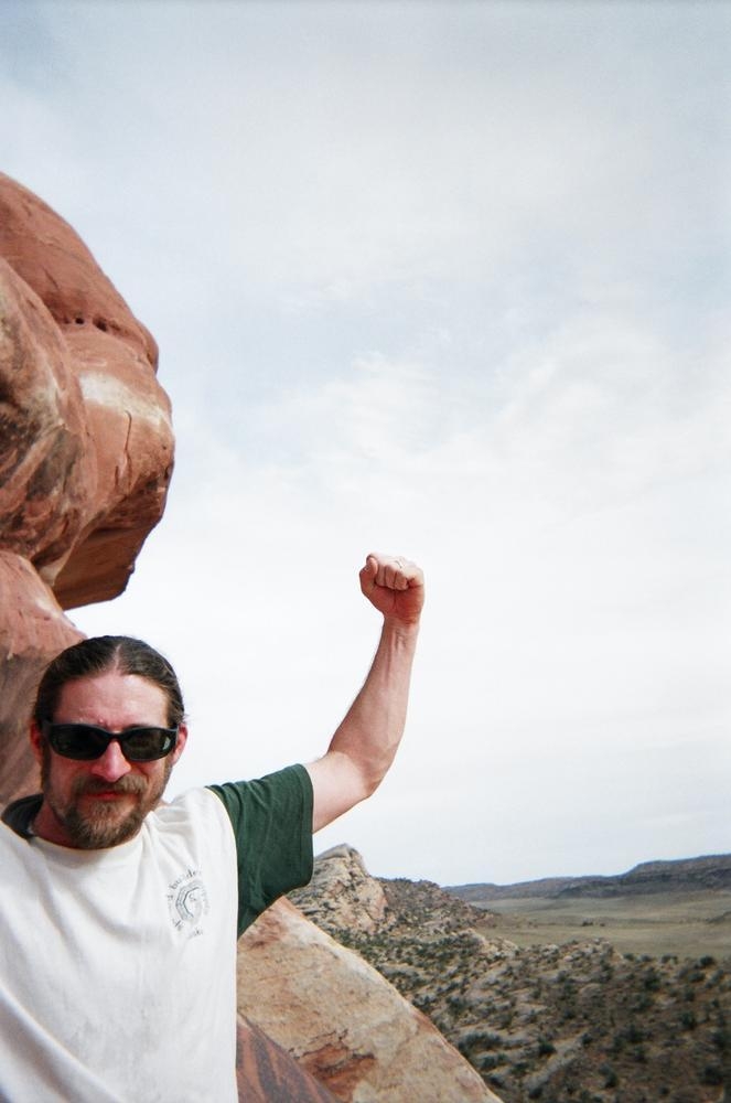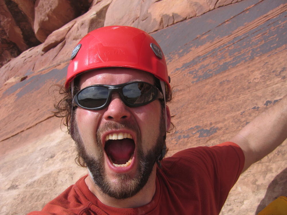 Trey, Henry and Dan came down to Moab this Tuesday and joined up with Ron and I. We started off with Monitor Merimack - as per custom, and then did Bartlet Slickrock and Amasa Back. After riding we’ve gone climbing twice so far. The first was a warm up on Potash Road (Wall Street). Dan and I went up the Fist Full Of Potash (5.10). Yesterday we drove out to Sunshine Wall and put up some top ropes on a nice slab with some 5.9s and 5.10s.