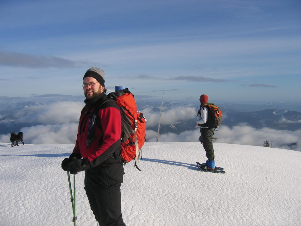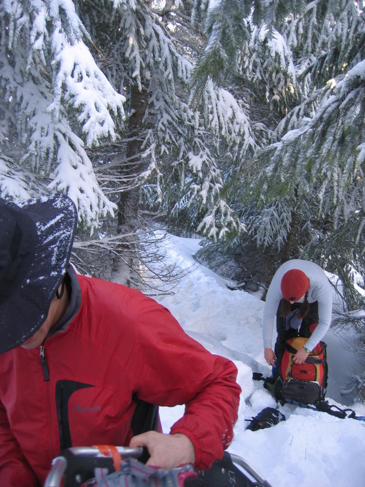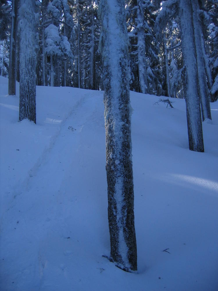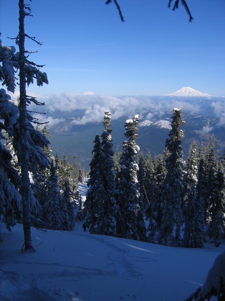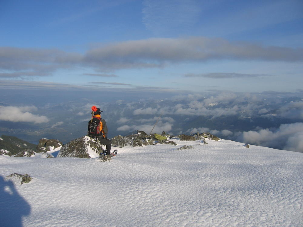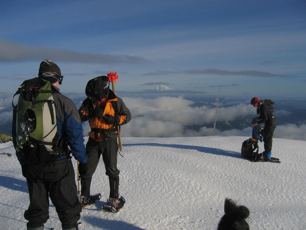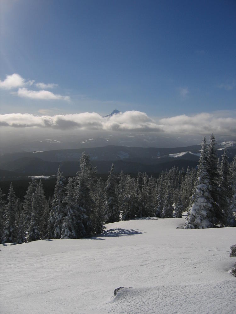 I used my new trekking poles and they made a world of difference. We left Portland at 4 am so we’d be back in time for the Superbowl. We topped out at 10 am after 4 1/2 hours, 2 of which were in snow. It was a perfect weather day, light wind, sunny and not too cold.