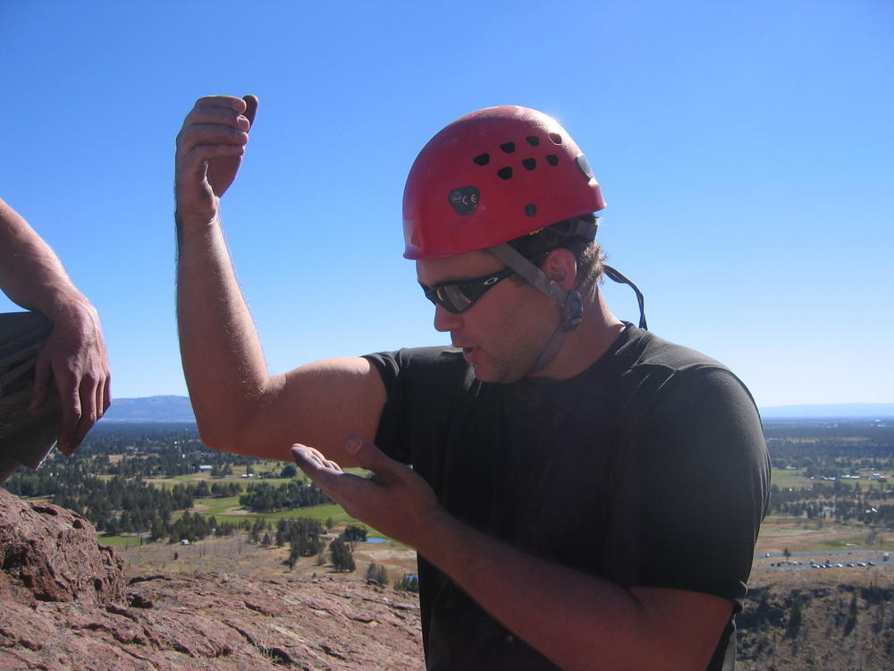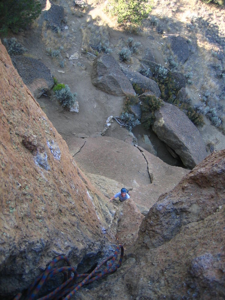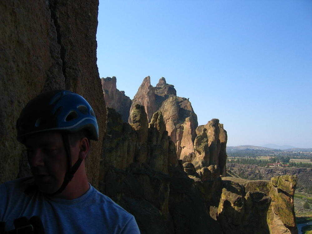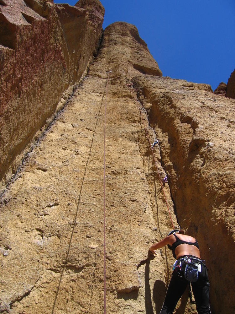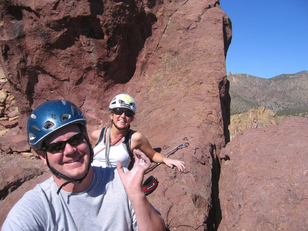 A bunch of us (Angel, Jen, Ron, Matt, Esther, me, Scott and Jami) went over to Smith Rock to climb in the 90 degree heat and complain about our shoe rubber melting onto our feet. On Saturday we climbed Rabbit Stew (5.7 trad) and Bunny Face (5.7 sport) - very manly type climbs. It got too hot in the afternoon to do much more climbing. I as usual freaked out on lead, but I’m getting used to it.