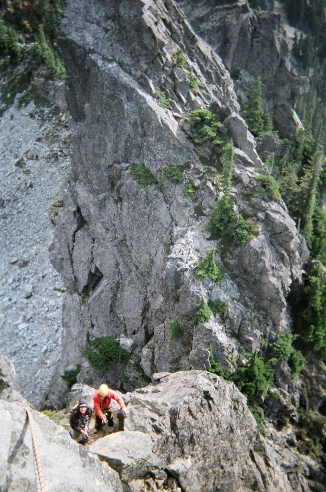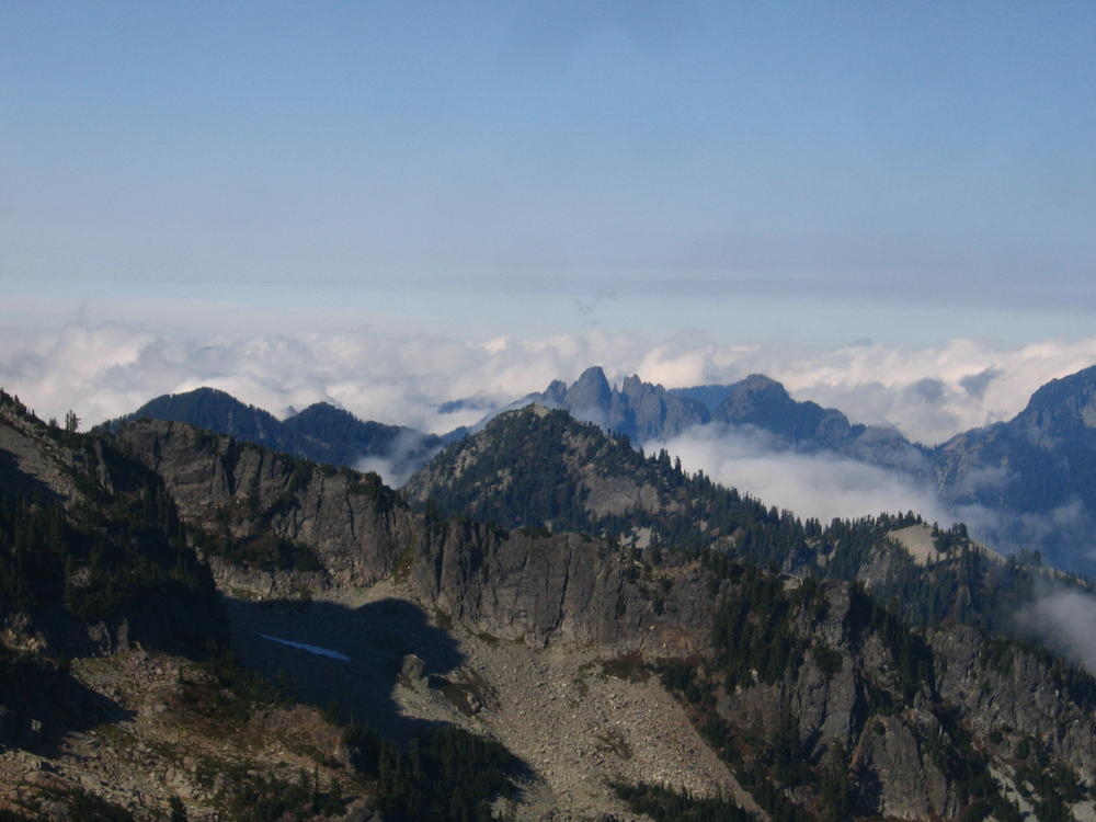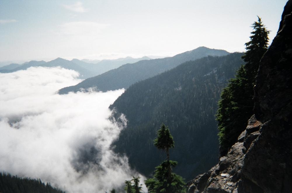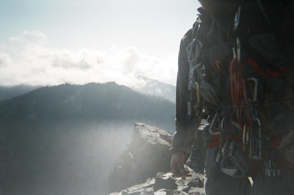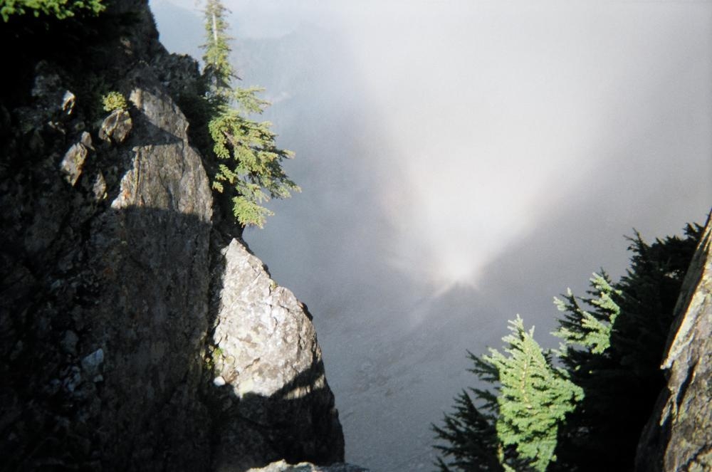 The climb itself was very cool. It was pretty easy climbing, maybe 5.6, but the views and exposure were awesome. We could even see Mt. Stuart off to the east and Rainier just to the west. Dan and I climbed on half ropes so I could practice on those, which I kinda didn’t do so well. But the views were awesome. We got to see clouds whipping over the summit while we ate cookies. On the way out Keevin and I saw our sun halos on the clouds coming up from the valley. That made the trip.