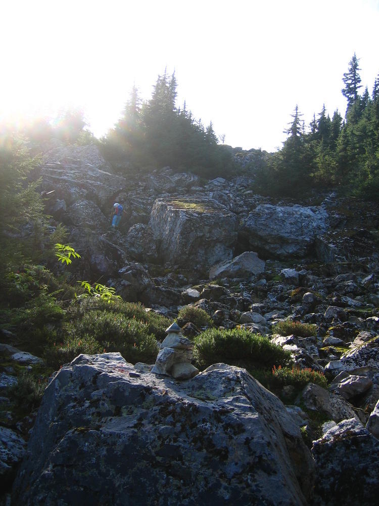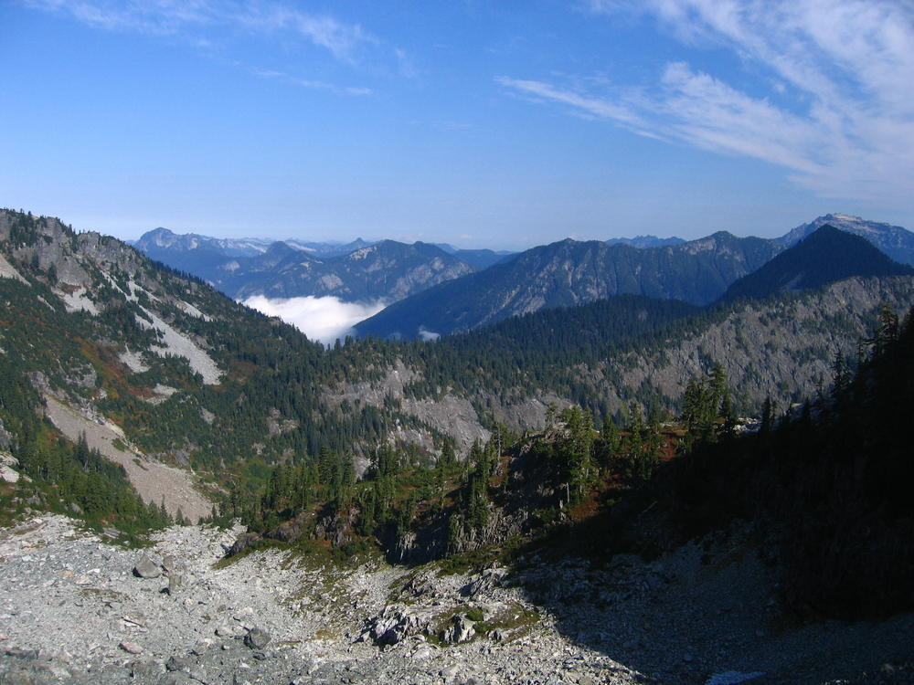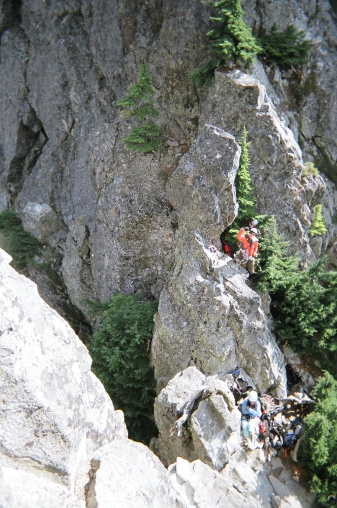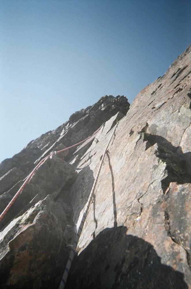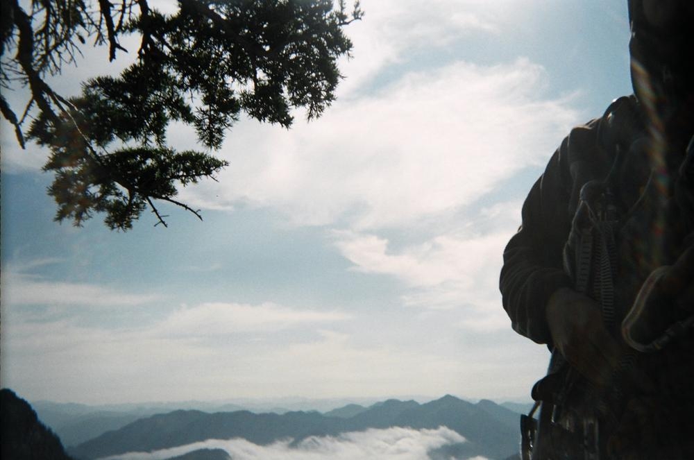 The climb itself was very cool. It was pretty easy climbing, maybe 5.6, but the views and exposure were awesome. We could even see Mt. Stuart off to the east and Rainier just to the west. Dan and I climbed on half ropes so I could practice on those, which I kinda didn’t do so well. But the views were awesome. We got to see clouds whipping over the summit while we ate cookies. On the way out Keevin and I saw our sun halos on the clouds coming up from the valley. That made the trip.
