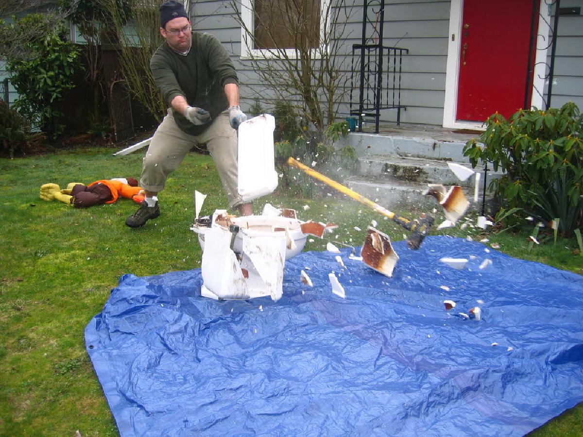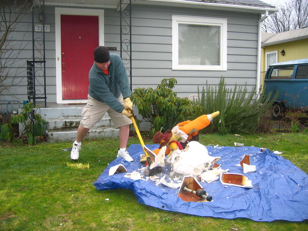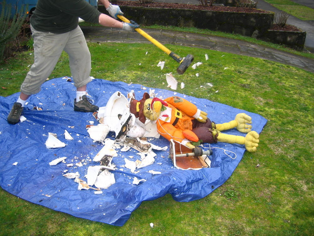 I got a new toilet a bit ago and had the toilet on the front lawn with the turkey sitting on it. I’m sure my neighbors were thrilled with that. I decided it was time to break it up and throw it out.