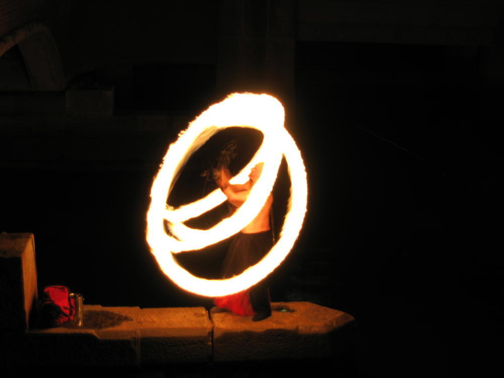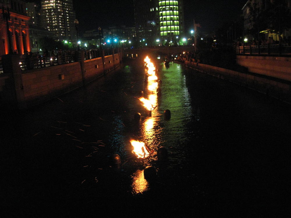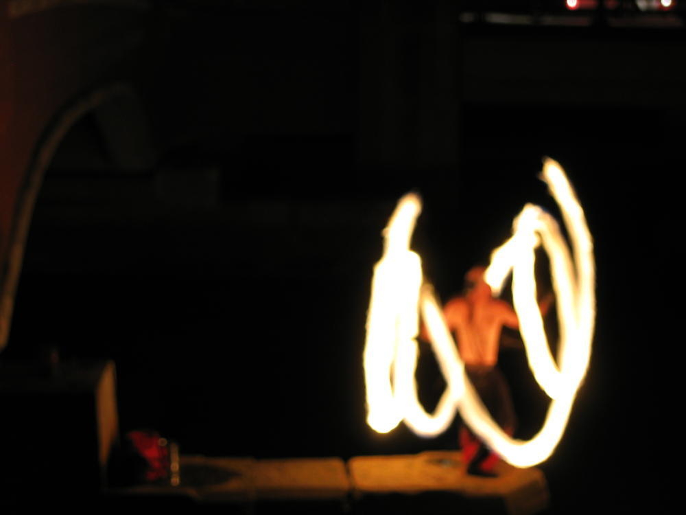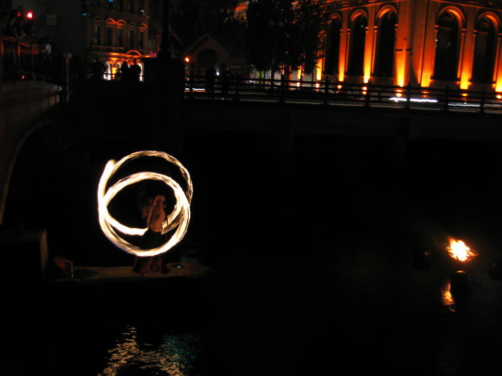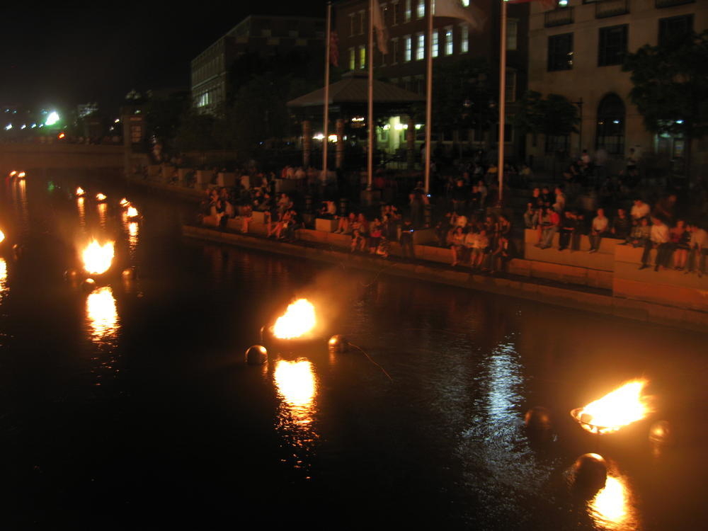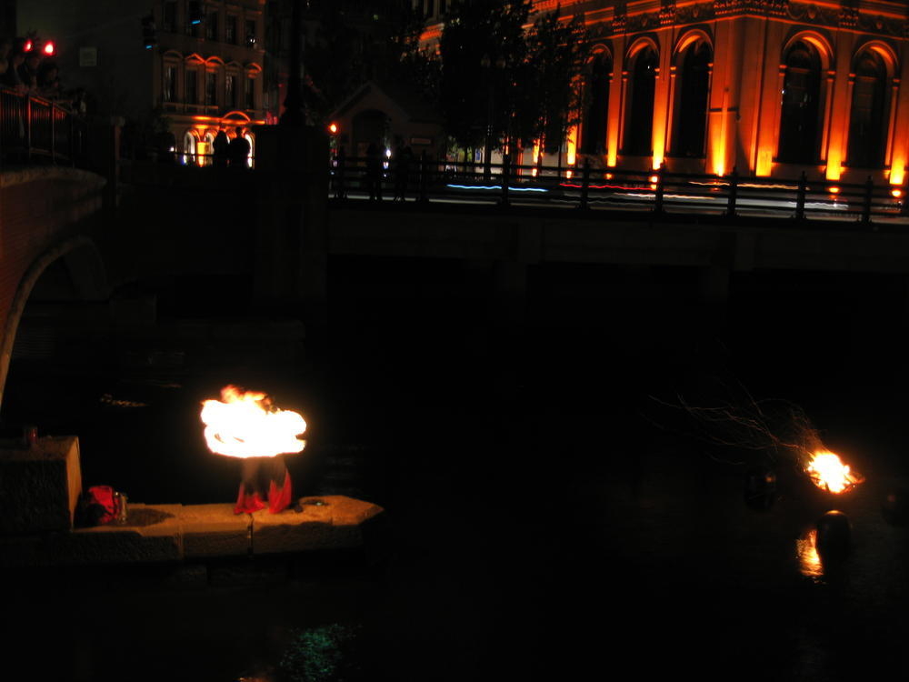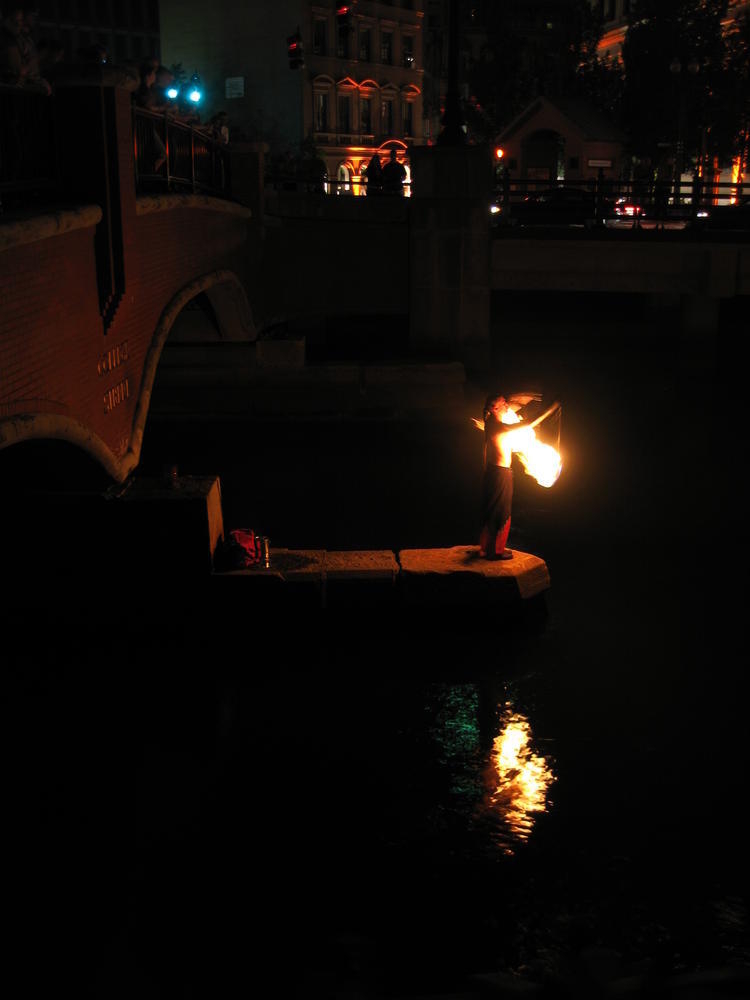 That night the 1997 class had a party behind the main green where I bumped into other people I hadn’t seen in 10 years. I saw Tim and we tried to work the word fuck into every sentance. His wife was fucking nice enough to play along too. After that we went down to Water Fire, where they have fire on the rivers downtown. I’ve always liked it and this time was no exception. There was a living statue who was probably the most striking woman I’d seen in a long time.