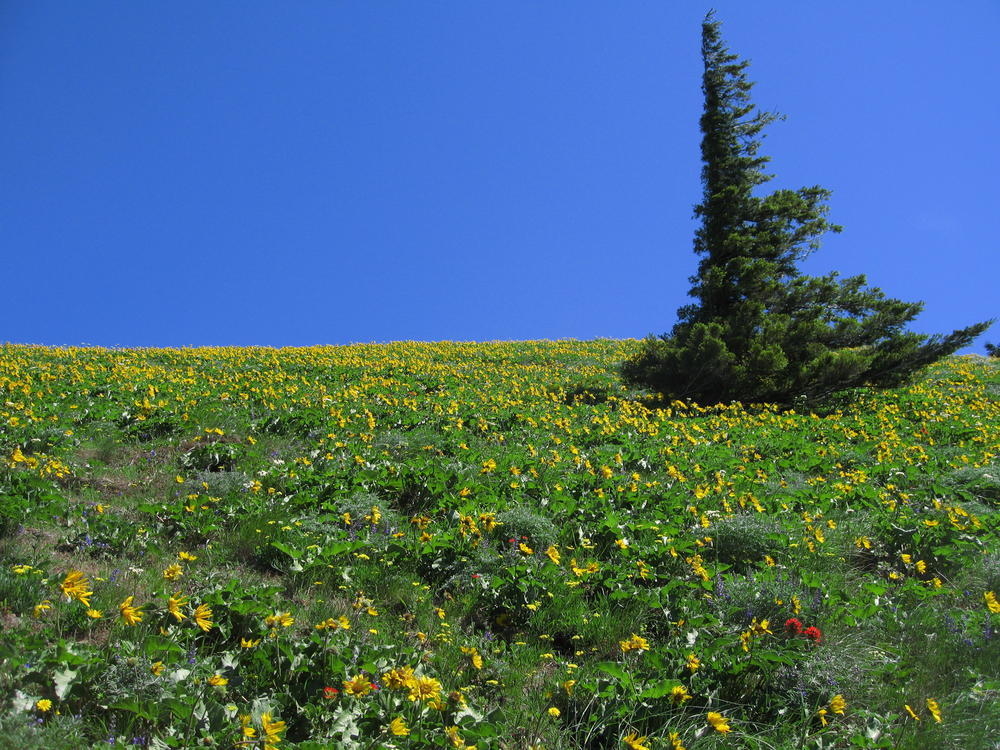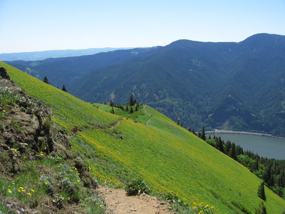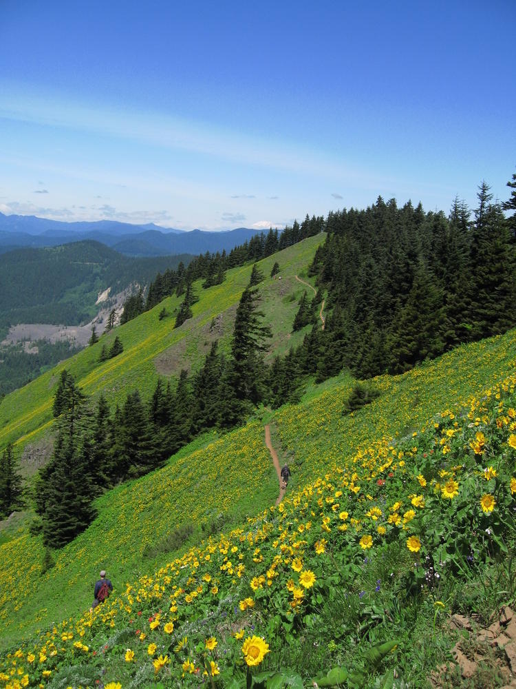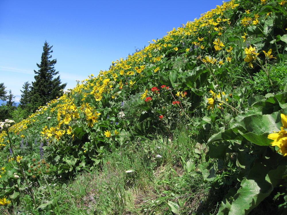 On Monday, Ingrid, Ron and I went up Dog Mountain to get a bit of exercise and look at the flowers. It was a bit slow going up but totally worth the views from up there. You could see the top of Mt. Hood, Mt. St. Helens and Mt. Adams. Up top were at least 30 people, and we must’ve run across another 30 on the ways up and down. Ingrid and I talked to this older gal who was cool as hell, she trains with 2 gallons of water for the hike up. I felt like a siss just carrying 5 gallons when I’m 40 years her junior. She was badass.