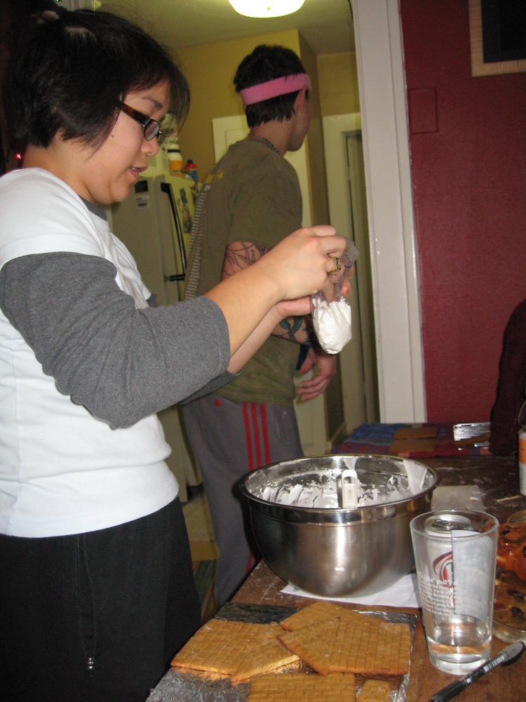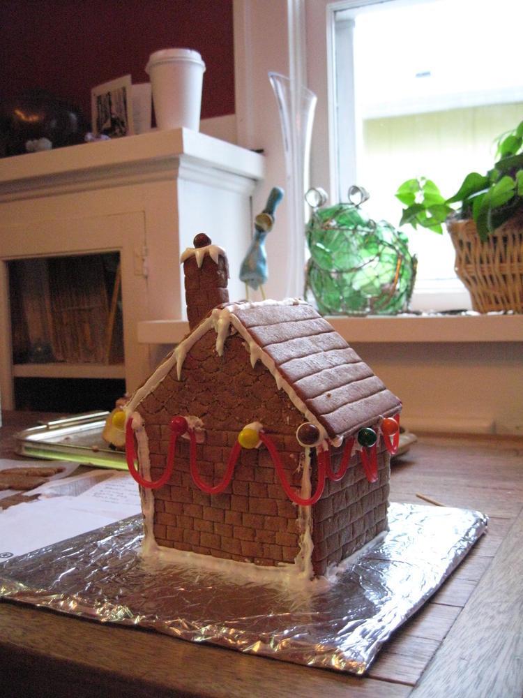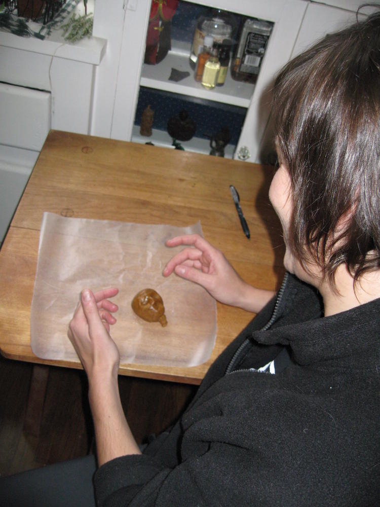 Ingrid put together a gingerbread house party for Kelly. Sara, May, Matt and Kelly came over and we all watched as Kelly and Ingrid made dough. May had a dope house, Sara made a cool shrunken head, Kelly and Ingrid made trees and skiis, Matt made an ice axe and I made a bowl that didn’t come off the mold.