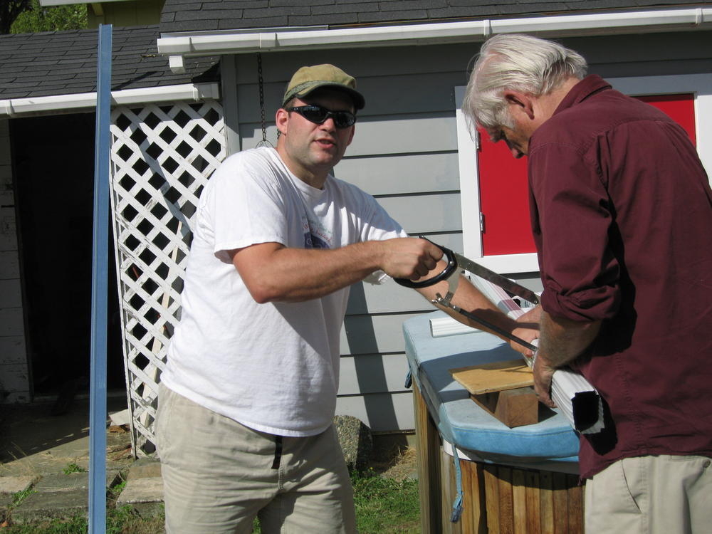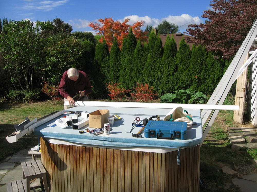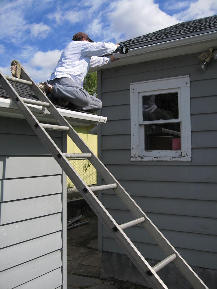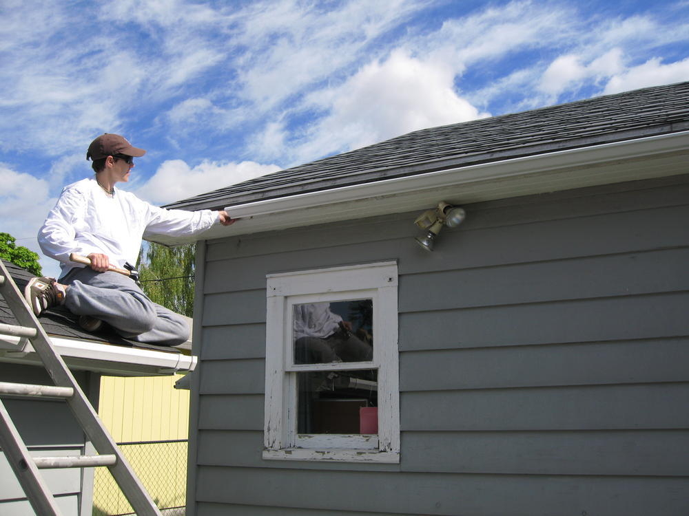 On Saturday Mom & Dad came over to put up new gutters on the West side of my house. The old ones were Mickey Mouse and would just funnel the water to one part and waterfall from there. The new ones look pretty nice.