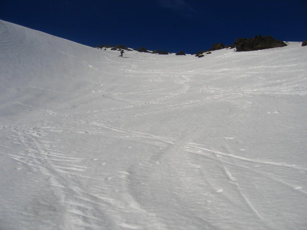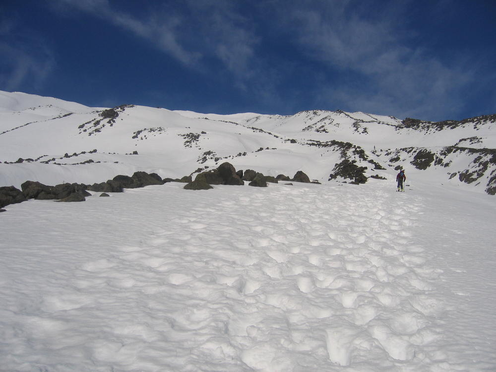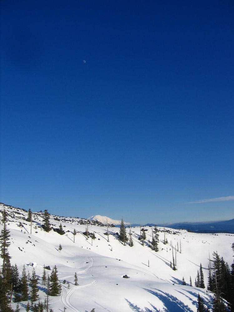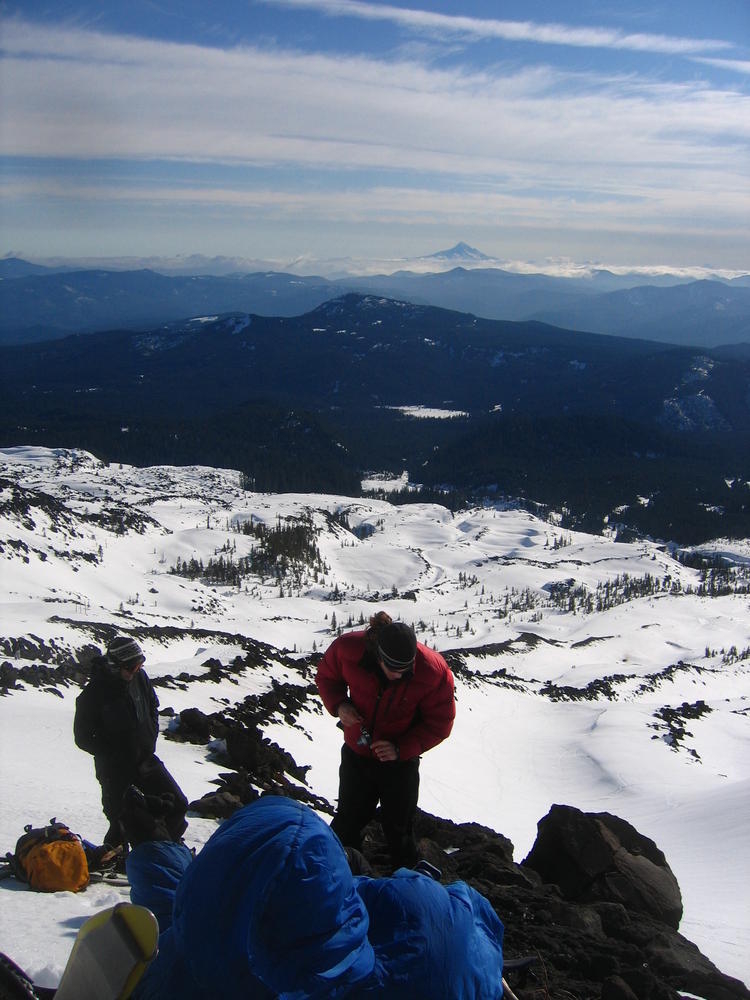 On Saturday Jamie invited me to go ski up and down Mt. St. Helens. I went with him, Matt, Bob, Mark? and the Boarder (whose name I forgot).I had a list of excuses to turn around but thankfully didn’t have to use them as around 5000’ the wind got ridiclous and we all stopped there.As the wind didn’t get better we headed down anyway after declaring 5000’ the summit of St. Helens.