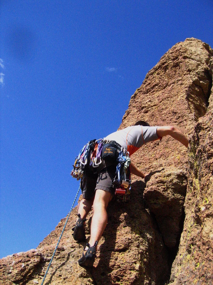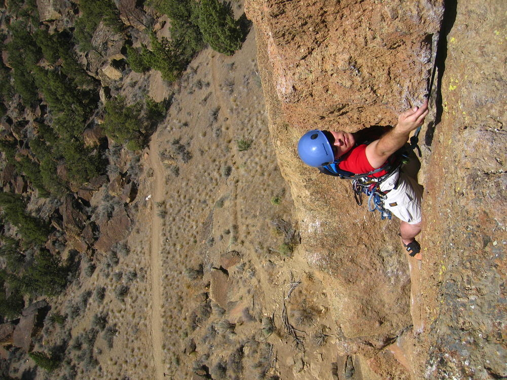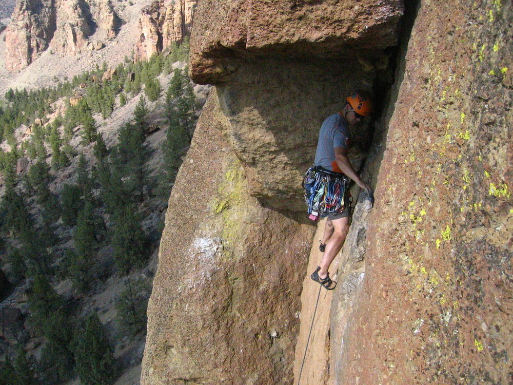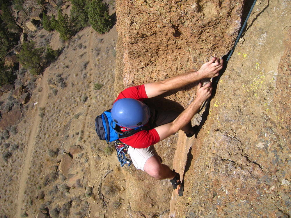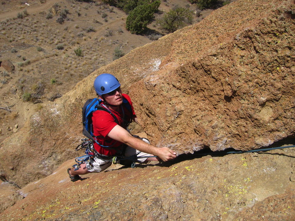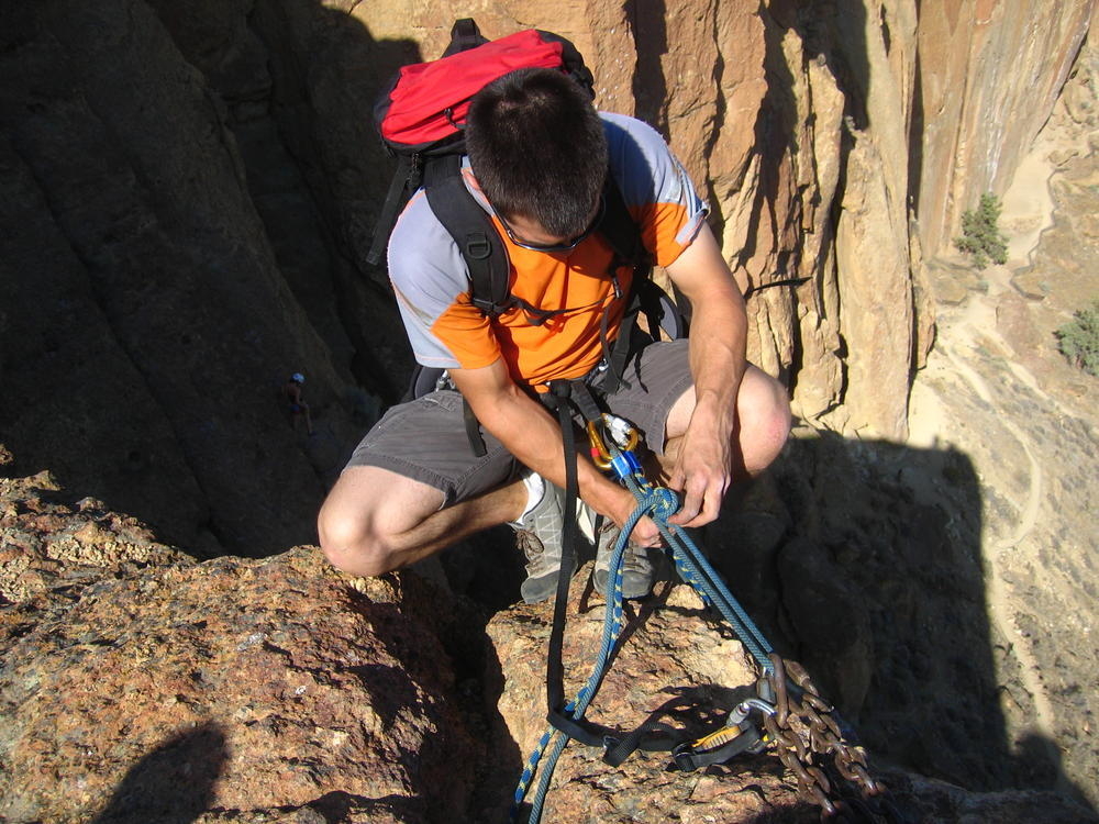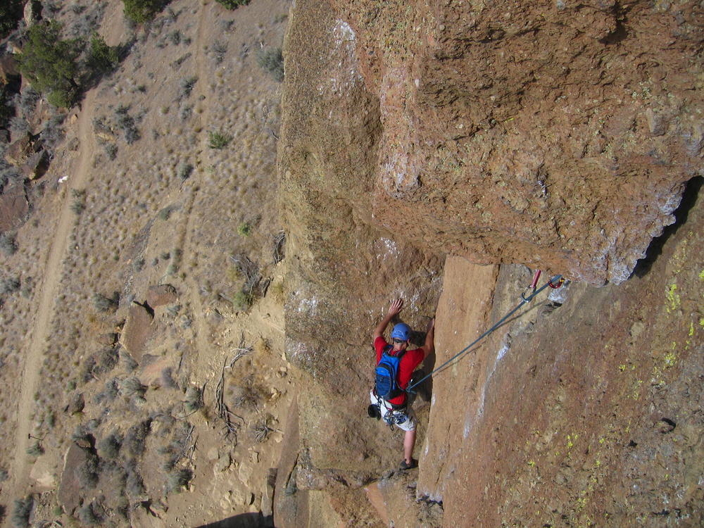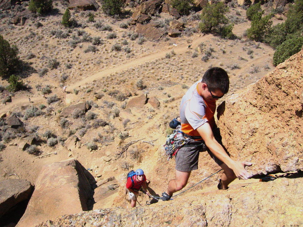 Last weekend we went over to Smith Rock and climbed on Spiderman. I freaked out at the crux, again, when my feet blew and I was hanging by my hands above my gear. So that sucked. After Ingrid and I got to the top, I rapped down to take pictures of Matt and Jeremy pulling the roof. That was badass and made up for the cruxy screaming and swearing.