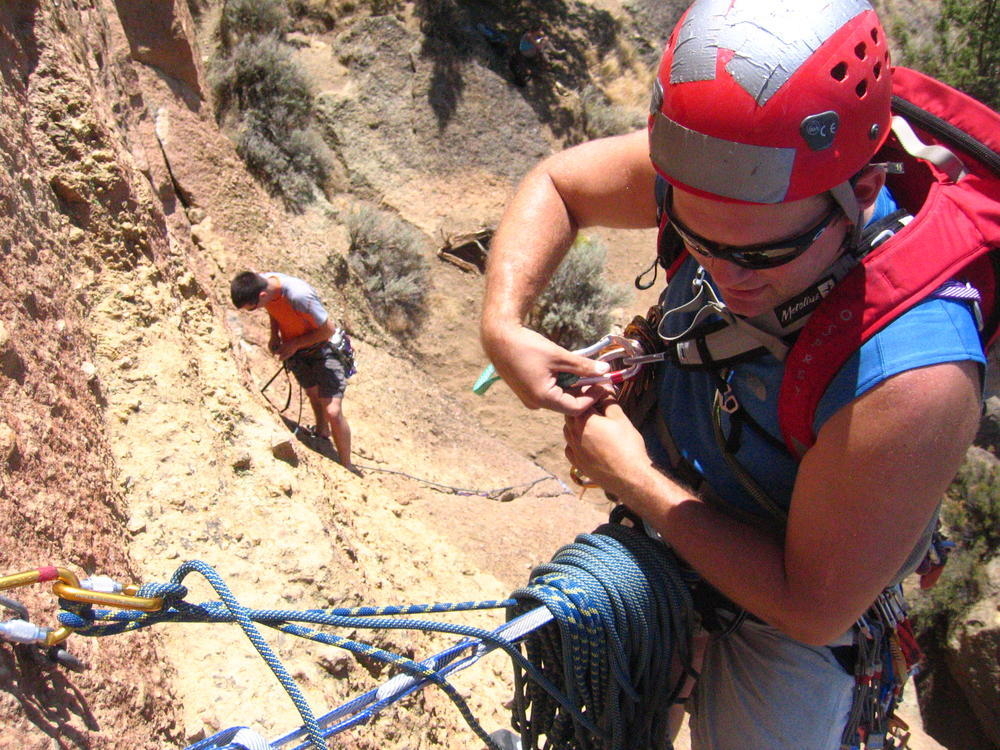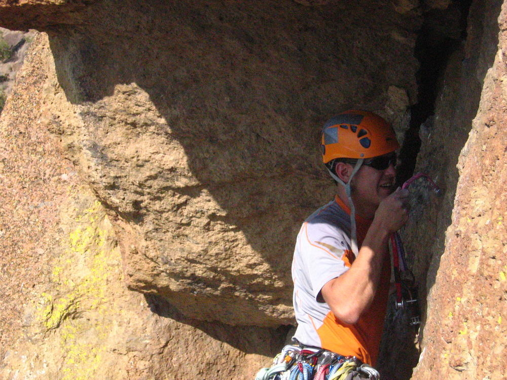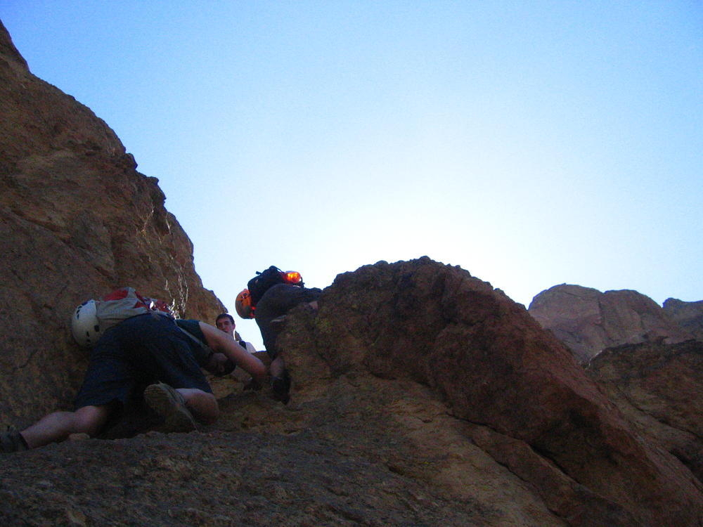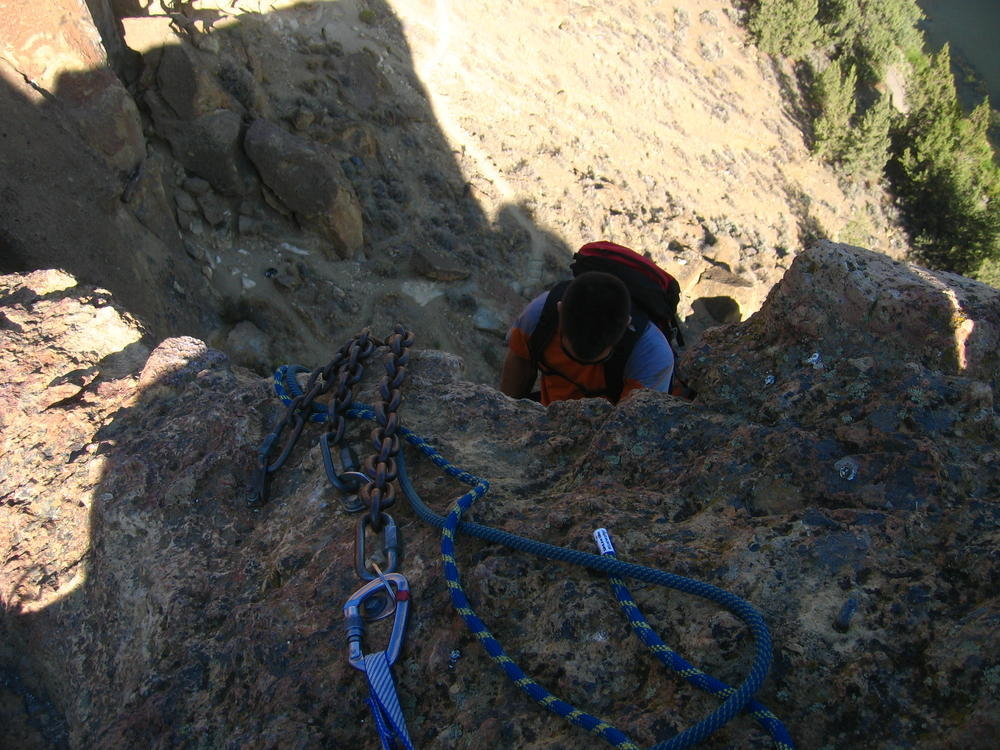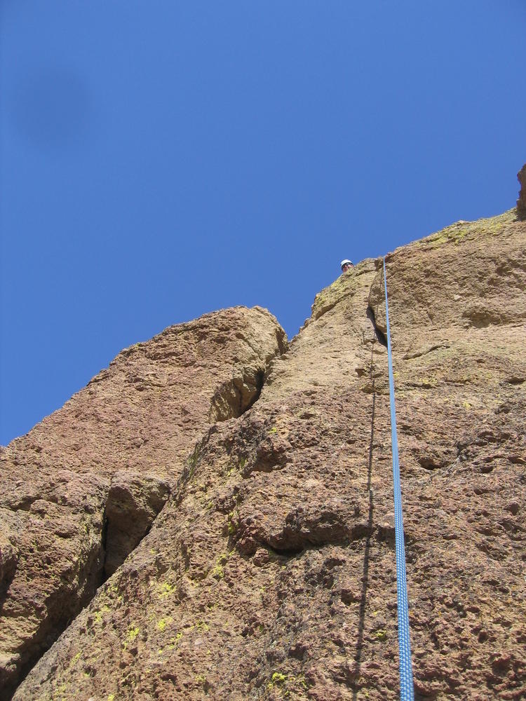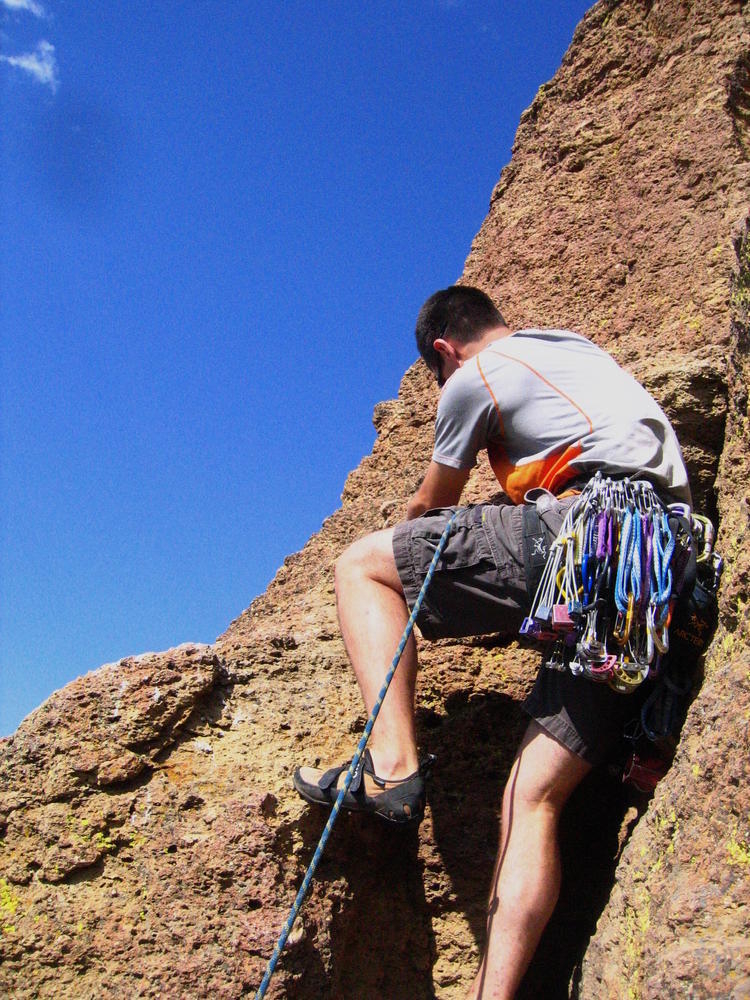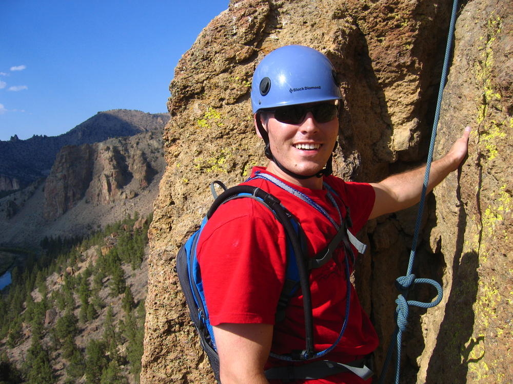 Last weekend we went over to Smith Rock and climbed on Spiderman. I freaked out at the crux, again, when my feet blew and I was hanging by my hands above my gear. So that sucked. After Ingrid and I got to the top, I rapped down to take pictures of Matt and Jeremy pulling the roof. That was badass and made up for the cruxy screaming and swearing.