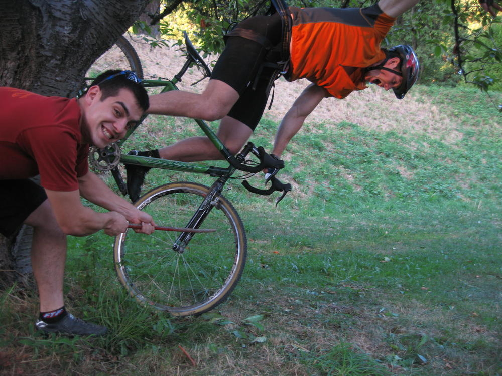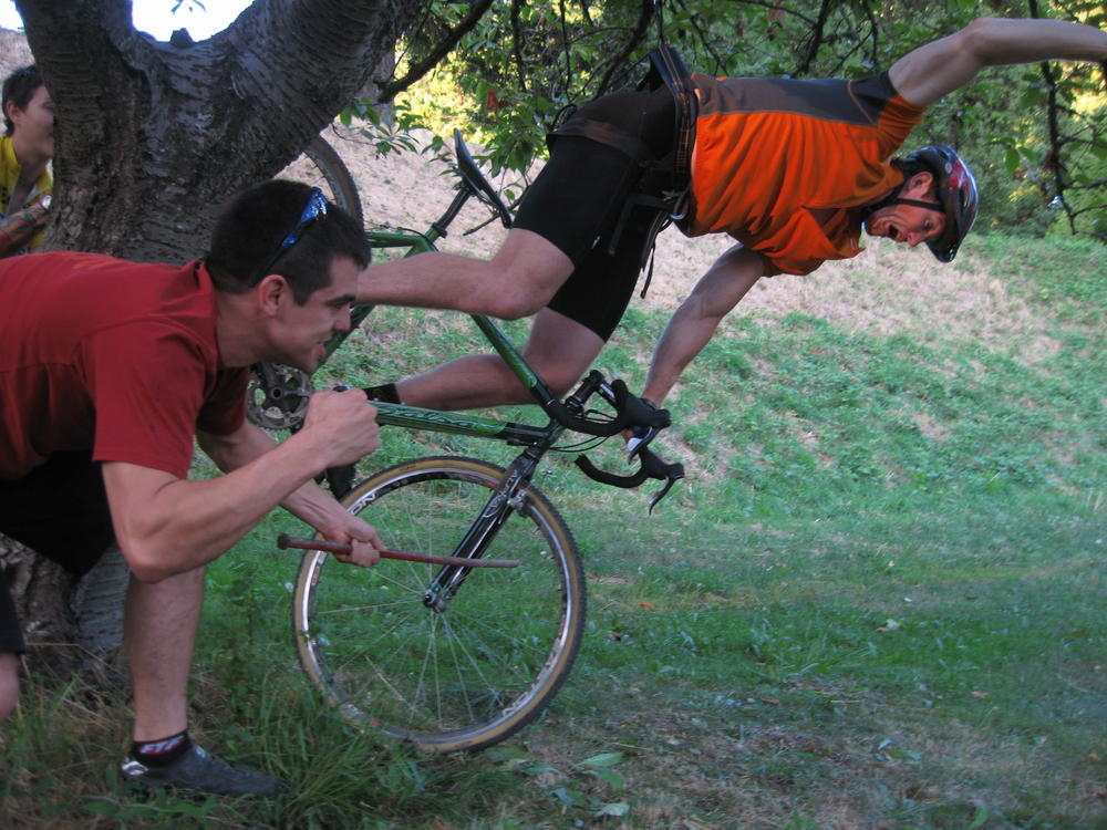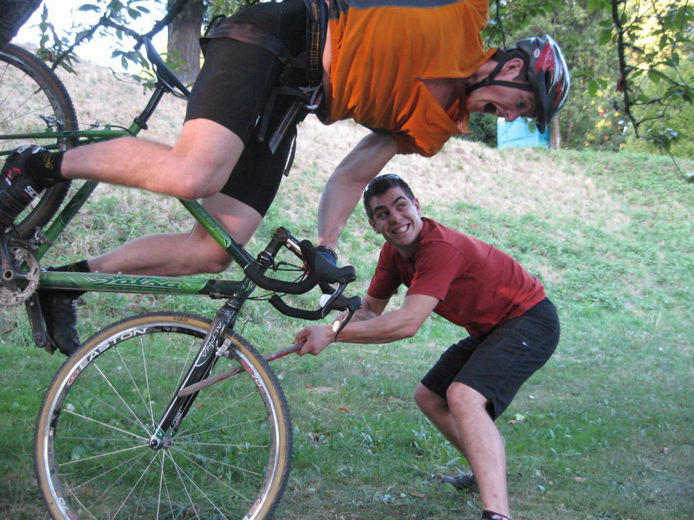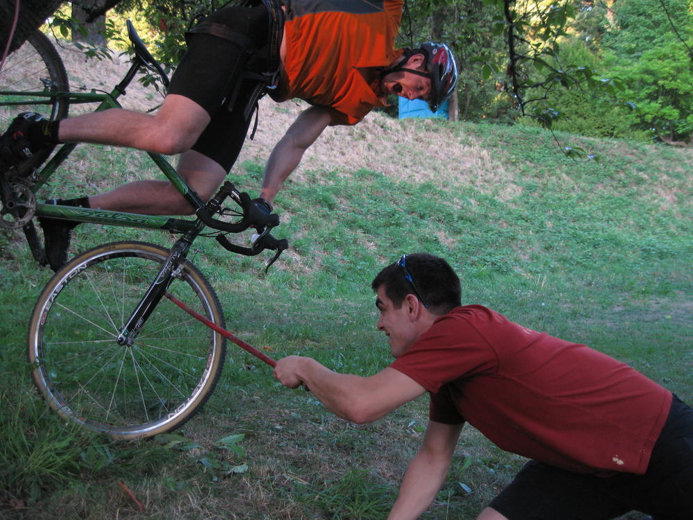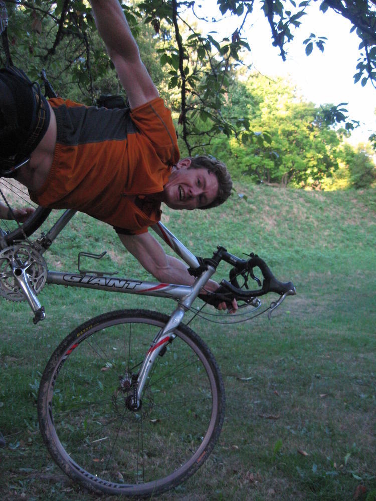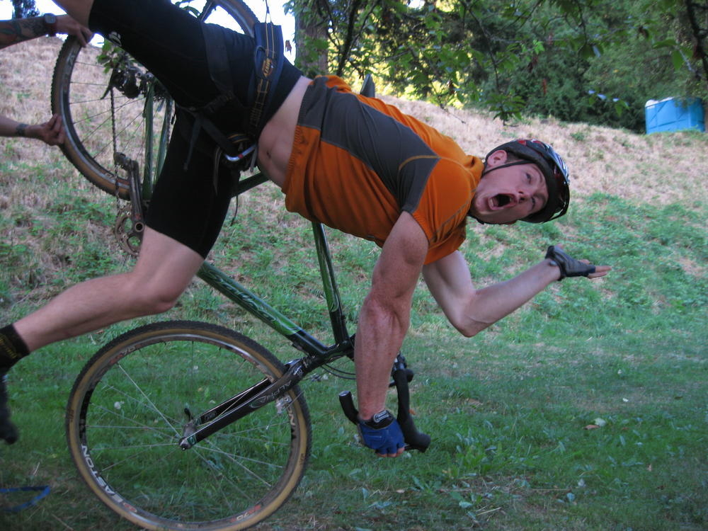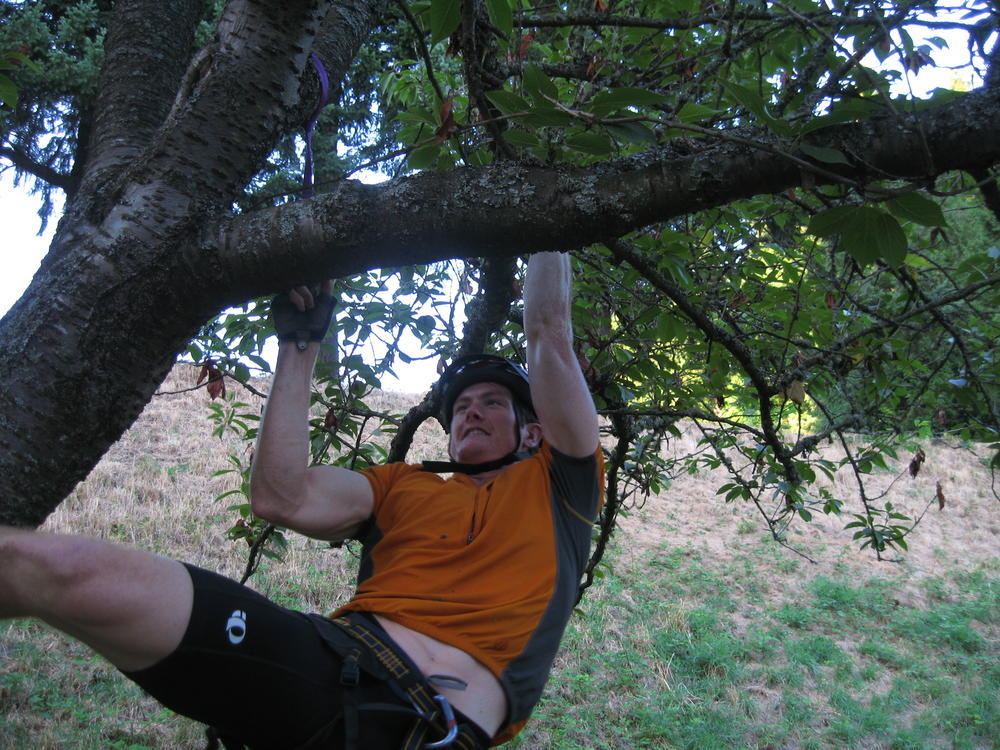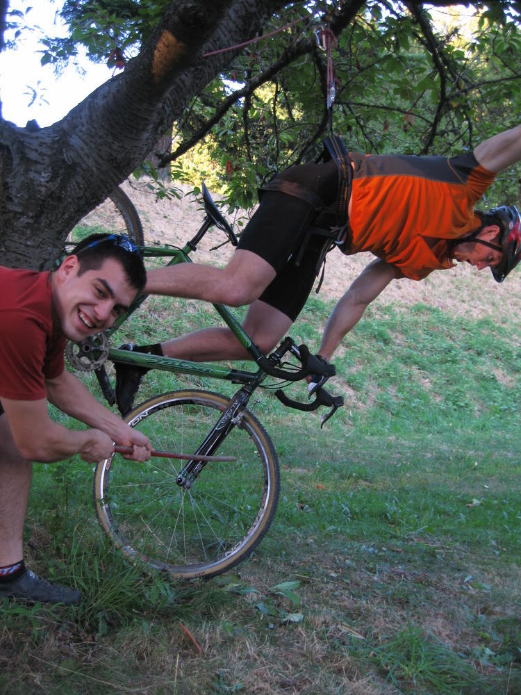 We have been meaning to make a jersey for Team Kermantle, but have been lazy. So we finally went out and took some pictures we could use for the jersey. Keevin was a good sport about hanging from a thin harness from a tree on the side of Mt. Tabor (the dangerous South face of course.)