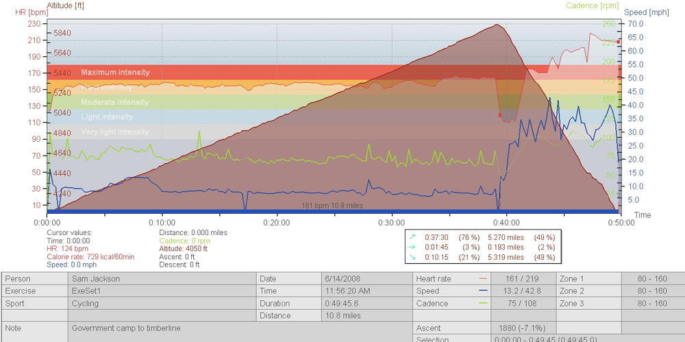 Trey had told me about a race a few years ago from Government Camp to Timberline Lodge. The fastest time was 25 minutes, which is impressive given it’s around 2,000’ gain over 6 miles. I was aiming for 45-60 minutes. I ended up getting 39 minutes which I thought was pretty good. I found out later that I didn’t do the same route as them, so I’ll be redoing this soon. The monitor showed me as having over 180bpm on the way down, but that was just a misread.