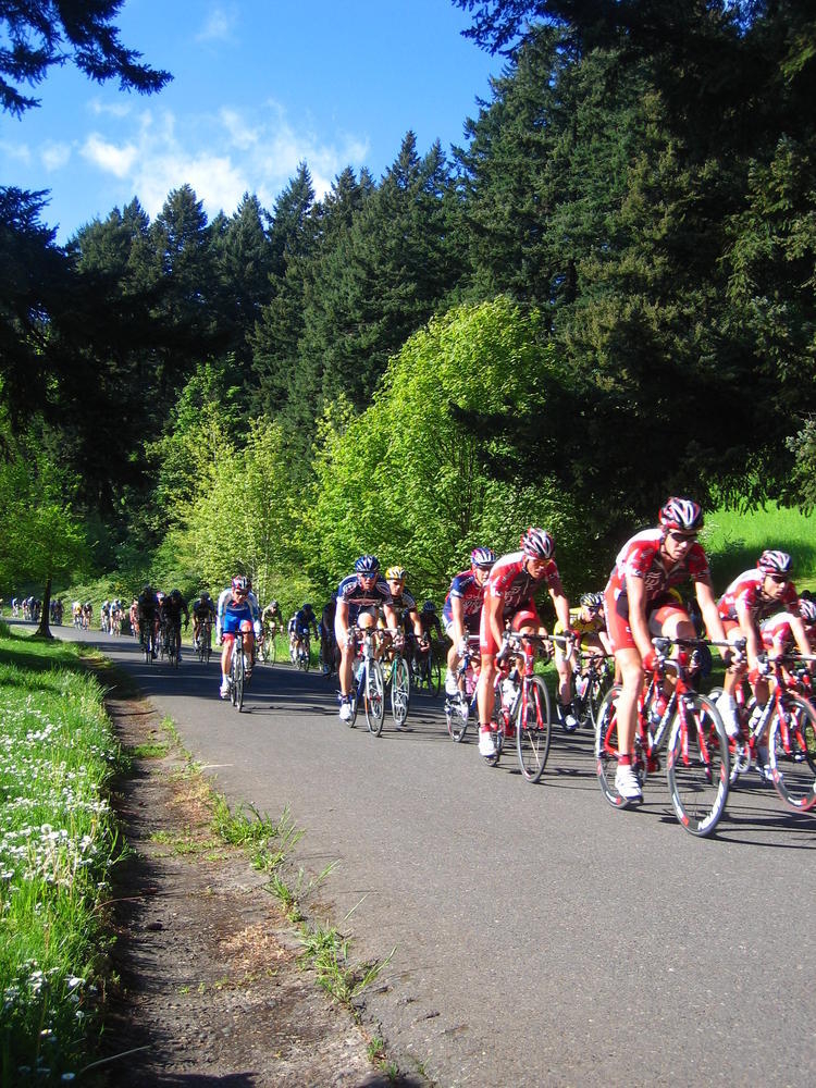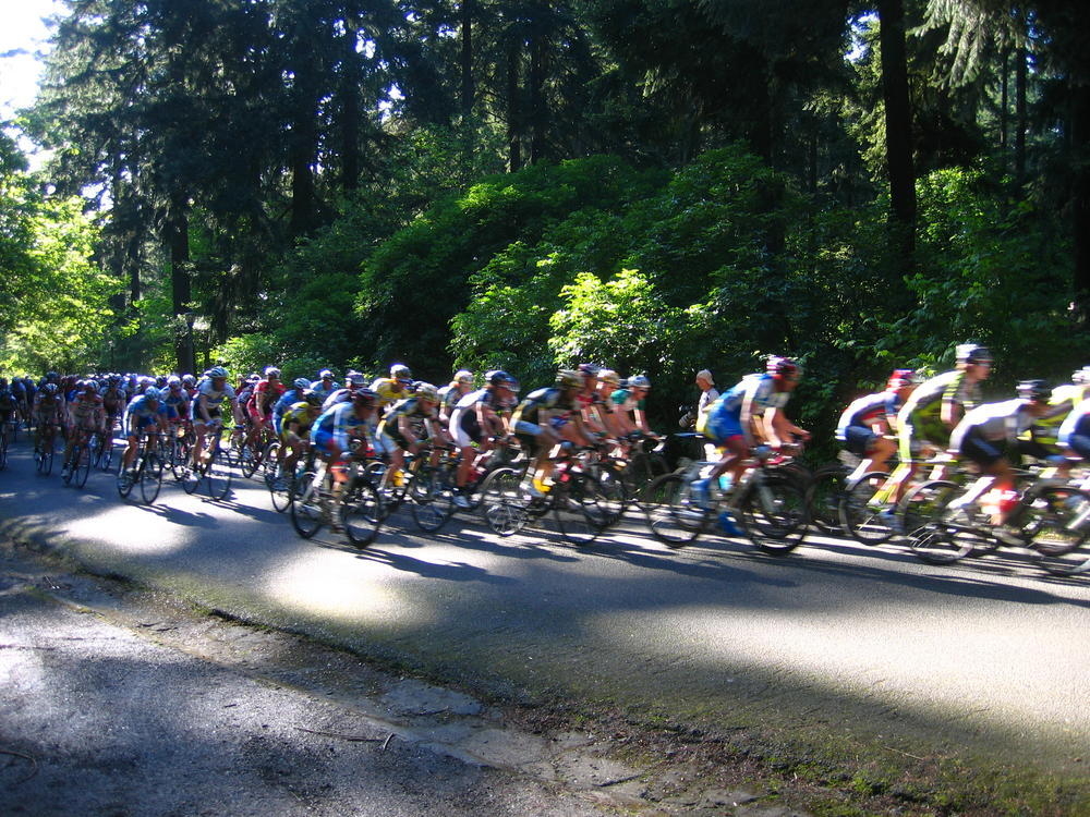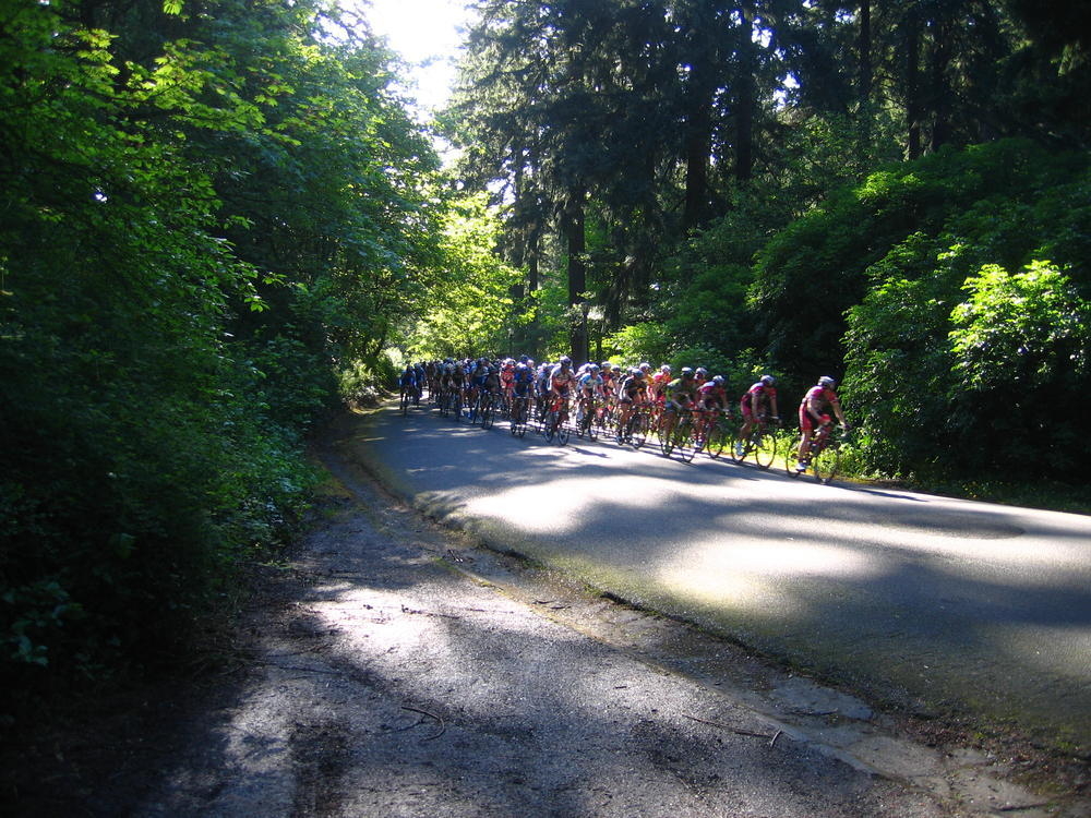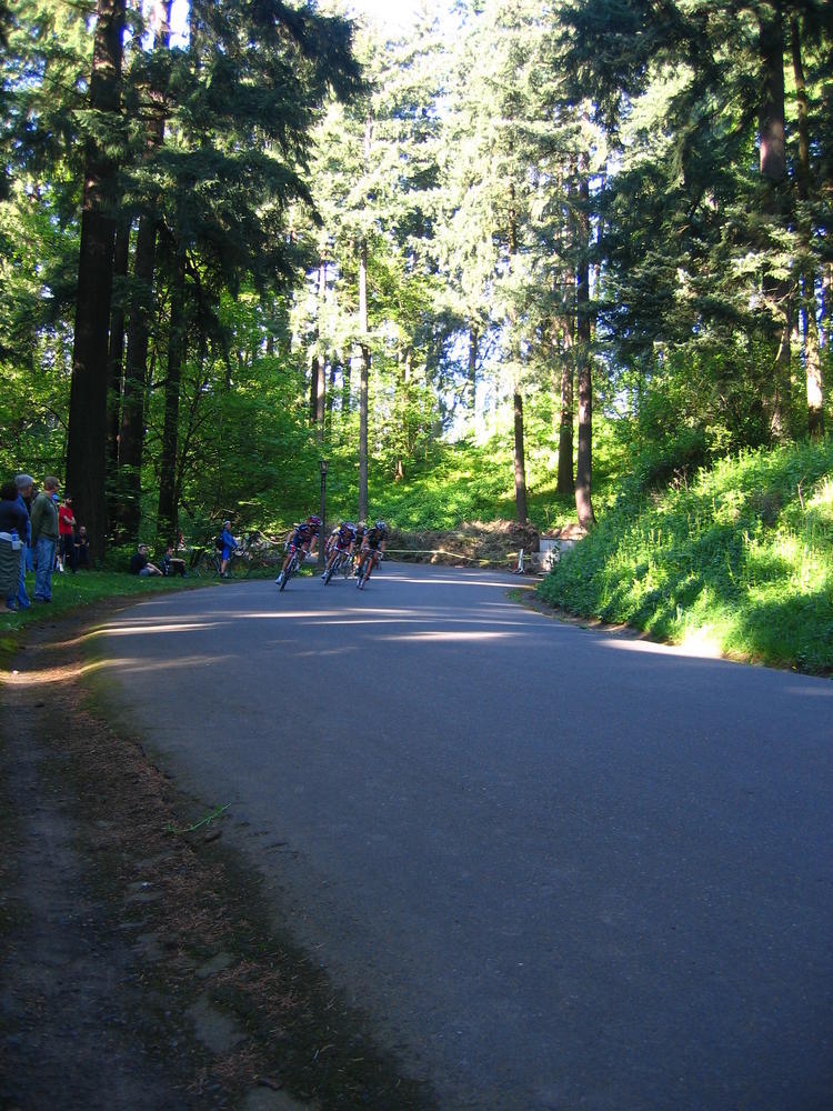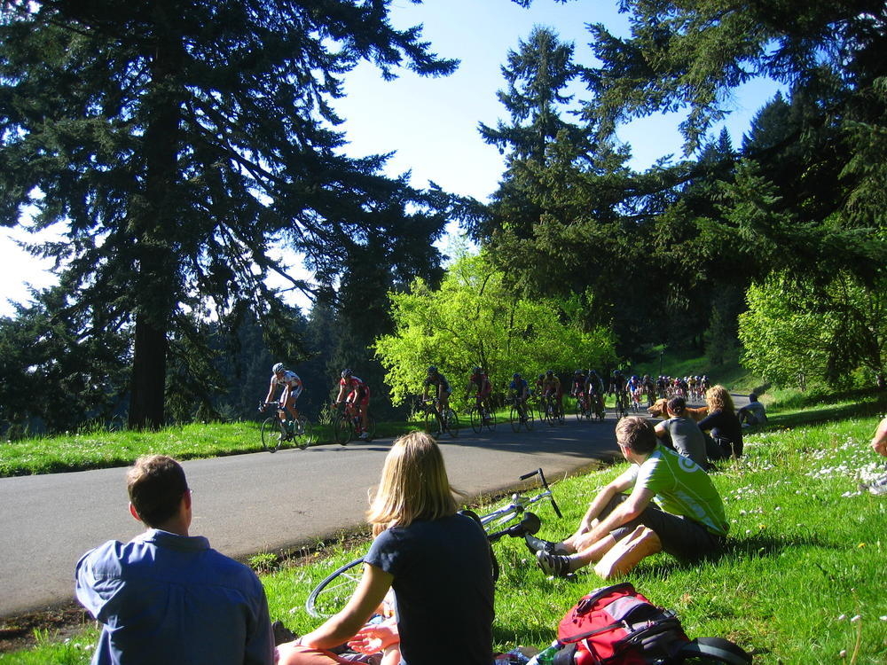 This week the Mt. Hood Classic was racing downtown and on Mt. Tabor. Tuesday they raced downtown on the waterfront and the winner averaged 37mph. I barely hit 32 on my way home.On Wednesday they did around 20 laps on Mt. Tabor, averaging a speed of 26mph. Matt and I rode 4 laps on the same route on Monday. I thought we did quite well and our best time was just under 4:10. These guys did 2:45 laps. While they raced a hundred miles the next day, we had trouble riding to work.