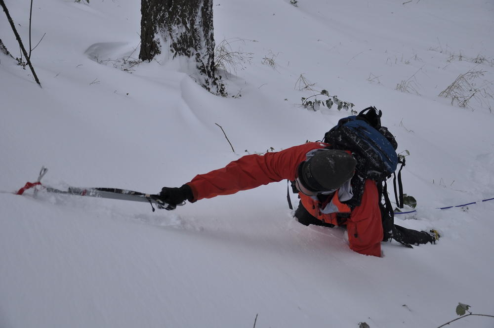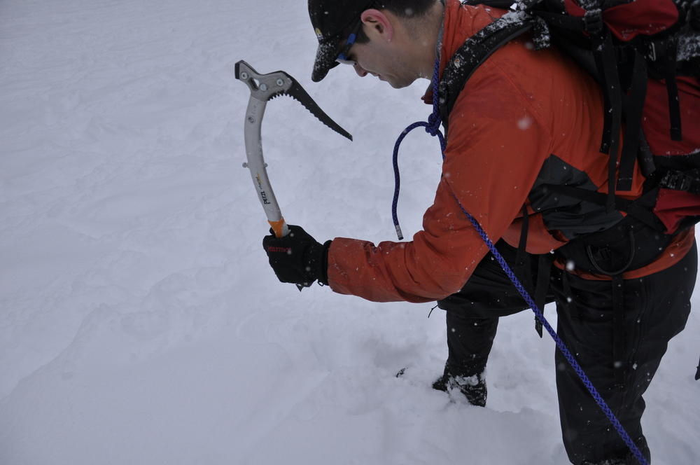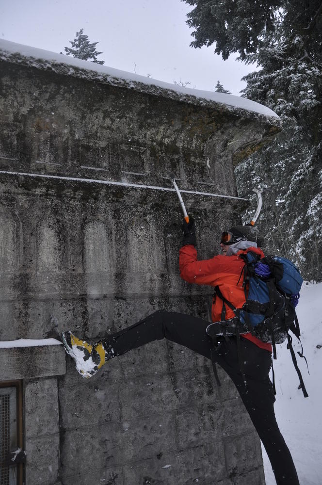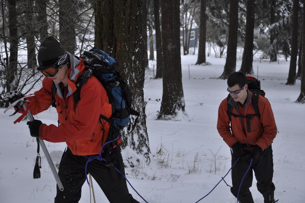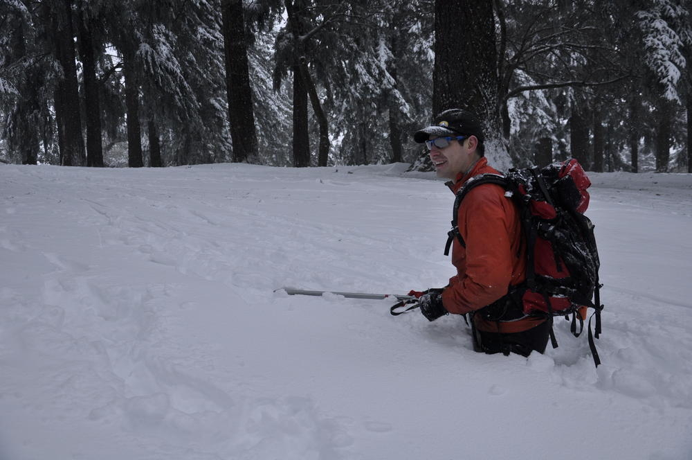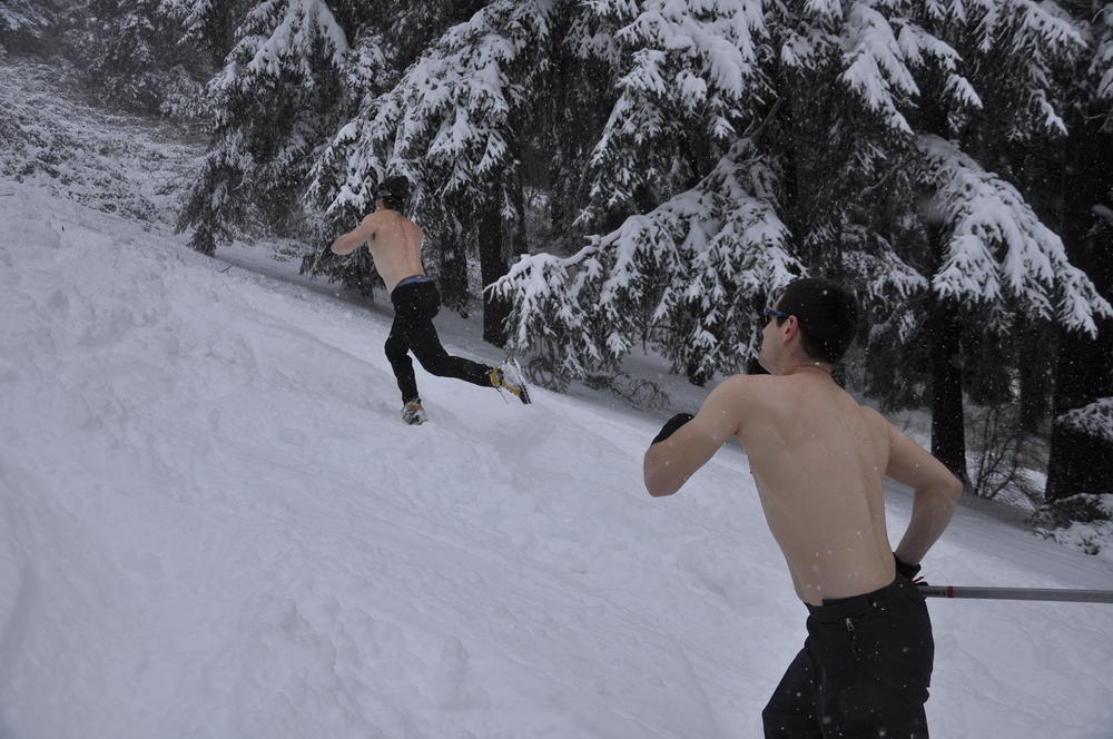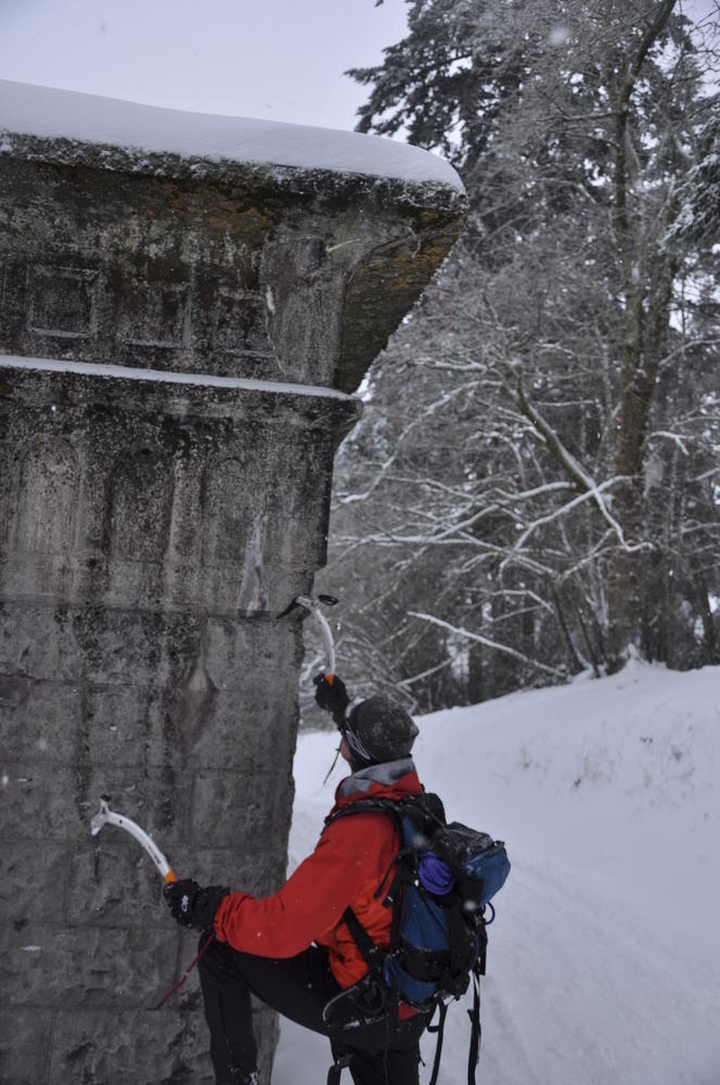 Mt. Tabor finally got enough snow for Matt, Keevin and I to make a West face summit attempt. It took us all day and we barely eeked up some of the upper sections, but we finally summited after a gallant race up shirtless by Keevin and Matt. We got to practice techniques learned by the Mazamas and invent our own as well.