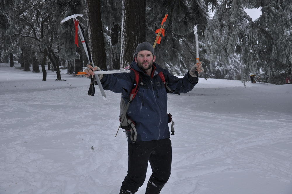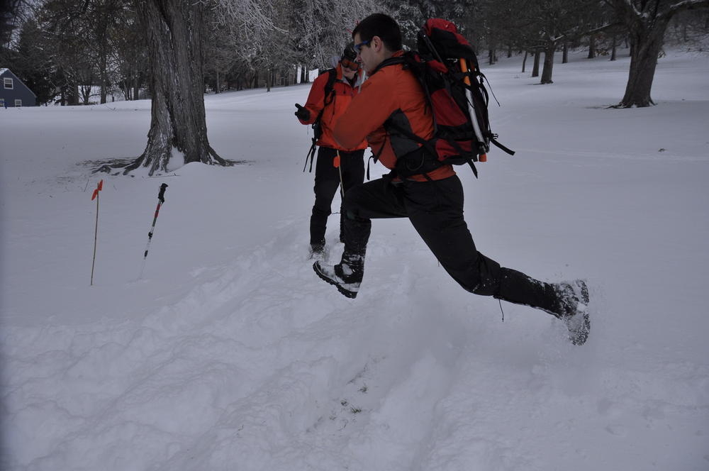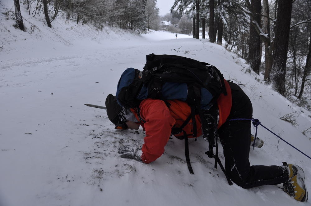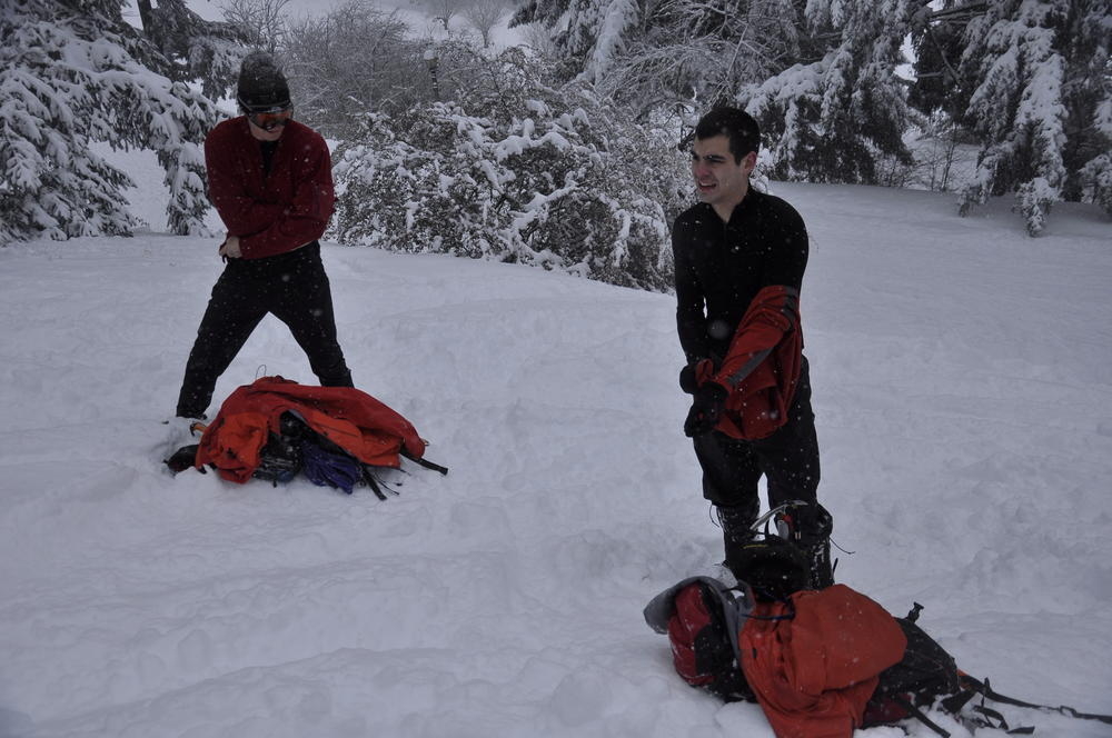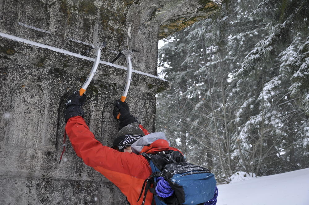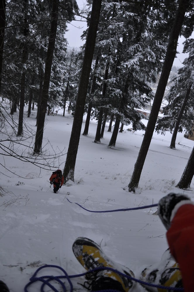 Mt. Tabor finally got enough snow for Matt, Keevin and I to make a West face summit attempt. It took us all day and we barely eeked up some of the upper sections, but we finally summited after a gallant race up shirtless by Keevin and Matt. We got to practice techniques learned by the Mazamas and invent our own as well.