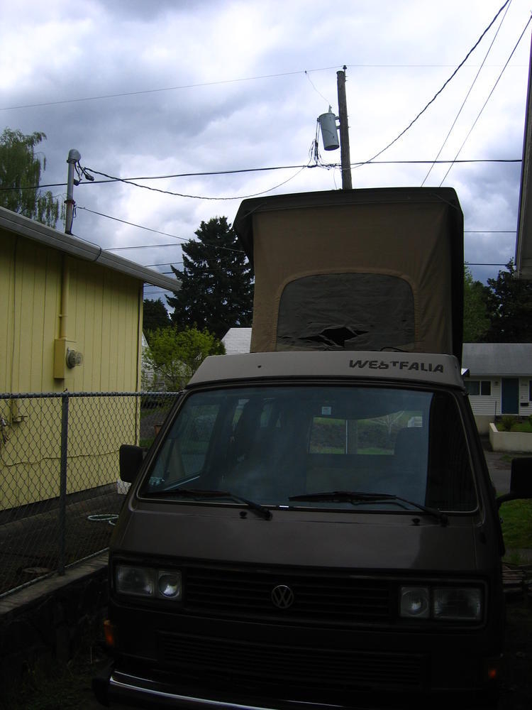 On Saturday, Ingrid and I went up to Olympia to check out an ‘85 VW Westfalia Weekender. It looked pretty solid with a newly rebuilt engine and a few issues that come with 20 year old cars. We got the Weekender as it doesn’t have the kitchen sink and such, as we don’t see ourselves cooking that much and it’d be nice to have the extra room instead. It’s a pretty nice rig and actually goes freeway speeds. It’s going to the shop for a few days to get things touched up. I just ordered a new poptop tent and hangers for the curtains that are being dry cleaned. We also got a new futon ordered to replace the old bed in back.