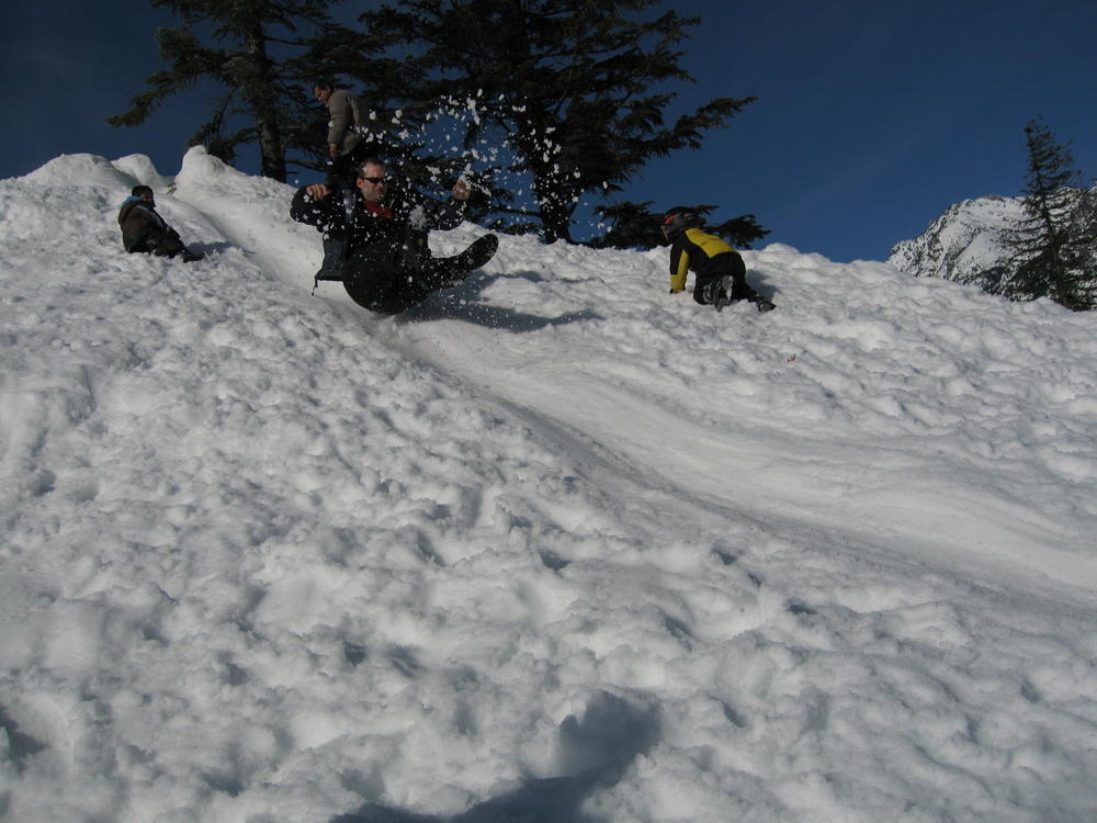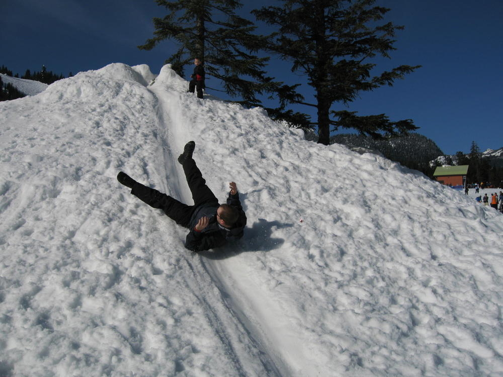 Ingrid and I went up to Seattle to hang out with Sara and to buy a new tent. Sara made us a badass stew in a crock pot and we ate cookies as well. What diet? Did I mention we joined Fatty Bowl 2008? It’s lame or la-may as the French call it, but we’ve lost some weight which helps keeping you hungry.We went tubing at Snoqualmie pass on Sunday, along with everyone else and their grandma. We ditched the tubing and just slid on our butts on some little hill that was more fun anyway. As we tried to leave Seattle my car decided to break a fuel pump and not start. So we took a ride down to the airport in Sara’s new car and got a rental car to Portland. Next weekend will be us going back to Seattle to repair said pump.