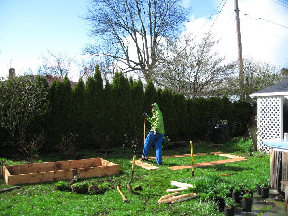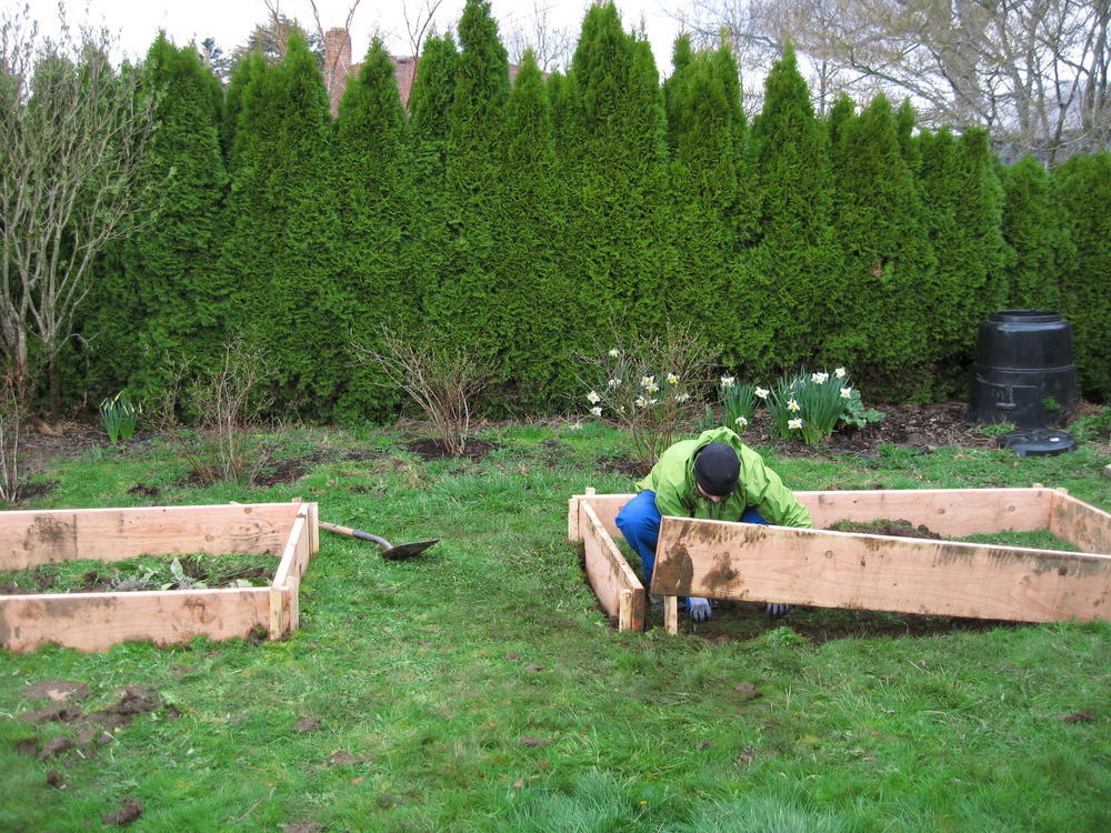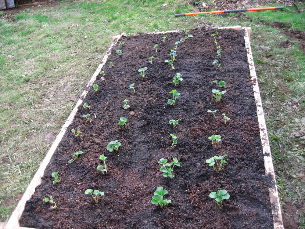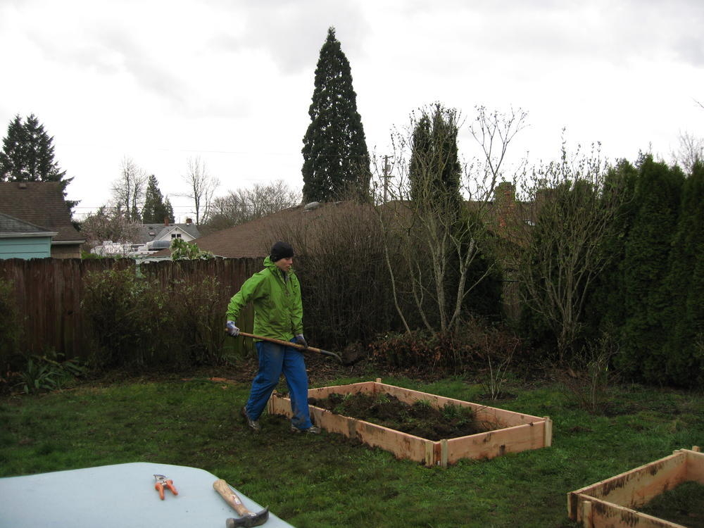 This weekend Ingrid and I made some raised beds to put in strawberries. Simone and Trey came by on Sunday to give advice and help mix in the soil.