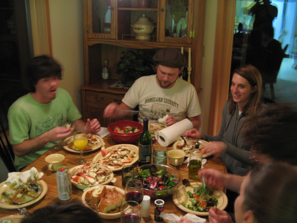 We went over to Sunriver for Dan’s birthday. We were going to go practice our mountaineering stuff but the weather sucked and we couldn’t find a slope without little kiddies on their inner tubes. So I pushed Ingrid into the snow and ran away. Dan and Kate bought some crabs and we tried to eat them but none of us are coasties so we just ruined the crabs.