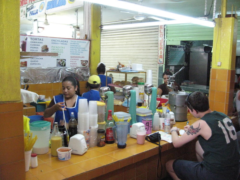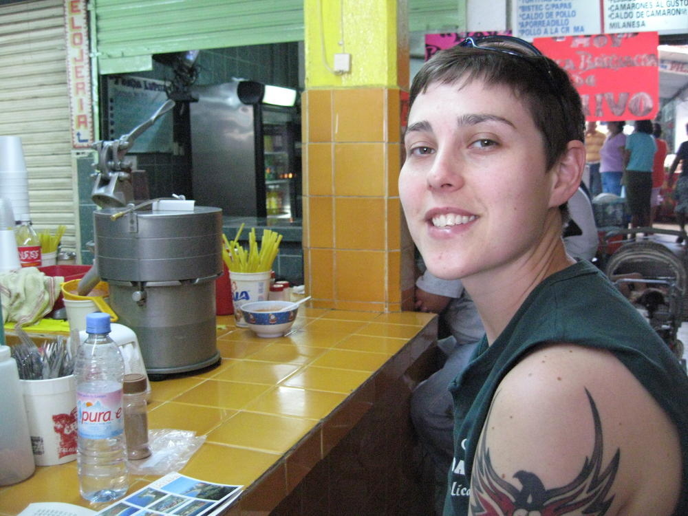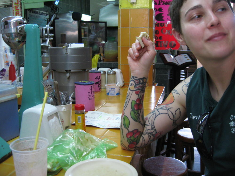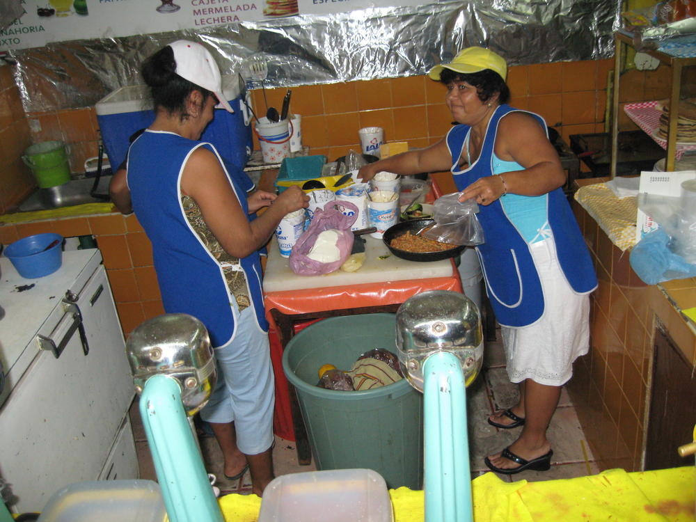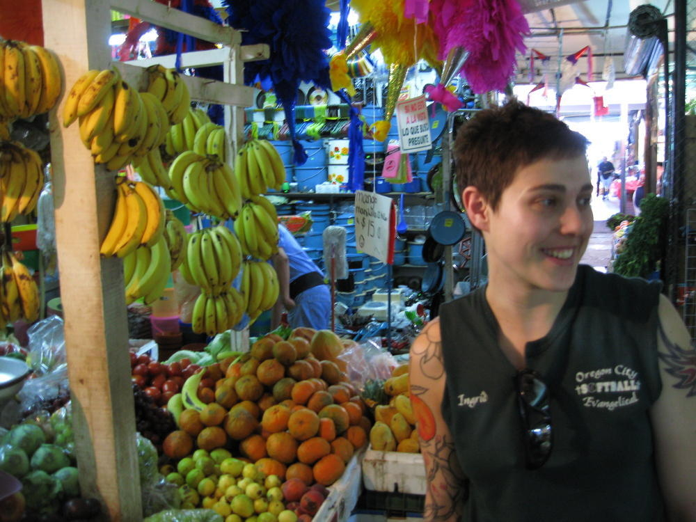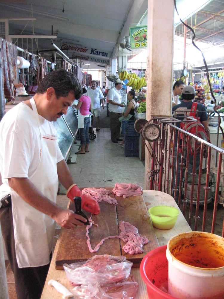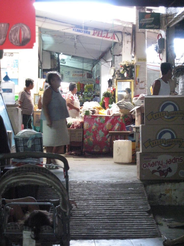 We walked through the market a few times and I wanted to show her a tortilla maker. So we were going down a street and I looked into a store and then went back one and asked them where they make tortillas. After a minute I realized they were saying that the store just next door makes them.