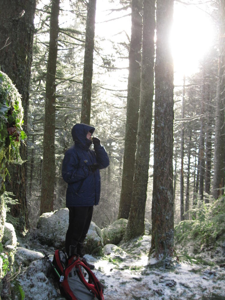 Ingrid and I went up to do Devil’s Rest on Saturday. There was a lot of snow on the path which slowed us down a bit. There were lots of nice views of the Gorge as we hoofed it up to the top. Up top it was pretty cold but the cocoa worked its magic again.