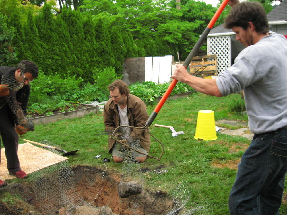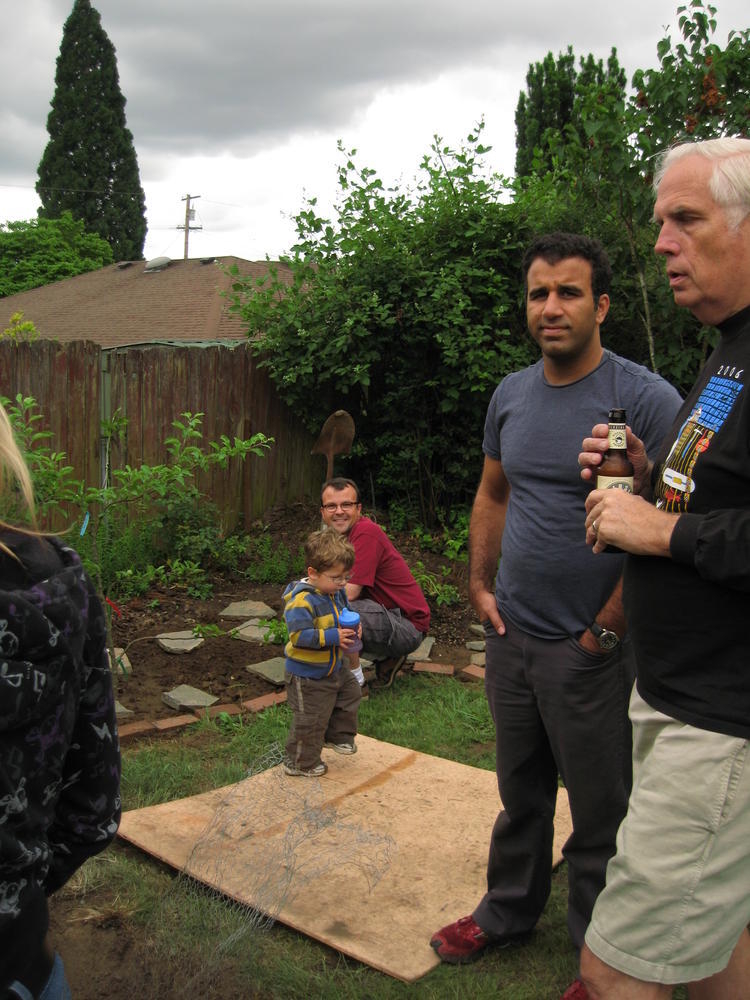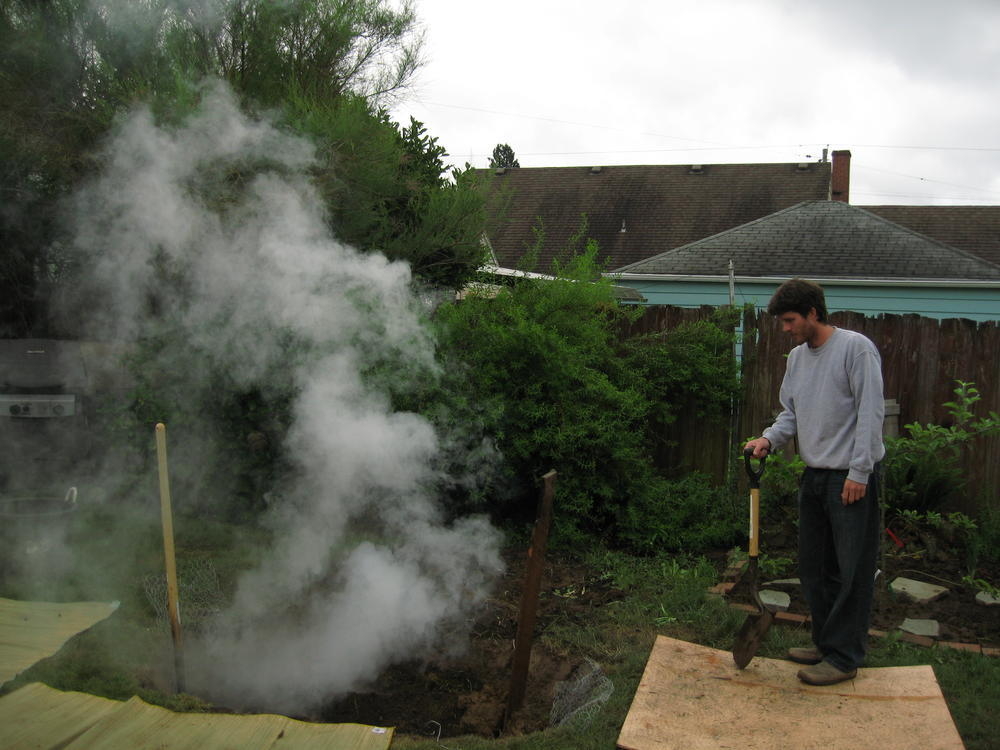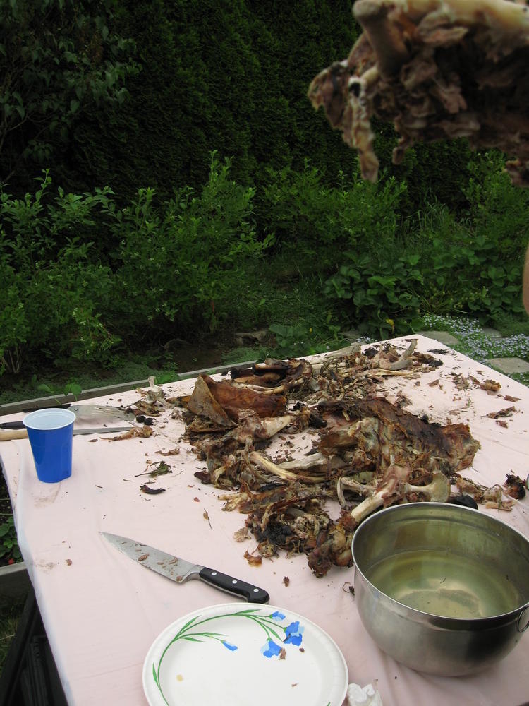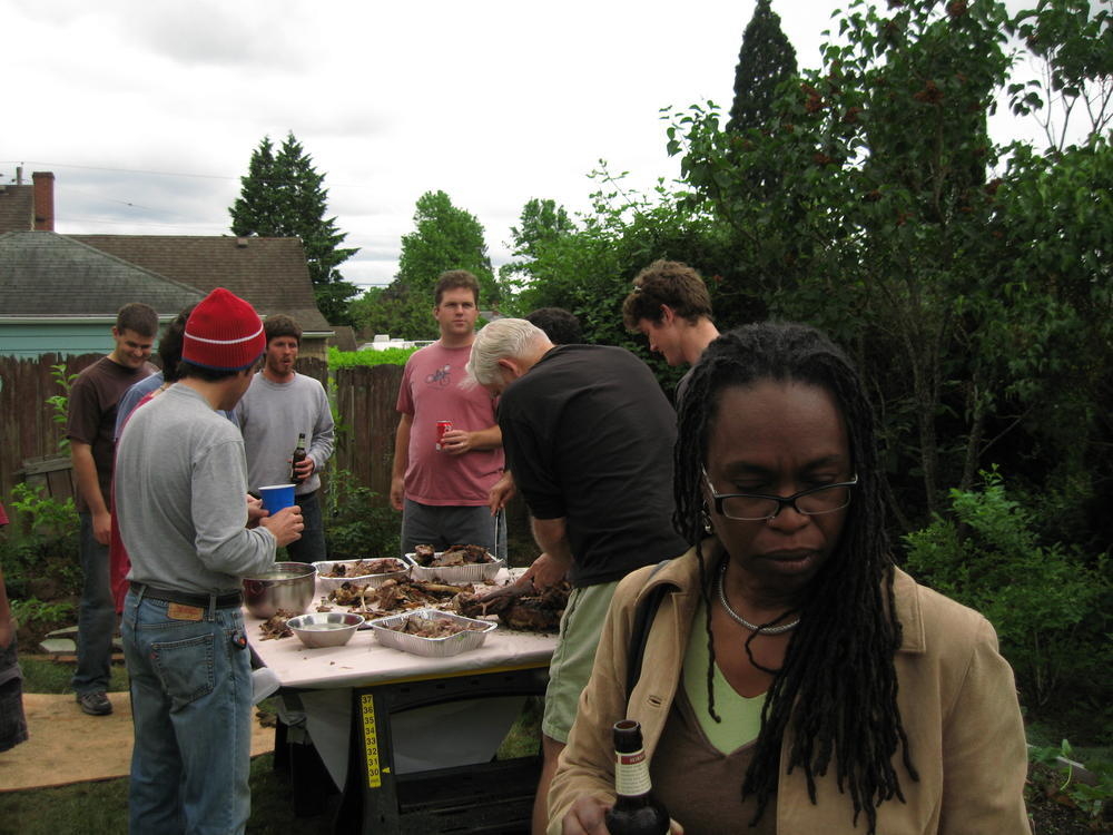 We had a lamb roast to celebrate Dan & Kate coming back home and to mourn Keevin & Sylvia going to the midwest for medical school. And to drink beer and eat lamb. My buddy John from Brown came up from SF and helped try and melt rock for roasting. I decided we could sleep in until 3am and then start the fire so the meat would be ready by 5. We had the beast in the ground at 9:30, and by 11 it was done. Next time we’ll have to get a later start or a larger beast.