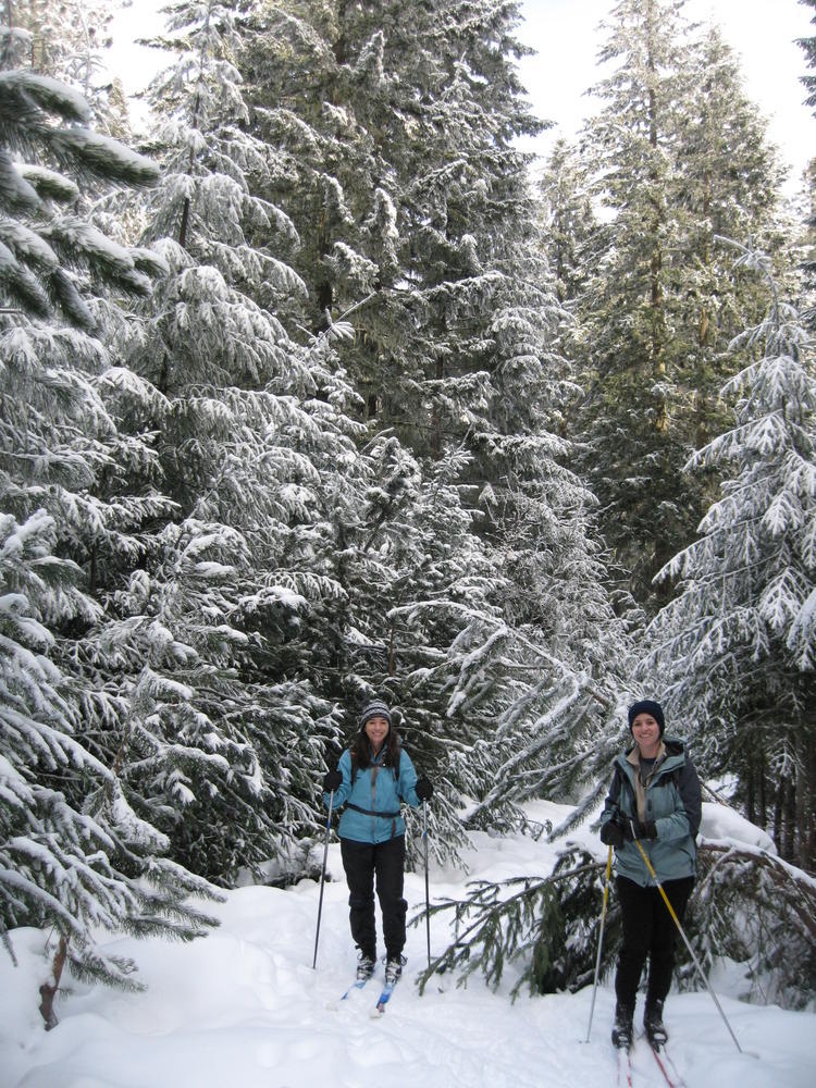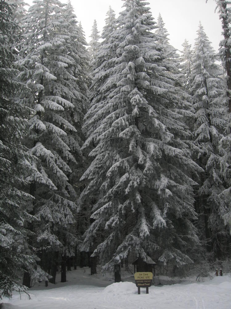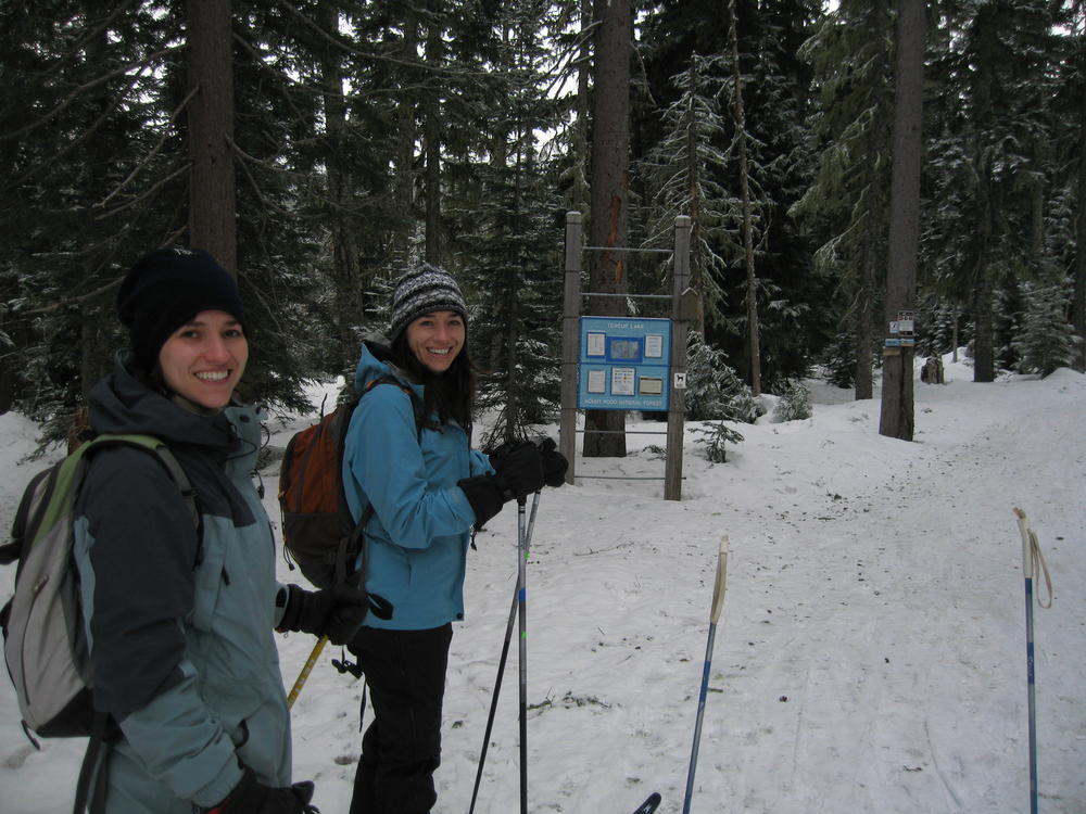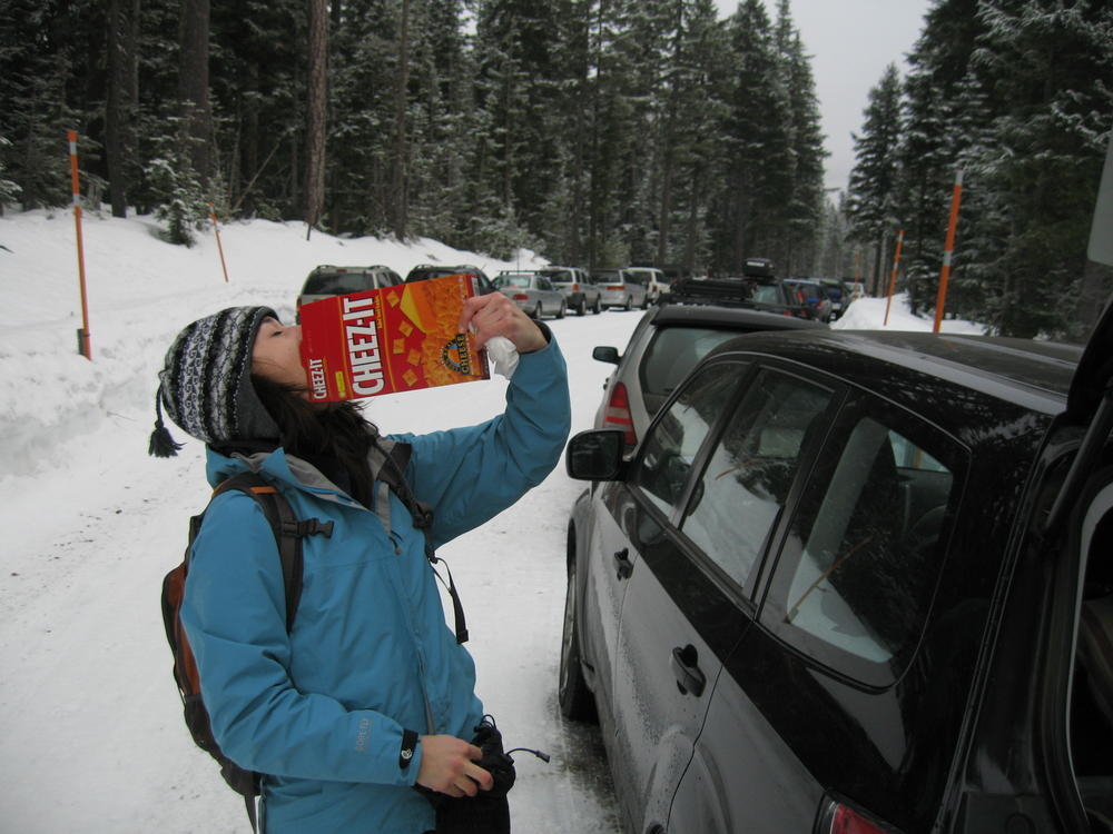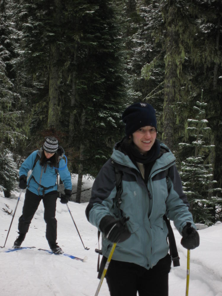 Sara’s Birthday was this weekend and I went out to Hood River to celebrate it with her and her sister MaryAnn. On Saturday we ate Cheezits and went cross country skiing at TeacCup Lake. We got lapped two times by one gal. But we had hot cocoa and sandwiches and she didn’t. On Sunday we went up North towards Mt. Adams and skiied in the sun up to some ice caves. It was very cool and it’d be nice to go back there with some crampons and a helmet. It was a cool weekend hanging out and learning which muscles you normally don’t use while skiing.