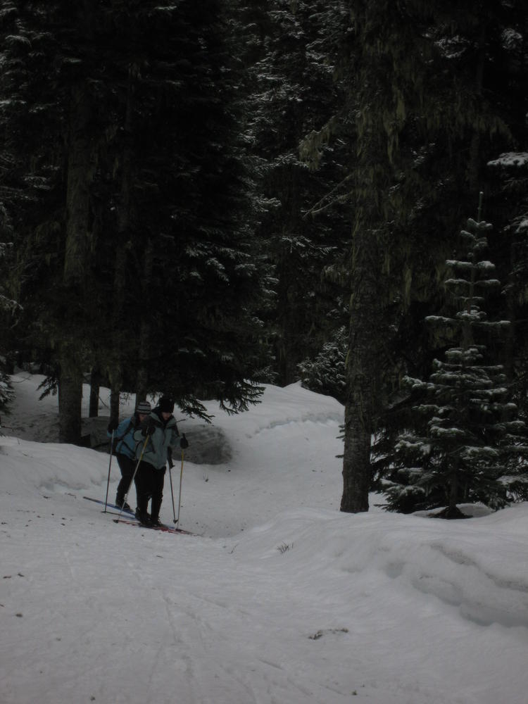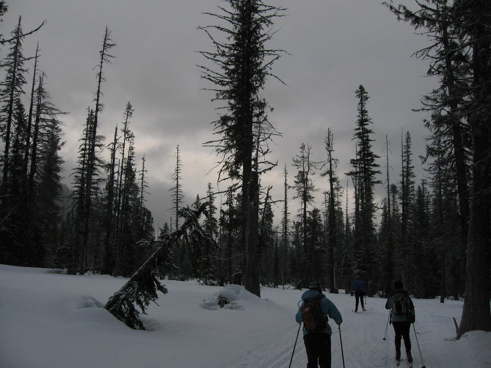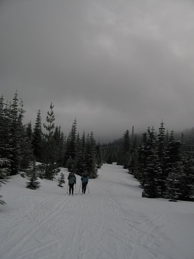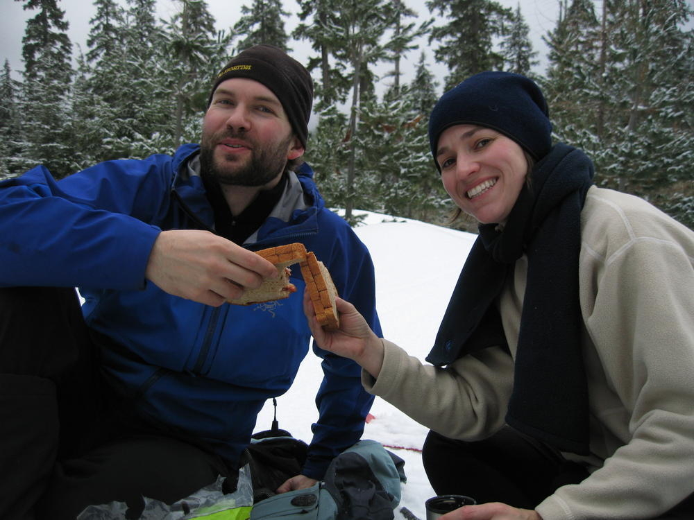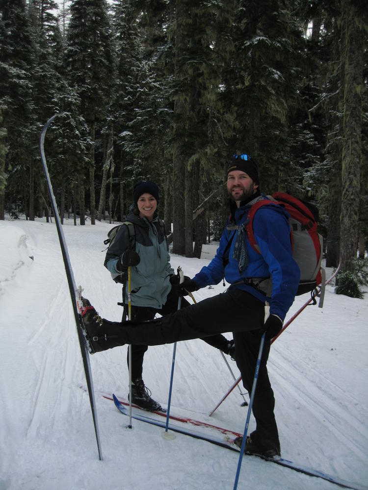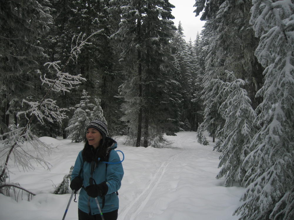 Sara’s Birthday was this weekend and I went out to Hood River to celebrate it with her and her sister MaryAnn. On Saturday we ate Cheezits and went cross country skiing at TeacCup Lake. We got lapped two times by one gal. But we had hot cocoa and sandwiches and she didn’t. On Sunday we went up North towards Mt. Adams and skiied in the sun up to some ice caves. It was very cool and it’d be nice to go back there with some crampons and a helmet. It was a cool weekend hanging out and learning which muscles you normally don’t use while skiing.