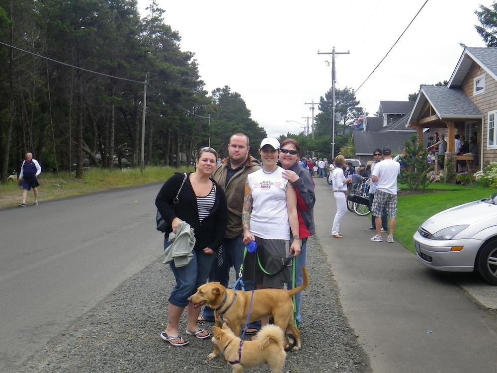 We went down to the beach for the annual F-15 flyby, though this year there was a low ceiling and no flyover. So we had to be content with the traditional parade where we get pelted with candy. Simone wanted to be in the parade, she even had a special dress for the occasion. She didn’t forsee the repercussions of us getting very little candy when she wasn’t standing by us. We did stood by other traditions and layzed around, grilled meat and took pictures of Simone. Ingrid’s mom, two brothers and girlfriend (she’s Tom’s girlfriend, not both of theirs girlfriend - that’d be weird) came down and hung out as well. I rode the Triumph down as it was supposed to be nice out, instead I had my first experience riding in the rain.