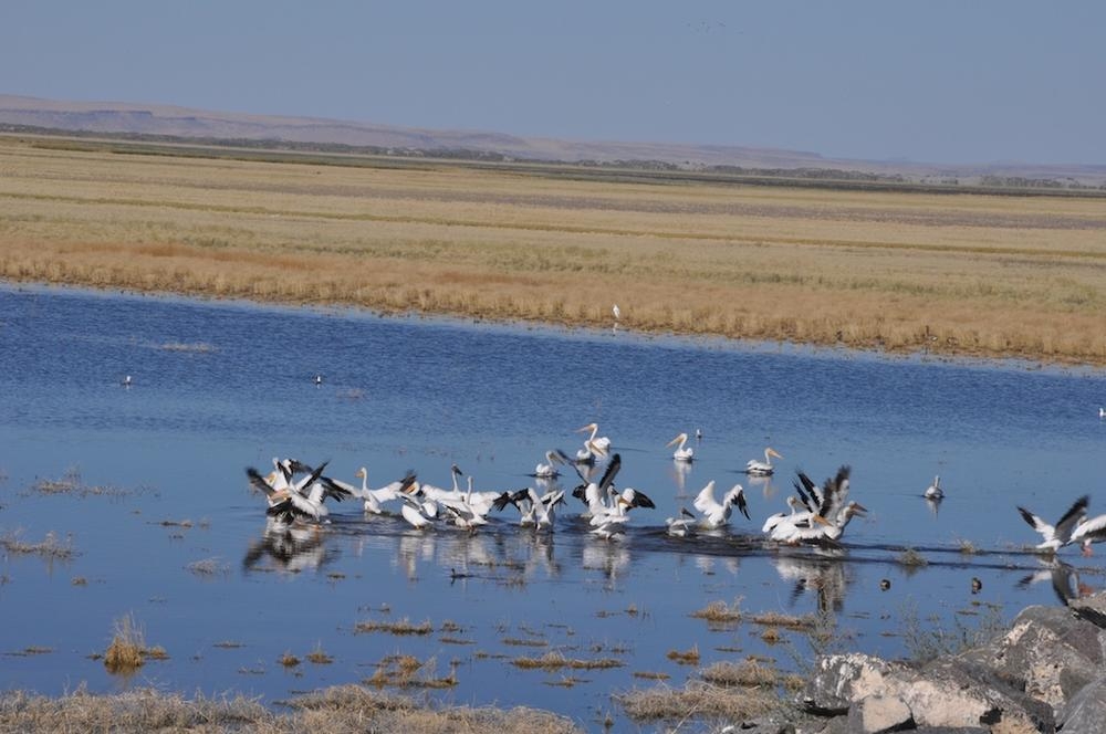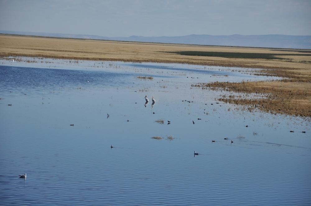 On the way to the Steens I stopped at two small ponds to look at some birds hanging out. This pond turned out to be Malheur Lake and Mud Lake, much smaller this time of year. After harrassing the birds with my camera I saw on the map there was a back road that goes through the middle of the refuge and took it.