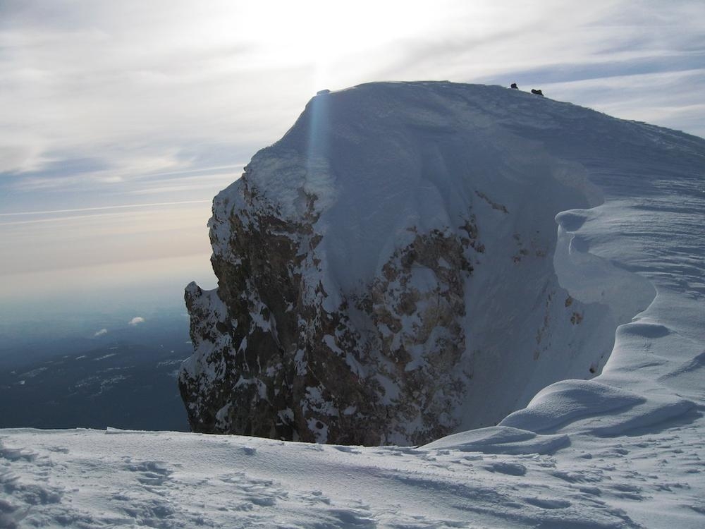 The downclimb through the chute was a little funky as the snow was highly variable, ranging from crappy snow with spindrift on top, to icy chunks held together with light snow. We took our sweet ass time making back to Hogsback where we downed a liter of water and found out my sandwiches don’t taste or look good above sea level. From there we hoofed it down to Timberline being passed by damn skiers.