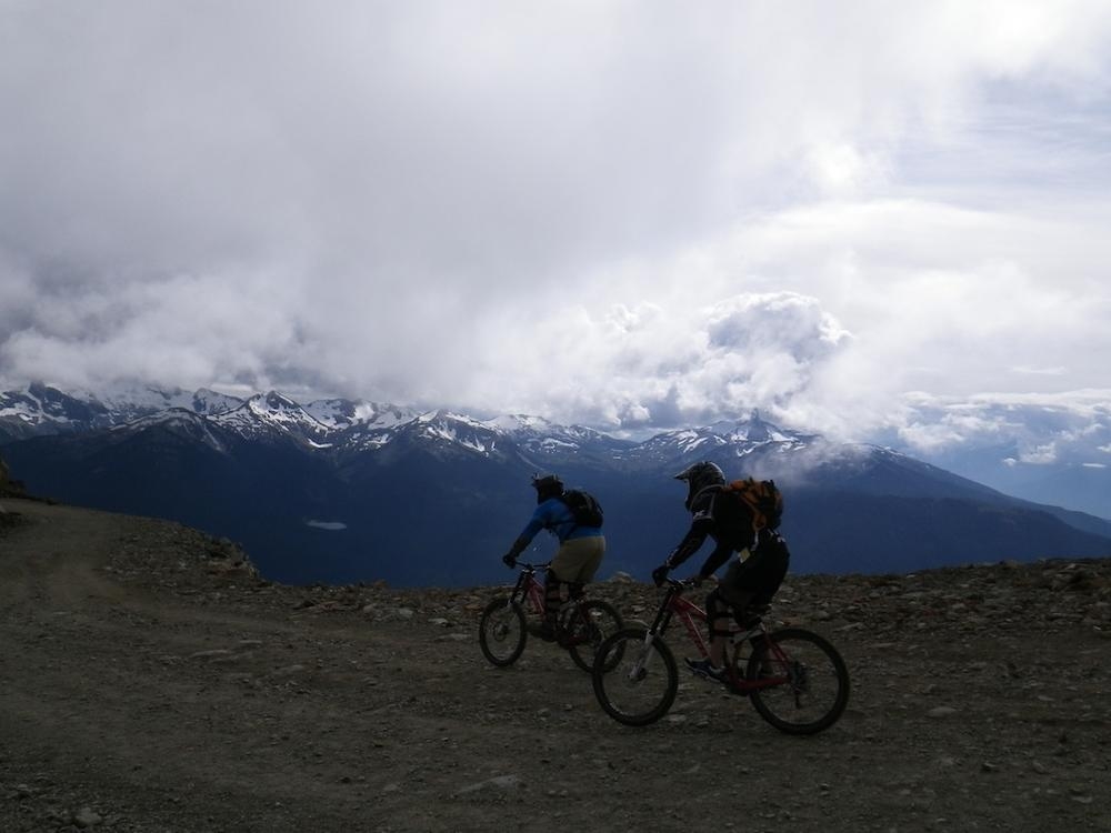 We picked up my 30 pound beast and got another guide to help my sorry ass down the hill. It took a few runs to re-educate my turning technique (apparently was 100% wrong.) After lunch we took the gondola up to the top of the mountain for a 5000’ descent. The views were awesome and the ride down was cool, a third was fast road and the rest was pretty technical singletrack. We hit a trail that had a banked turn made out of wood, where real men take the low scary line. The riding got better as the day went on for sure.