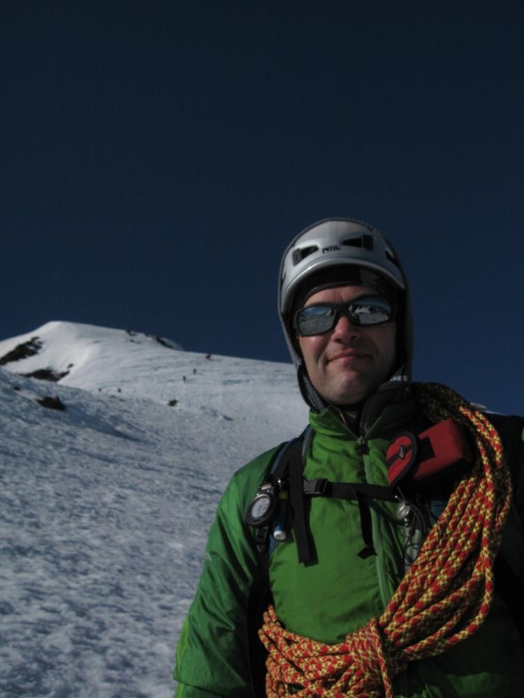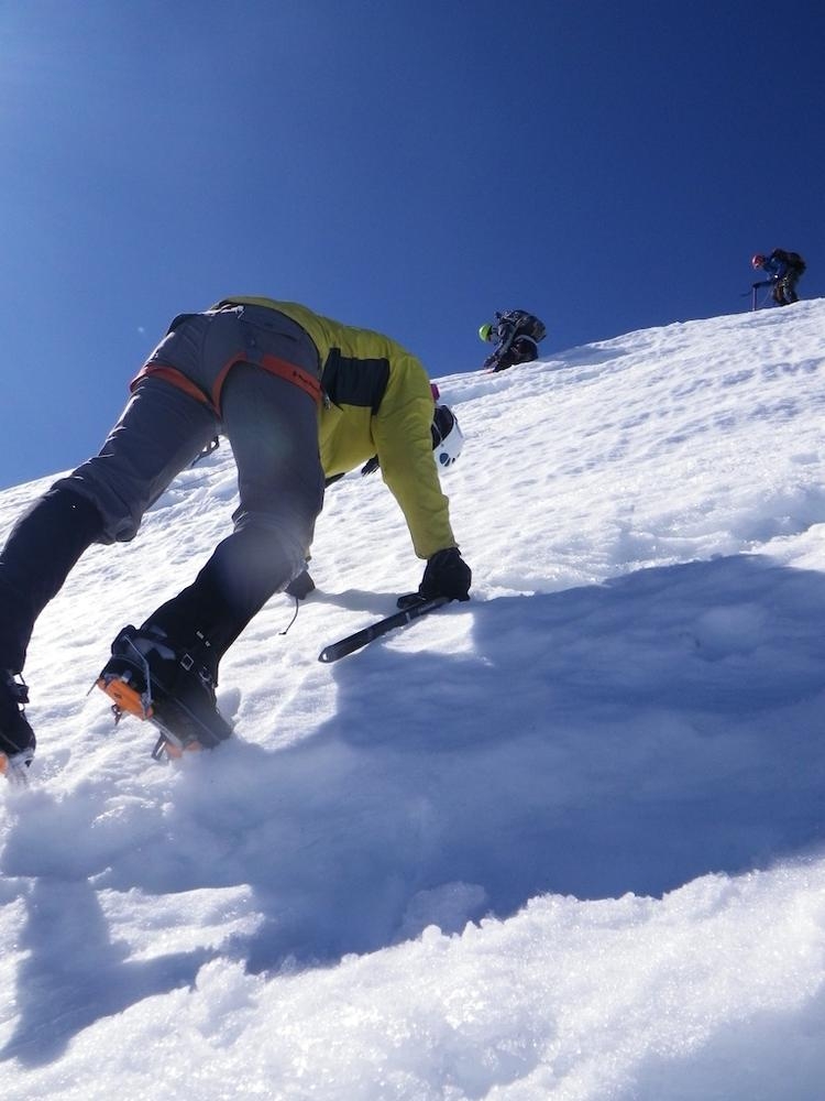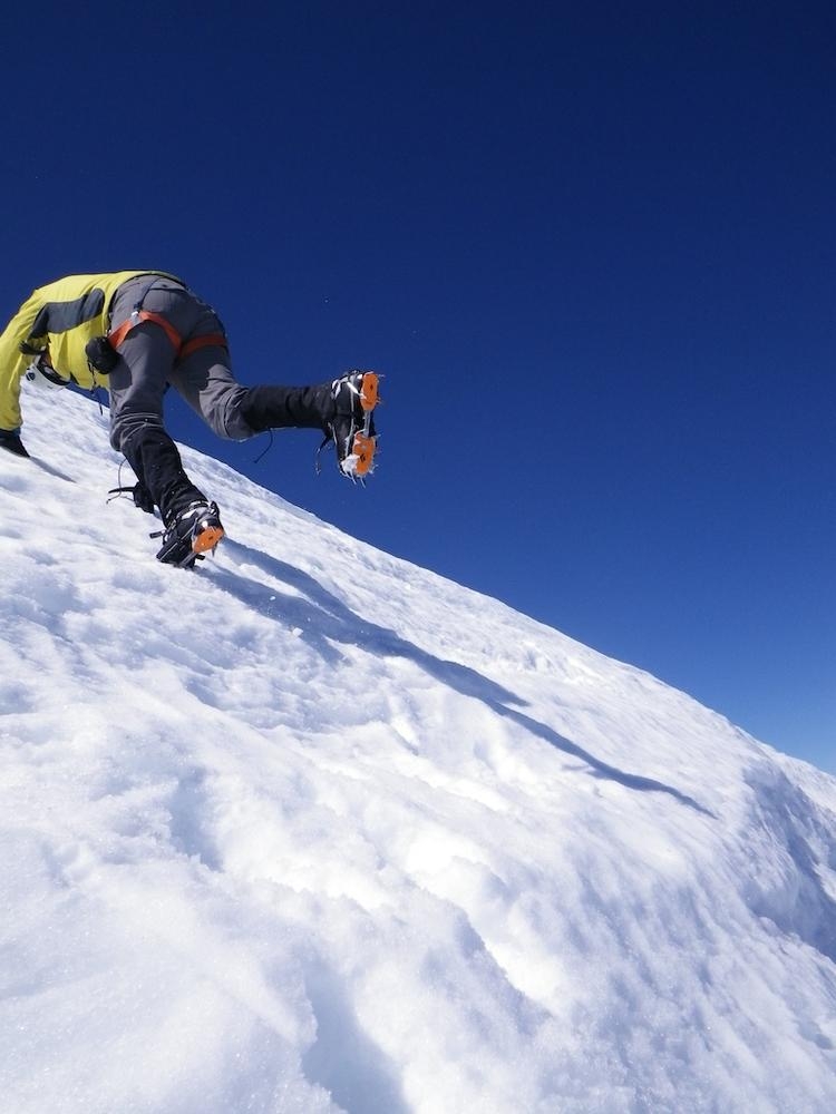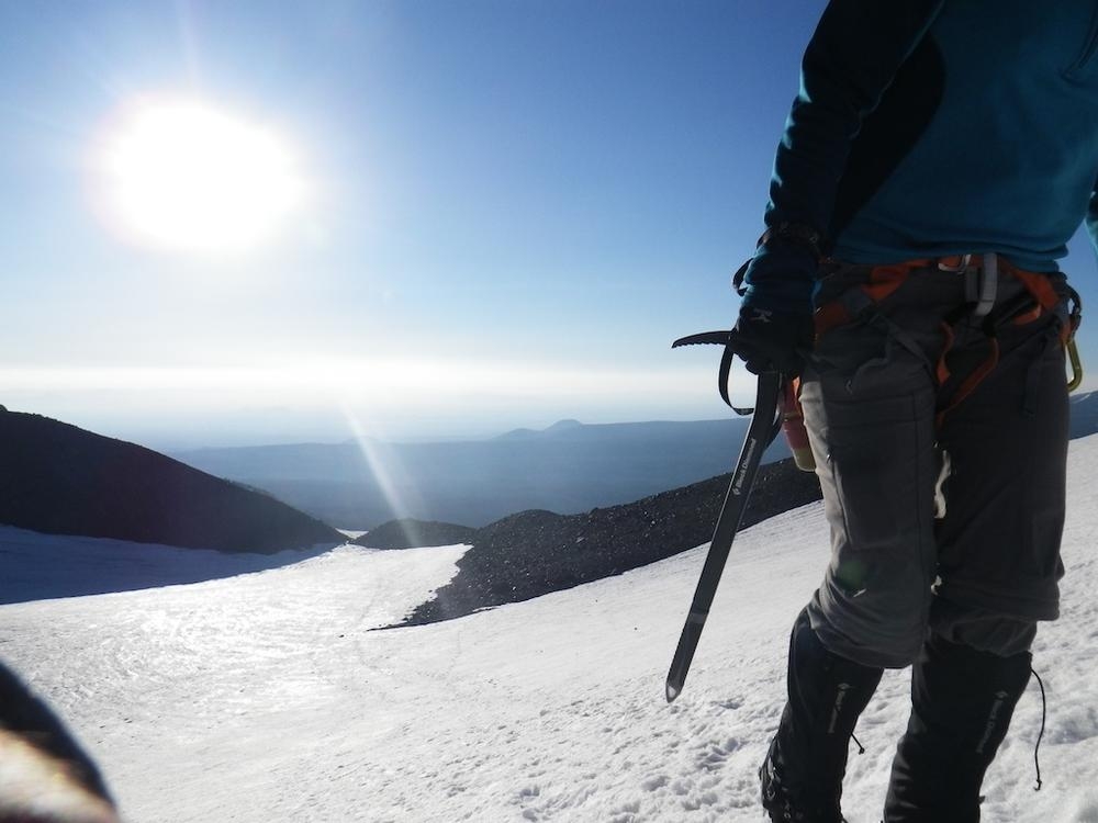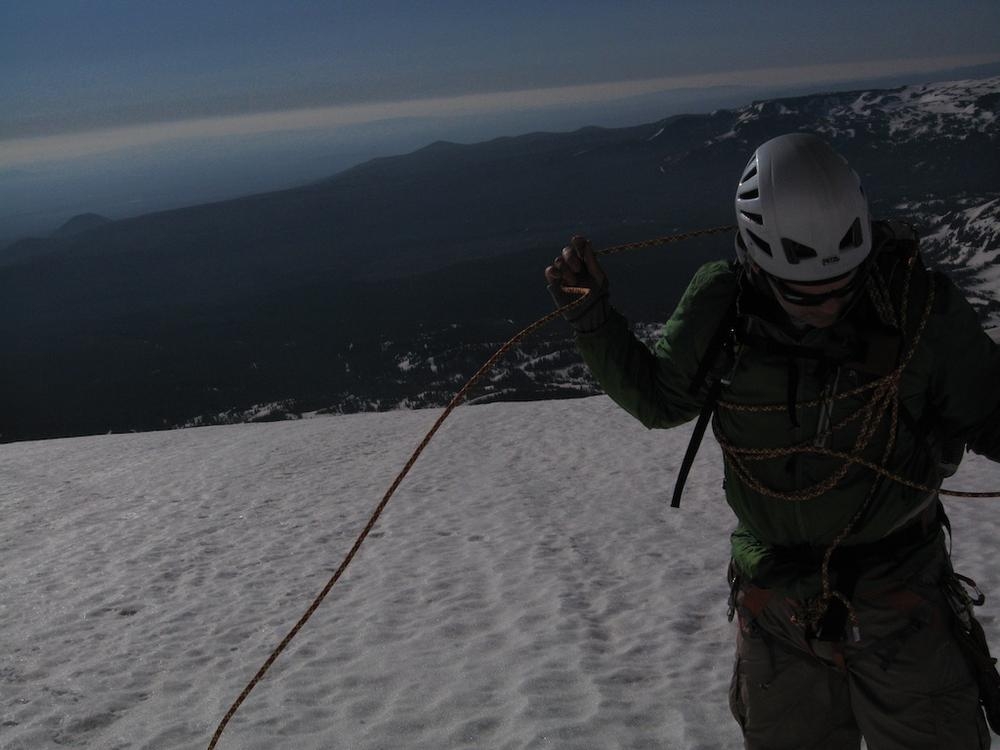 The majority of the climb is glacier trudging with great views. We discussed EPO and blood doping as a way to make it more enjoyable but decided the costs and ethical implications outweighed the benefits. We had our harnesses and I broke out the glacier rope in case we wanted to belay any sections of the steep stuff. That and I think the rope looks cool.