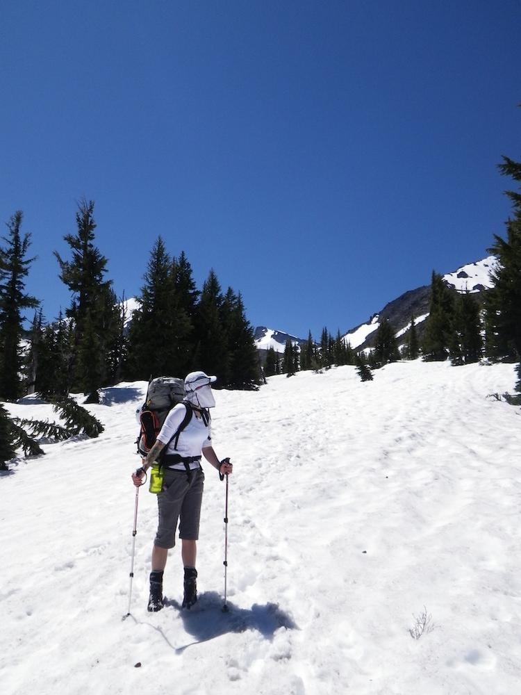 Ingrid took a nap while I made more water for the trek out. I tried to sleep but it was too hot in the tent for me so I ate more chocolate. After packing everything back into the packs we headed out and got down as quickly as possible, the Cheezits were waiting down at the car.