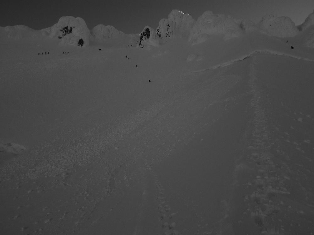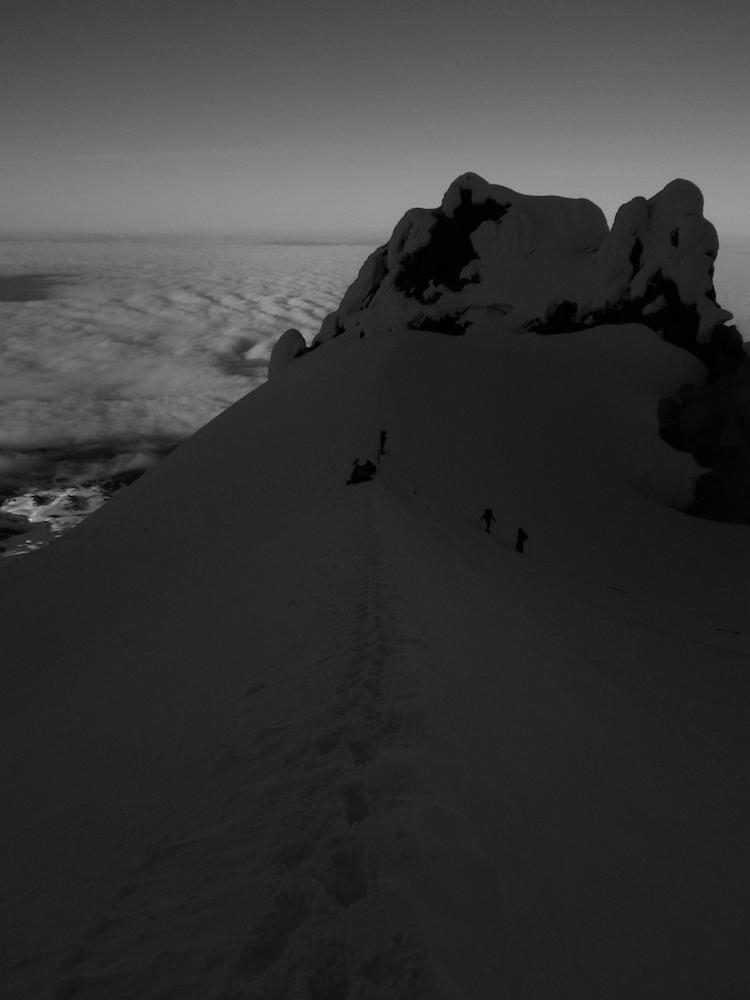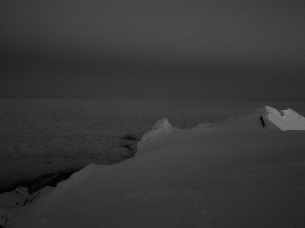 It is also amazing to me that you spend an hour of driving, three hours of packing and repacking, six hours of climbing and months of training for a payoff that could be measured in minutes. The amount of time spent on the summit is very short, once you are on top it is necessary to get back down to safety from the crowds and the sunshine. The moments of perfect light and views could be described as fleeting, and measured in breaths. They are made more special by knowing you have earned it, you’re not just driving to the end of the block and having a look around, you spend much time and energy and sometimes are rewarded with grandeur.