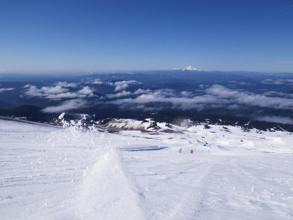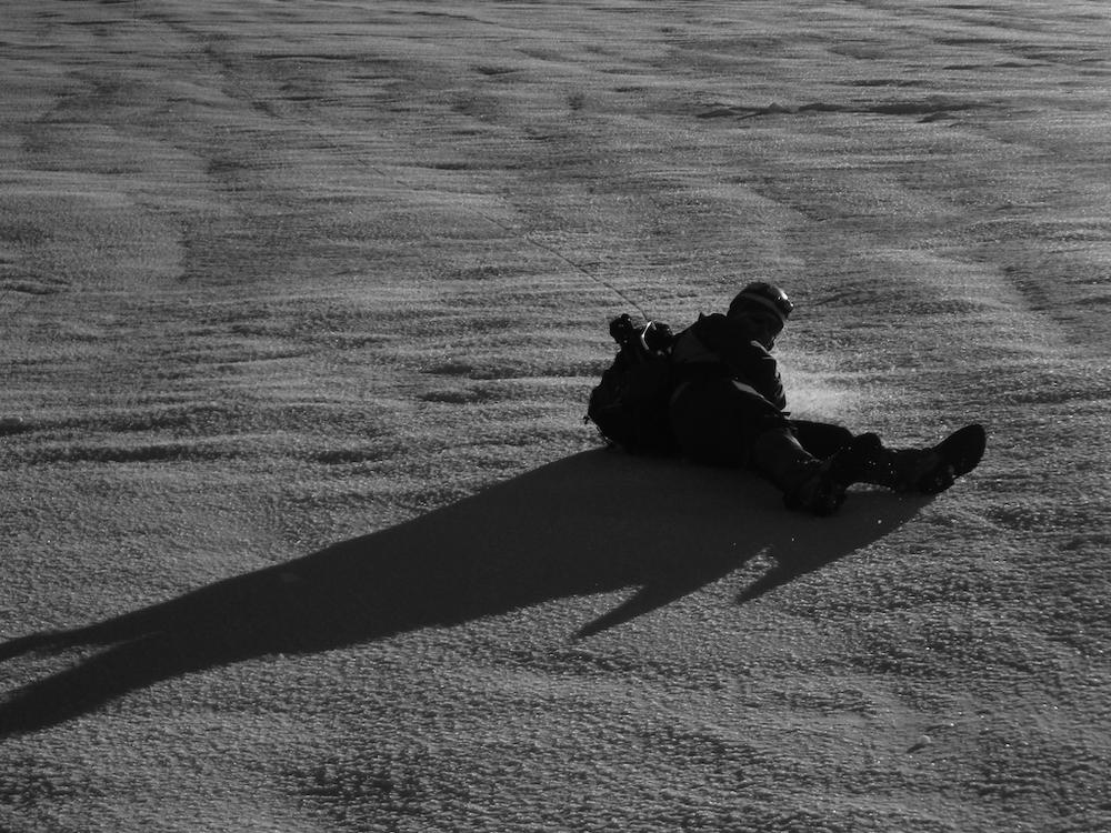 We made great time back to the Hogsback and rested a bit with more water and food, if you can call Gu food. After a bit of a rest we took off some gear and headed down the slope. Once it wasn’t scary steep we busted out out rain pants and started the free (and sometimes painful) ride down. The snow was still super firm and we could get good speed all the way down. I tried using the little plastic sleds Dan and I used on Adams, but the snow was too hard and it was scary fast. We slid down pretty much the whole way from 9500’ down to the flat area just above the parking lot. We all made it back to the car safe and sound. Trey and I drove to the Waffle Window and devoured a few waffles before falling asleep at home.