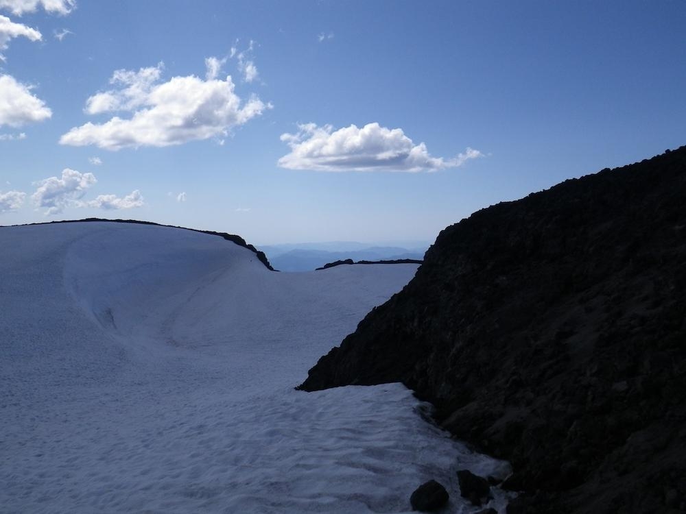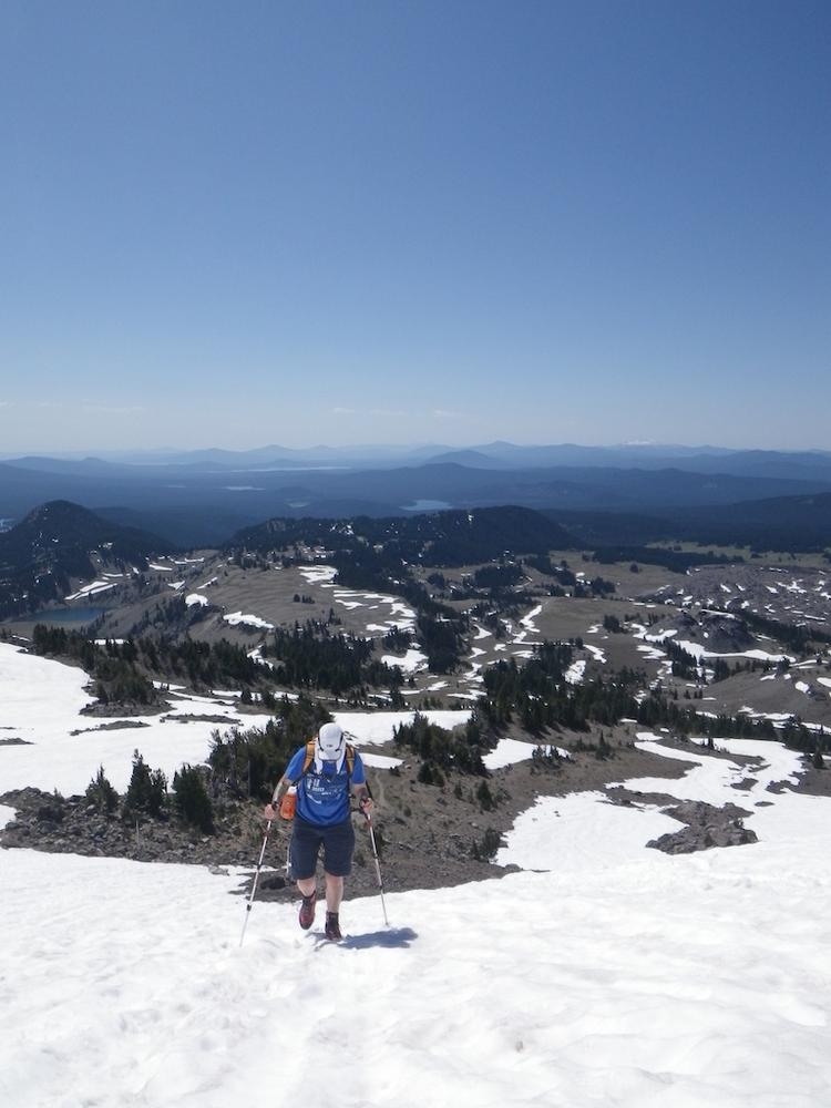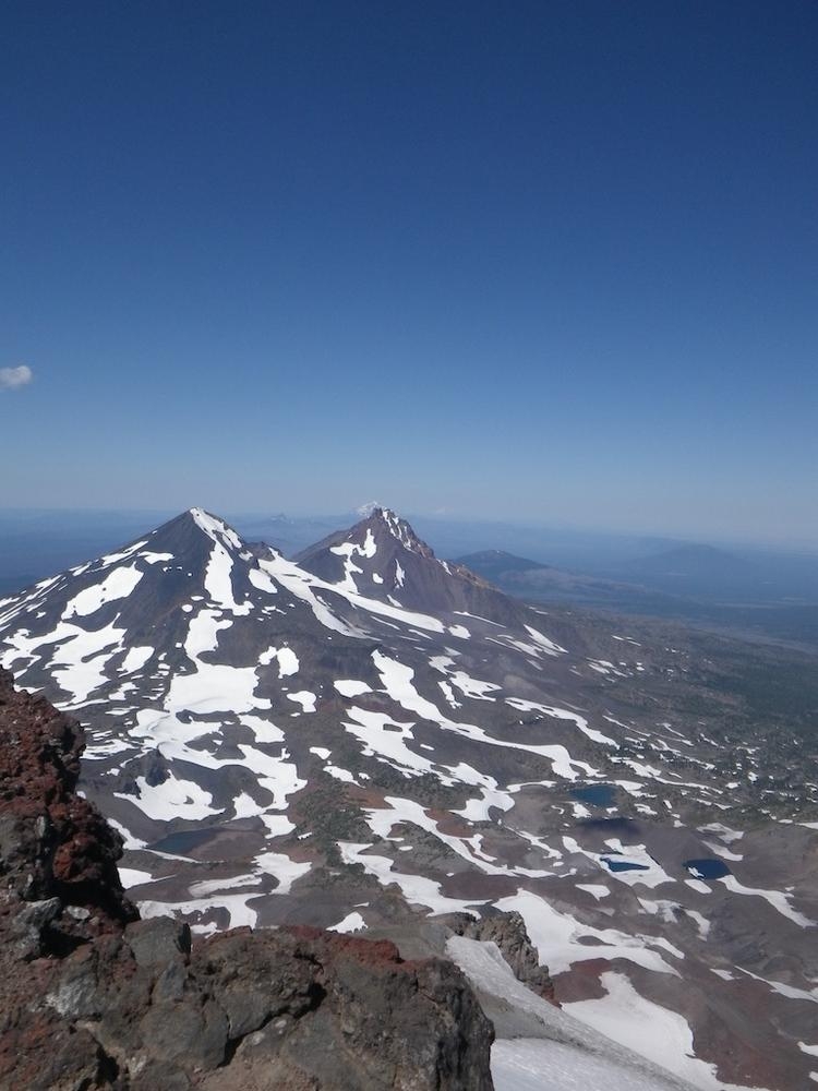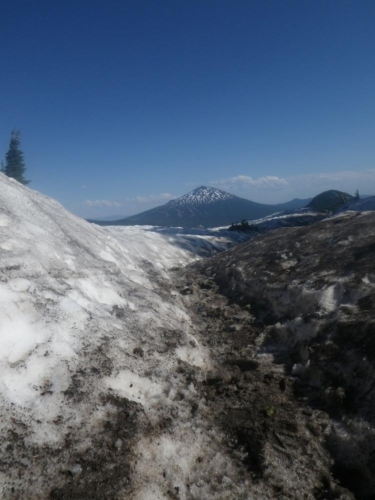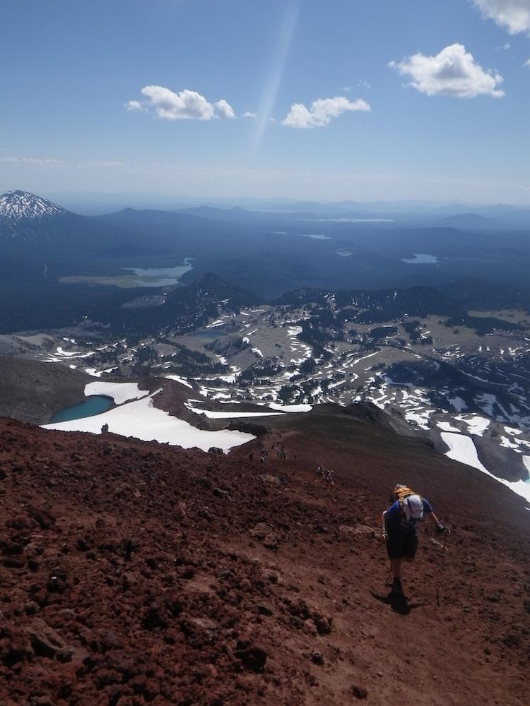 Ingrid and I went over to Bend for the weekend to get up South Sister. We got a mellow alpine start, meaning getting to the trailhead at 9:30 along with a hundred other people. I was surprised by the utter lack of snow on the South side. Pictures from a few weeks ago showed snow all the way up, but now there was a faint line of the trail all the way to the summit.