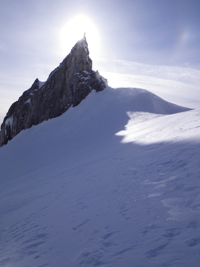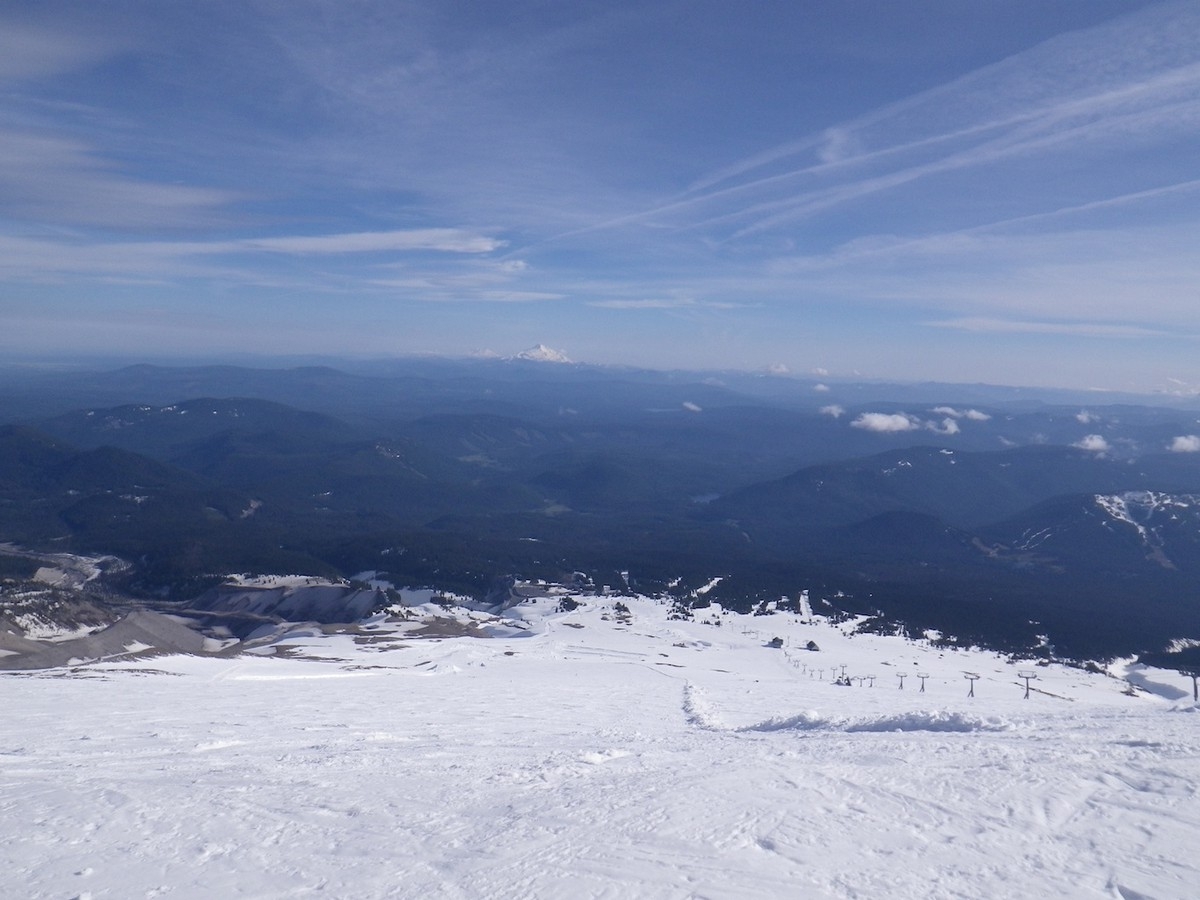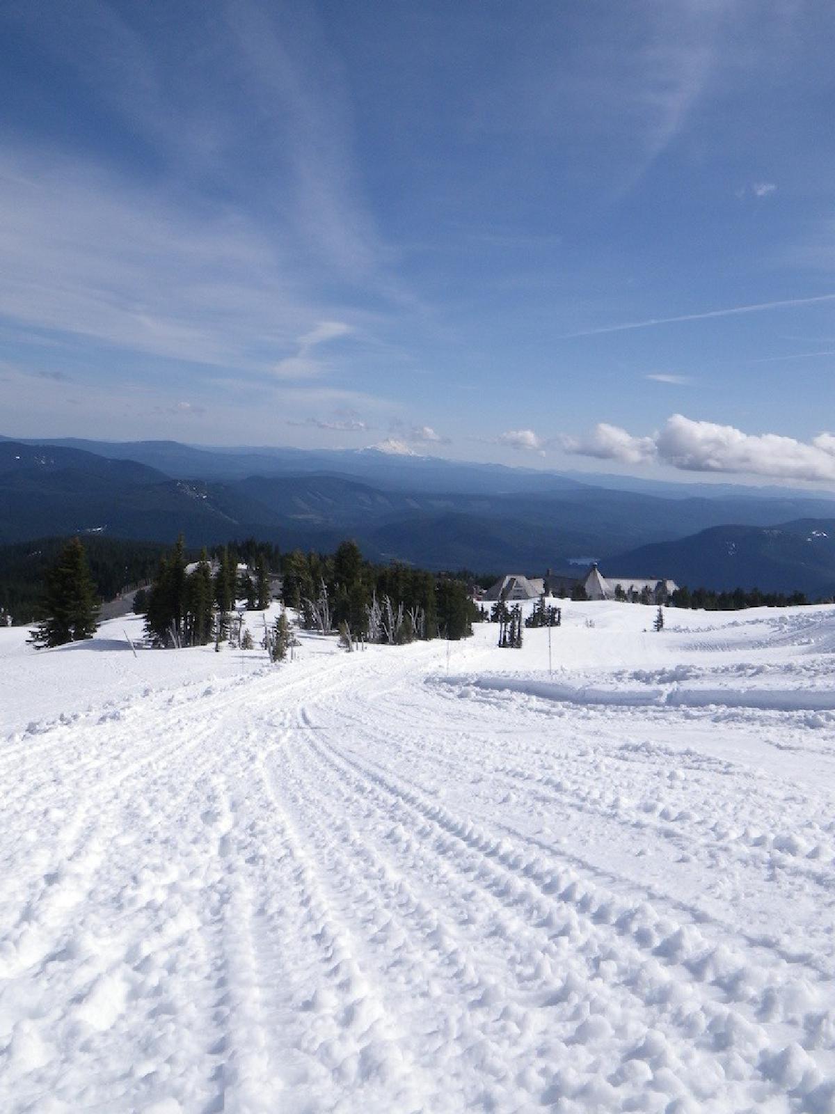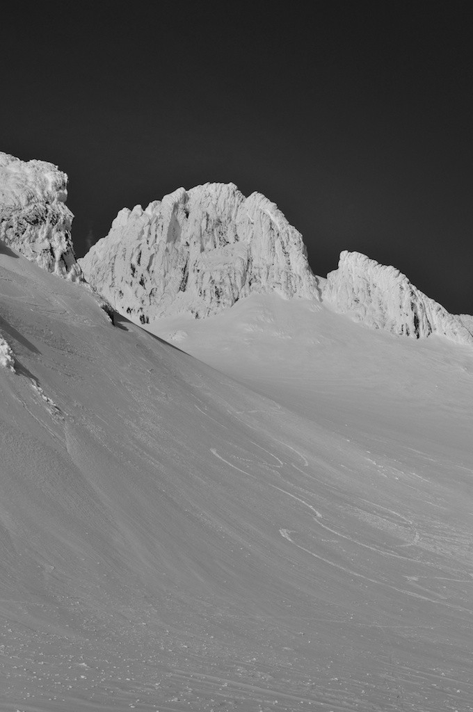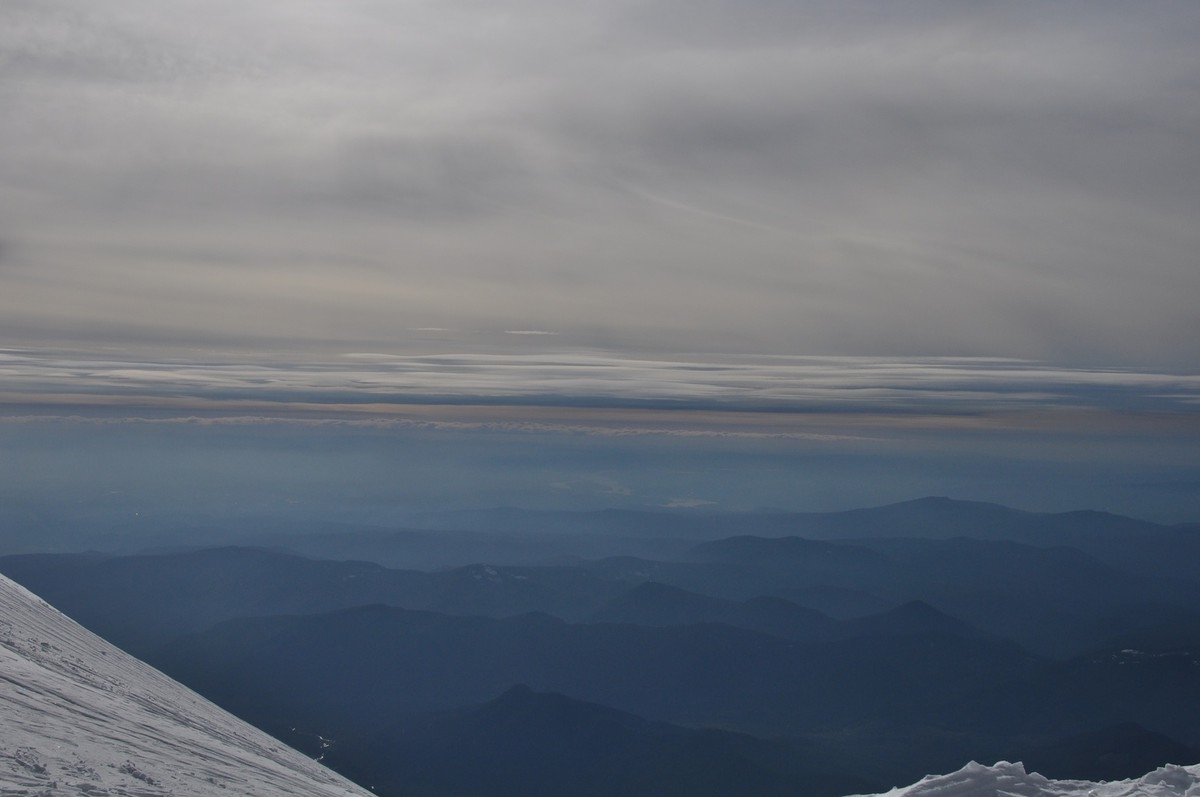 I woke up early in order to get back to town for work, only to see a near white out. Maybe a slight exaggeration, but I was unable to see down the mountain with visibility at around 20 feet. I took out my map and compass, realizing I should take a navigation course. Luckily the tracks from the previous day were still usable and I followed them down to the top of the Palmer where it was visible again.