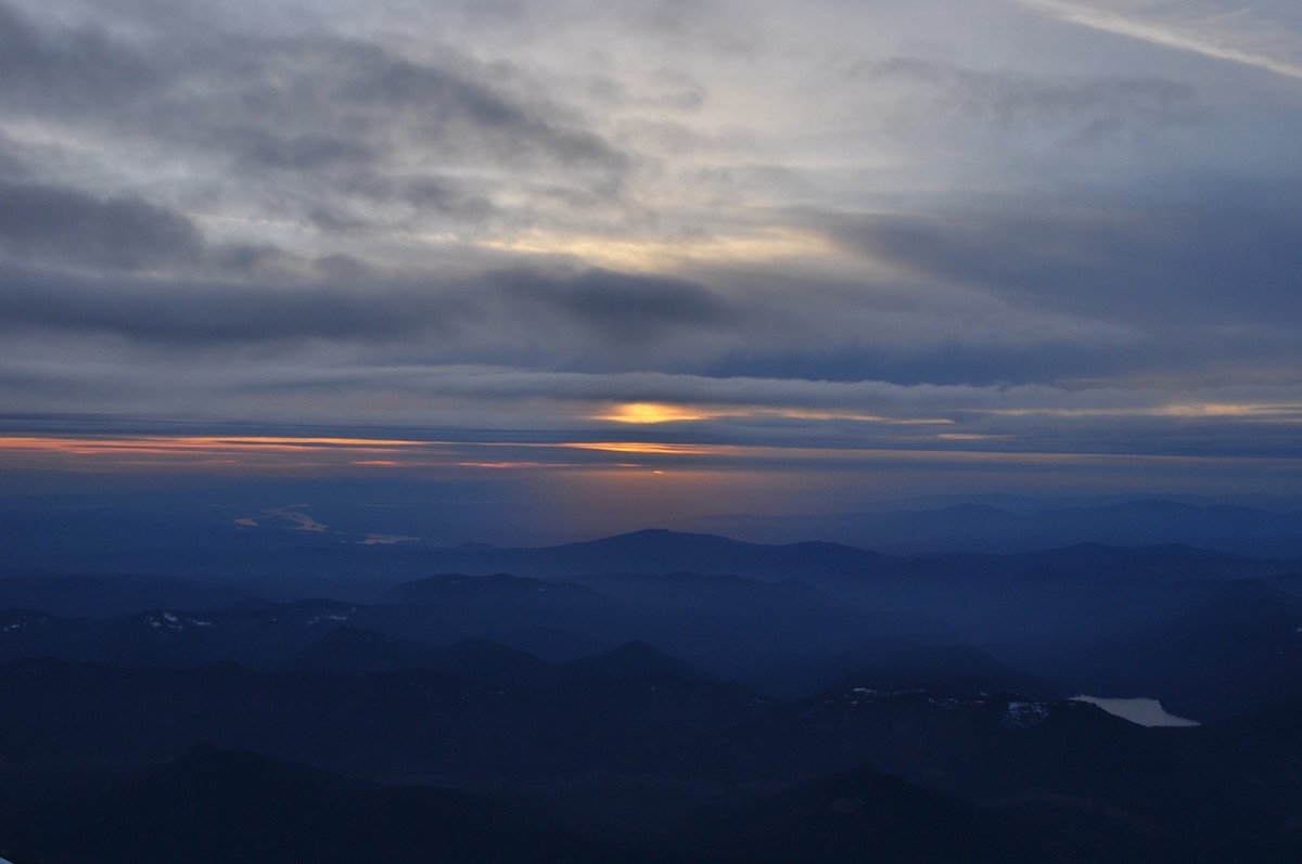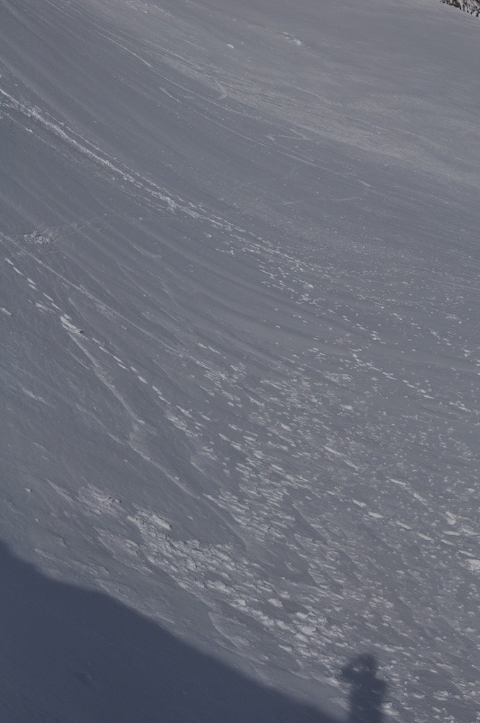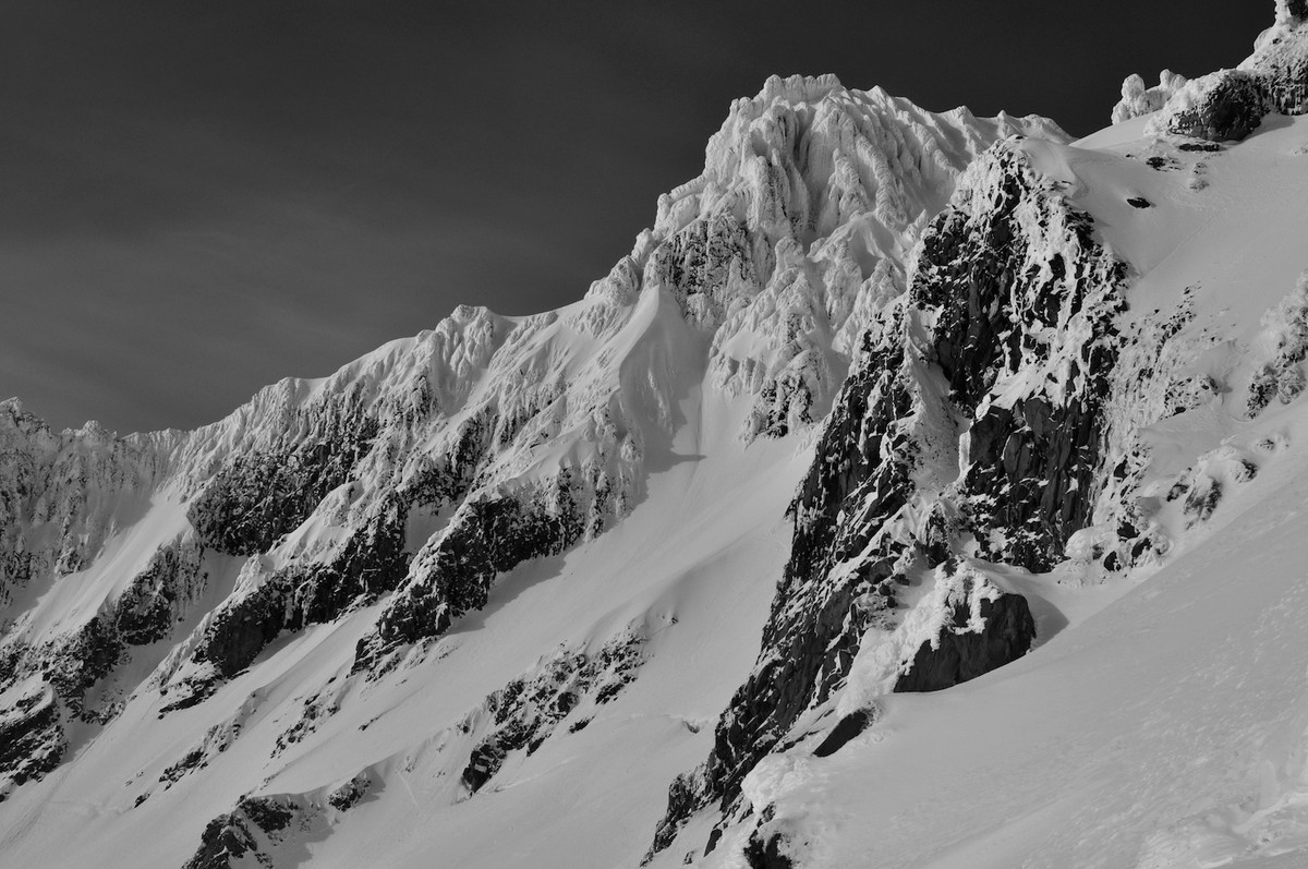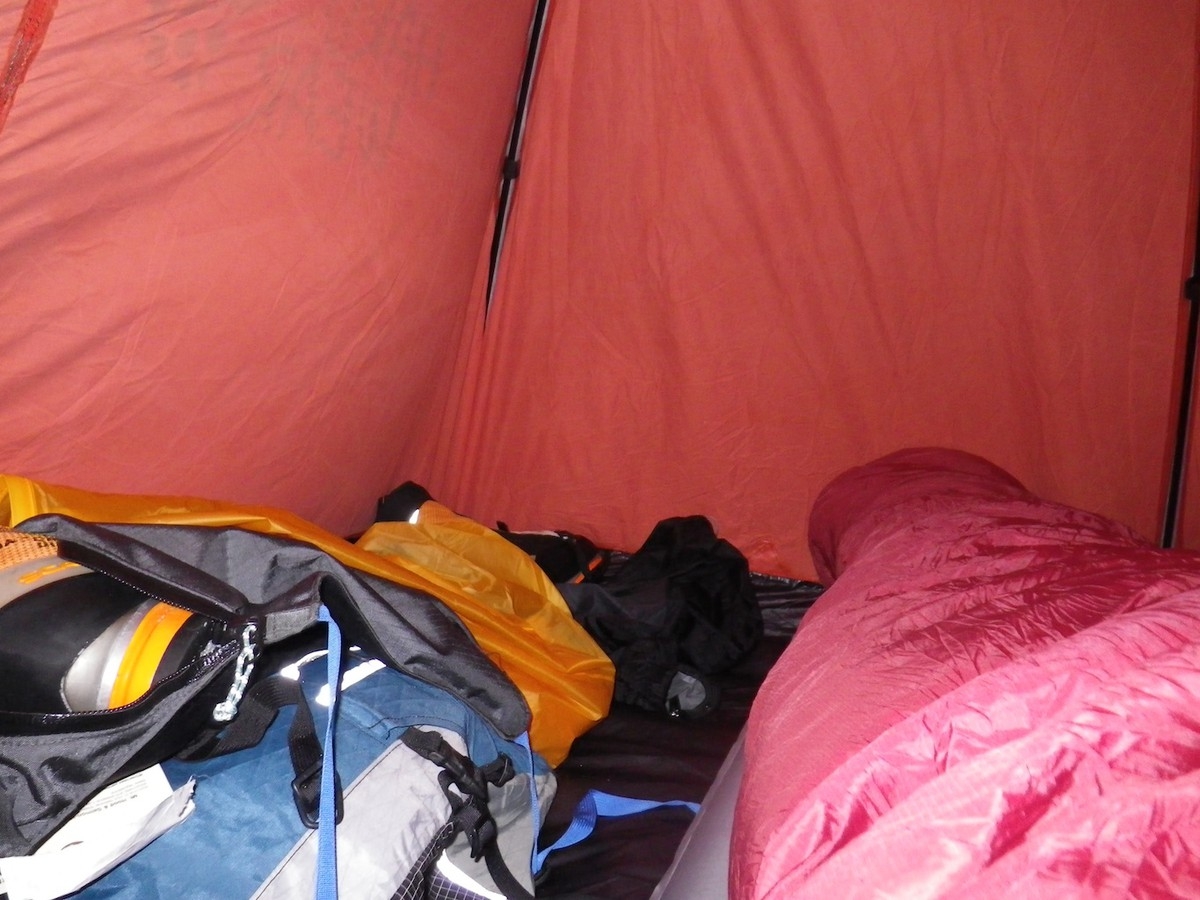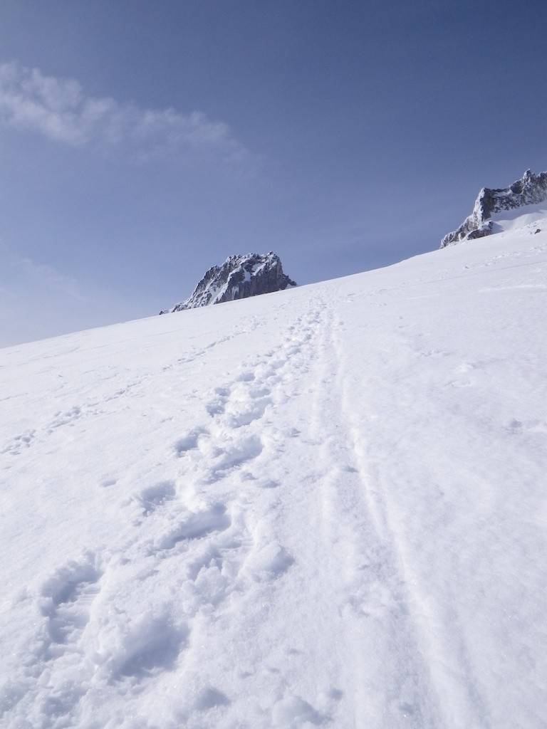 I woke up early in order to get back to town for work, only to see a near white out. Maybe a slight exaggeration, but I was unable to see down the mountain with visibility at around 20 feet. I took out my map and compass, realizing I should take a navigation course. Luckily the tracks from the previous day were still usable and I followed them down to the top of the Palmer where it was visible again.