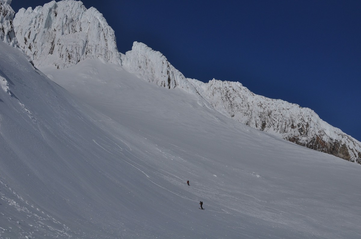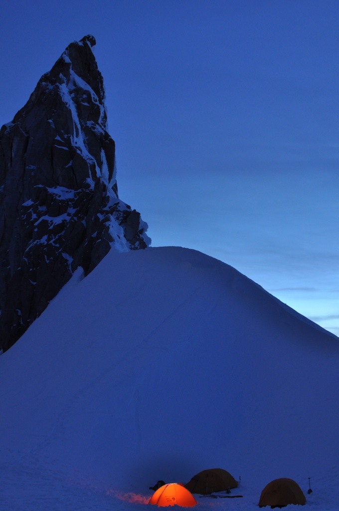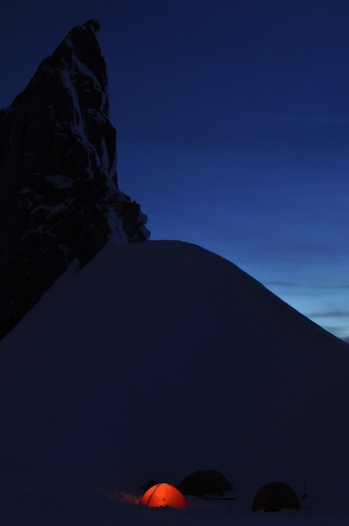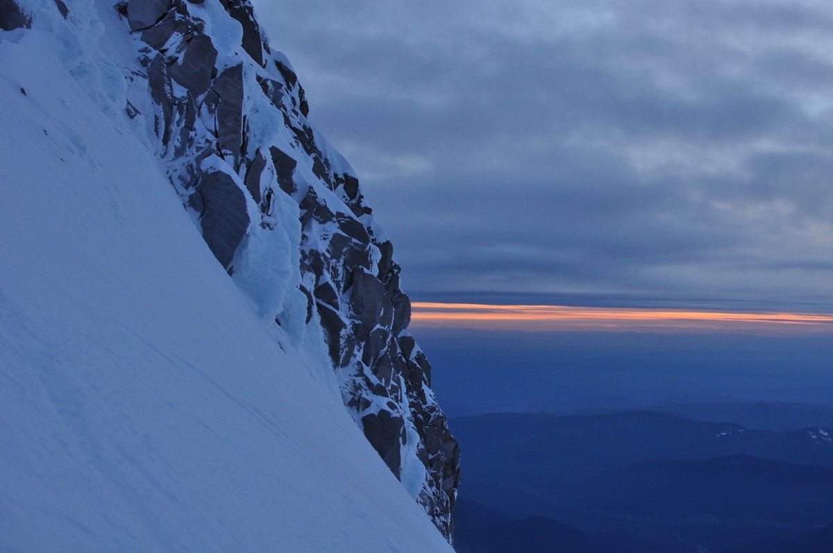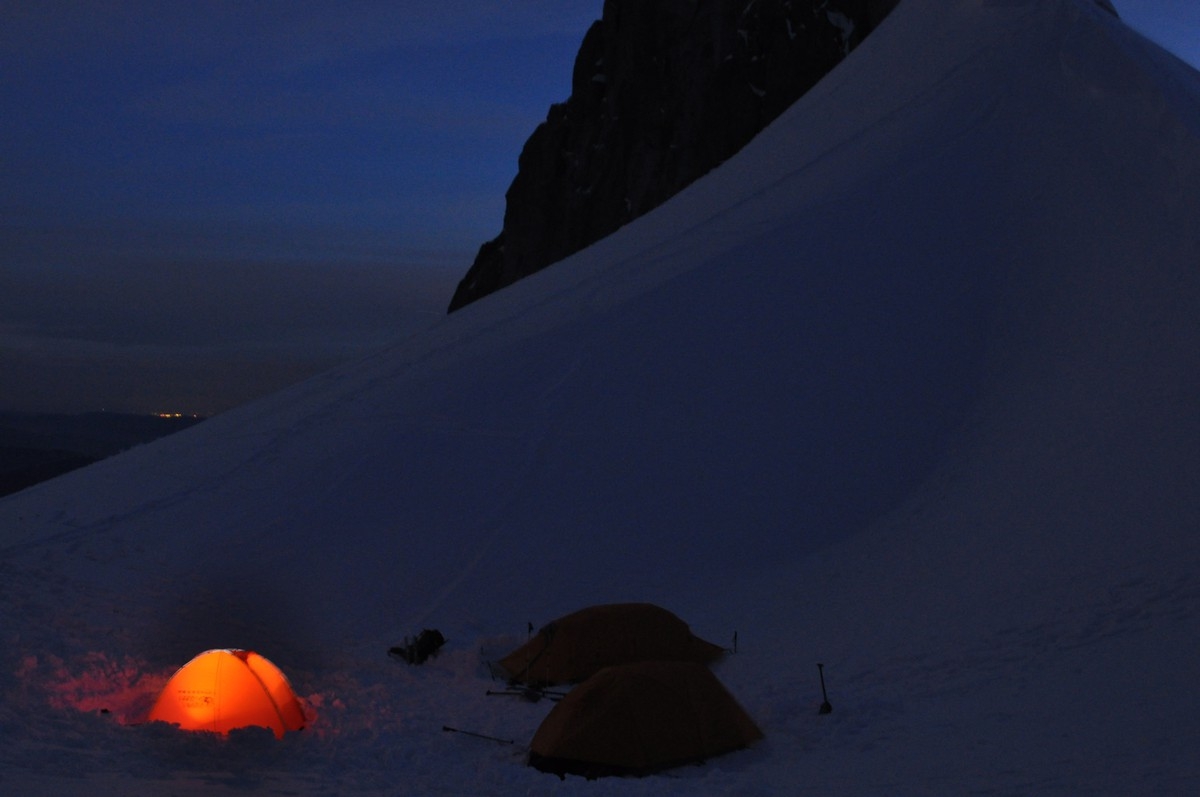 I left work early to hike up to Illumination Rock and get in some photos and camping. I lucked out with great weather and views. A few guides were already there with a group, practicing for a summit bid. A pair of skiers came through camp and played around on the saddle, lending themselves to more good photos. I opted out of night shots as it wasn’t getting dark until late and I thought it wise to get sleep instead.