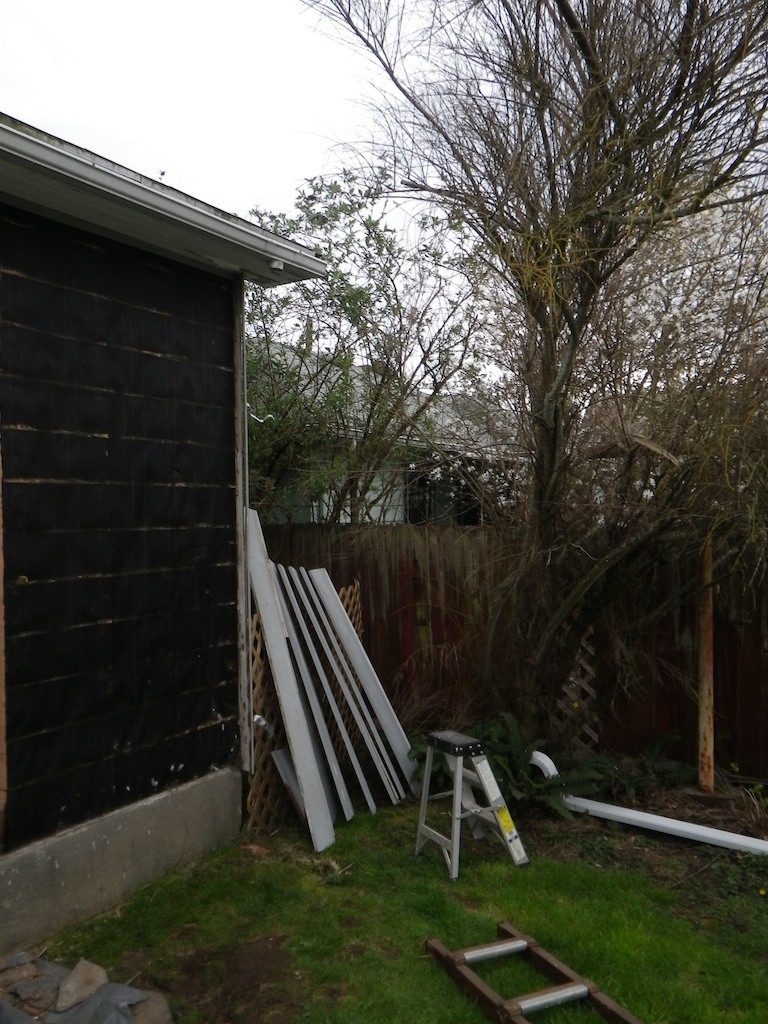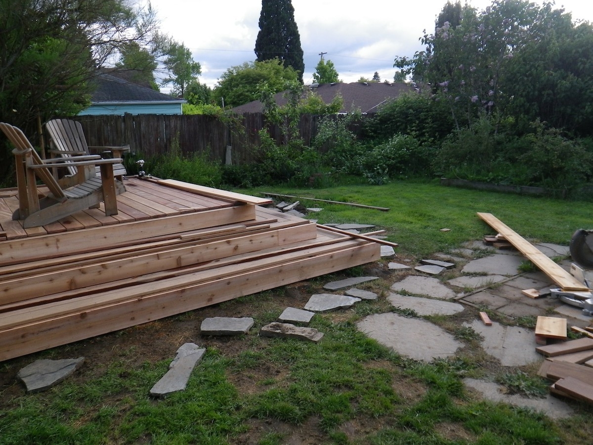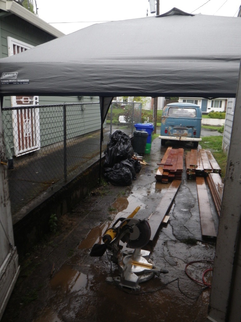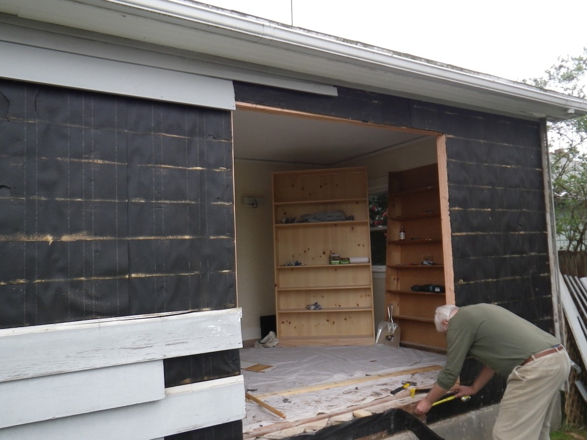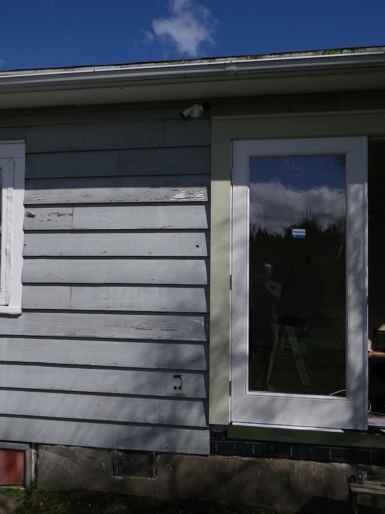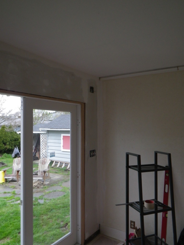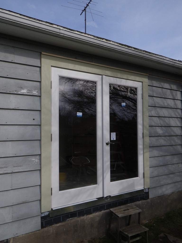 We put in french doors in the other room and then I put up a deck so we wouldn’t fall to the ground. The pooches got a new dog ramp too.