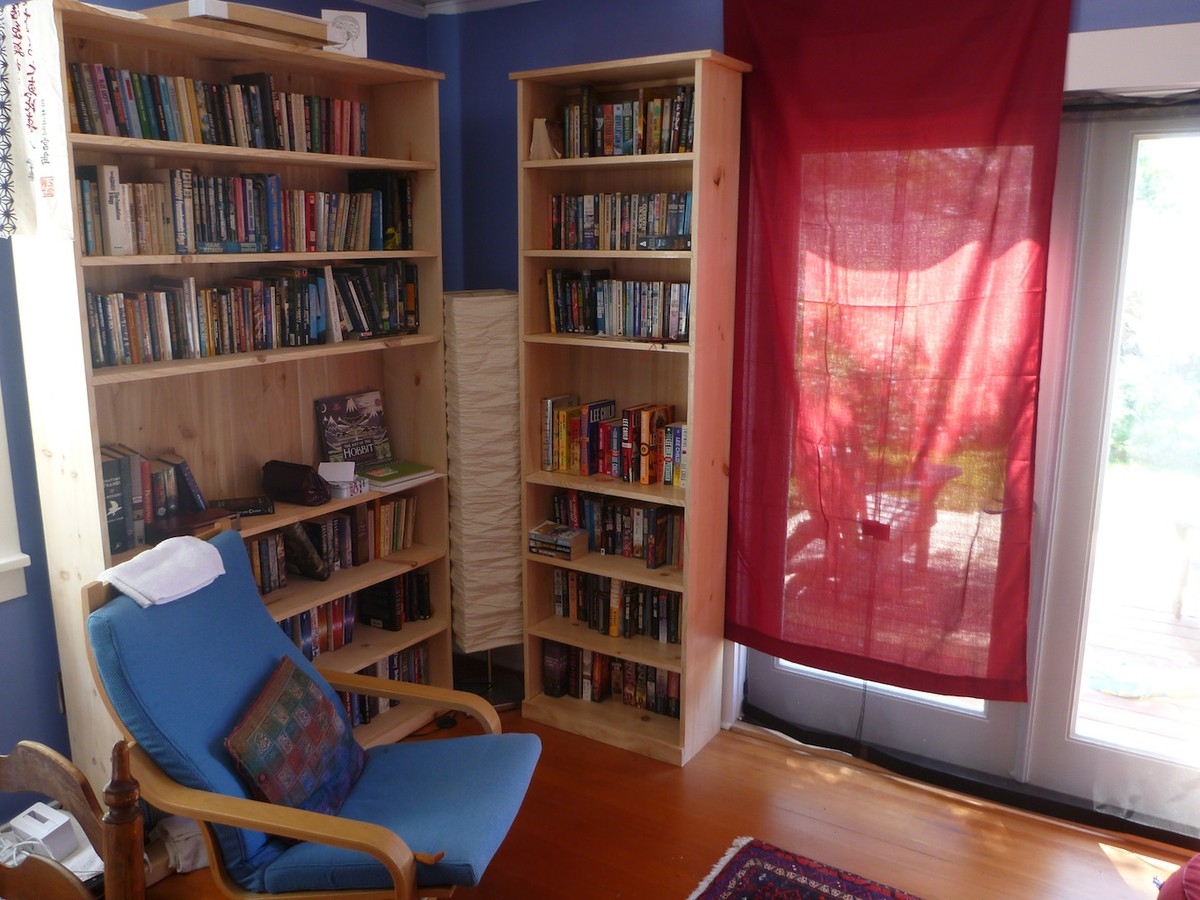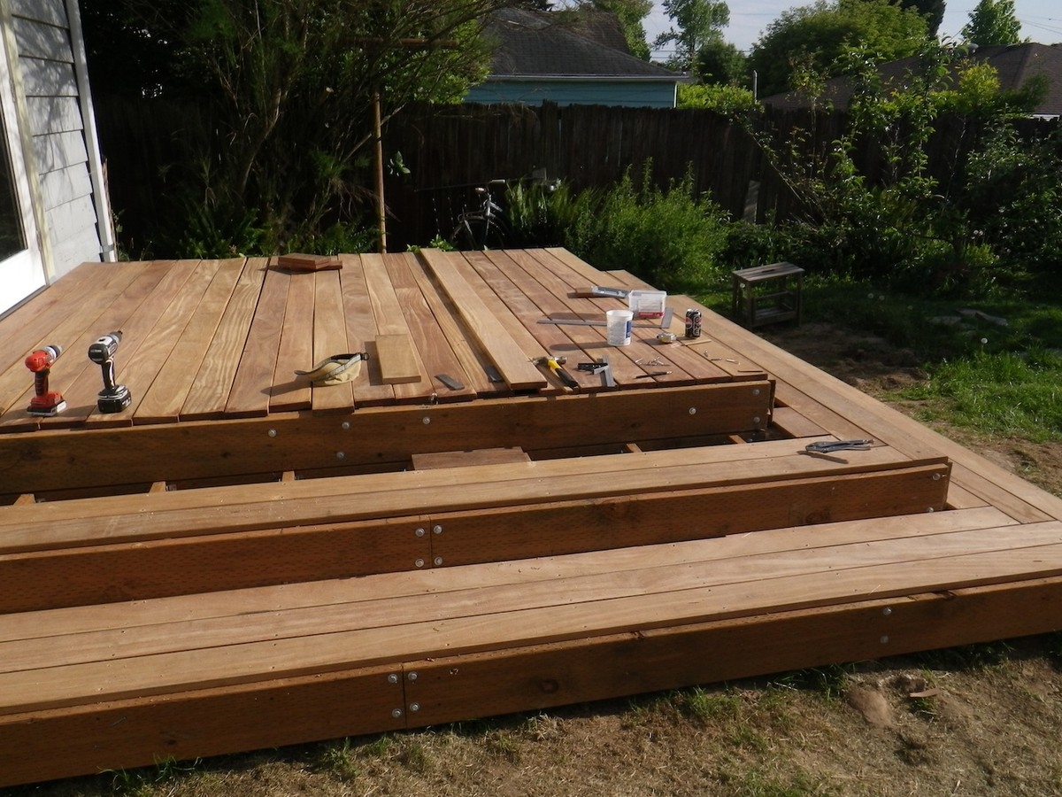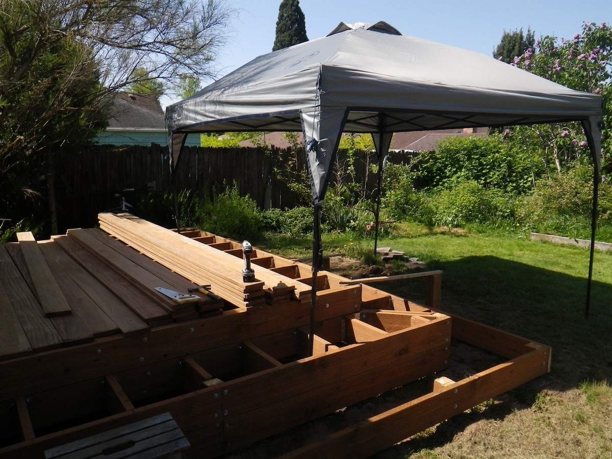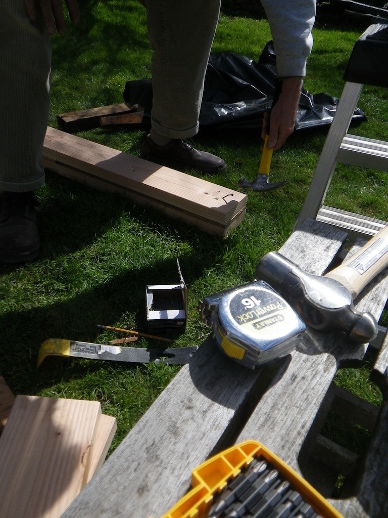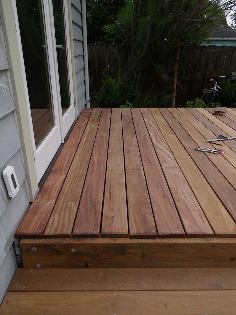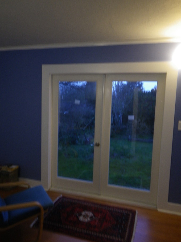 We put in french doors in the other room and then I put up a deck so we wouldn’t fall to the ground. The pooches got a new dog ramp too.