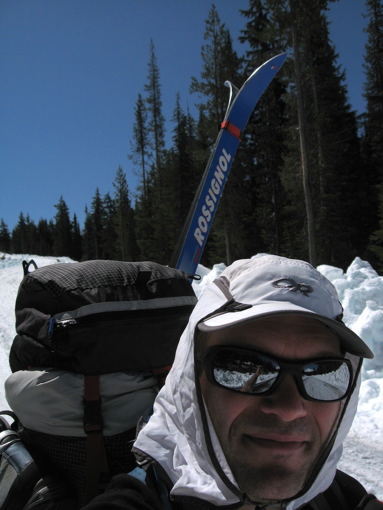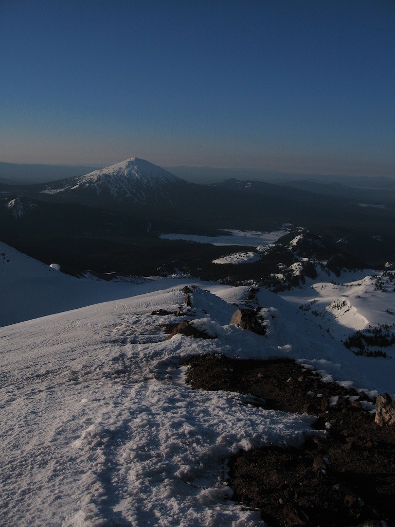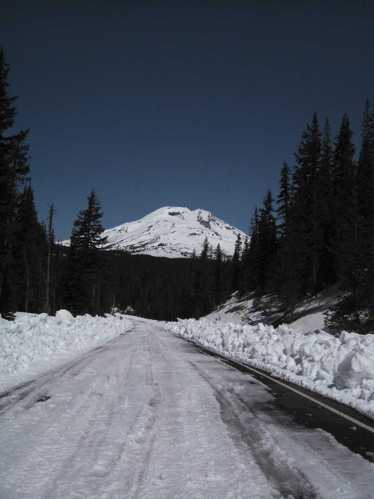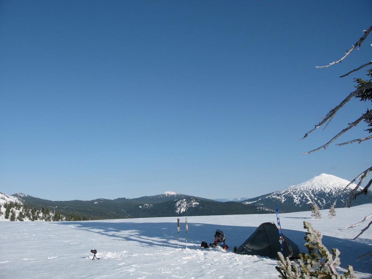 I went down to Bend to ski into and climb South Sister. I had thoughts of camping on the summit but camping at the base and going up lighter sounded more appealing. The road from Mt. Bachelor wasn’t open yet so I brought my old cross country skis and tried remembering how to ski again.
